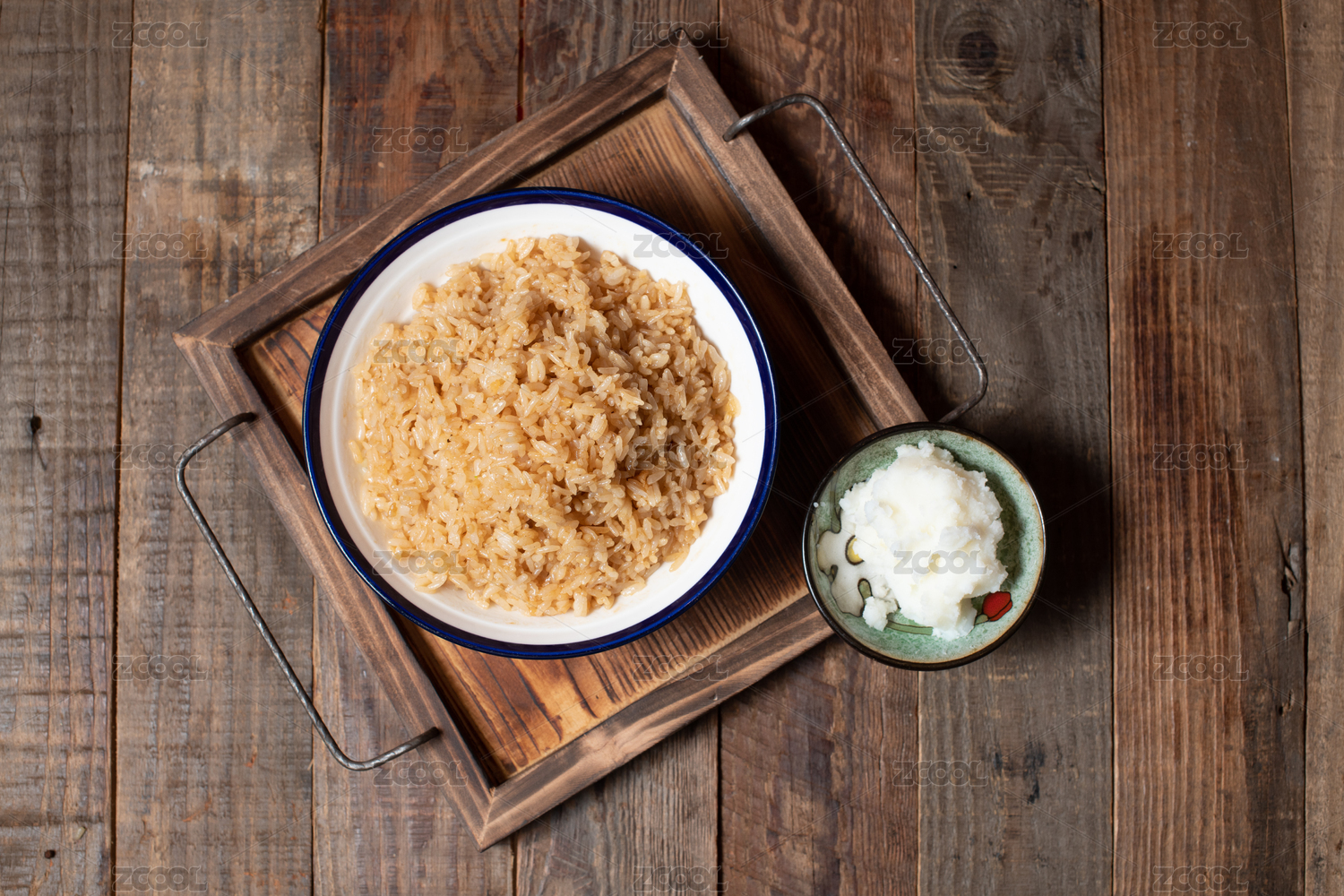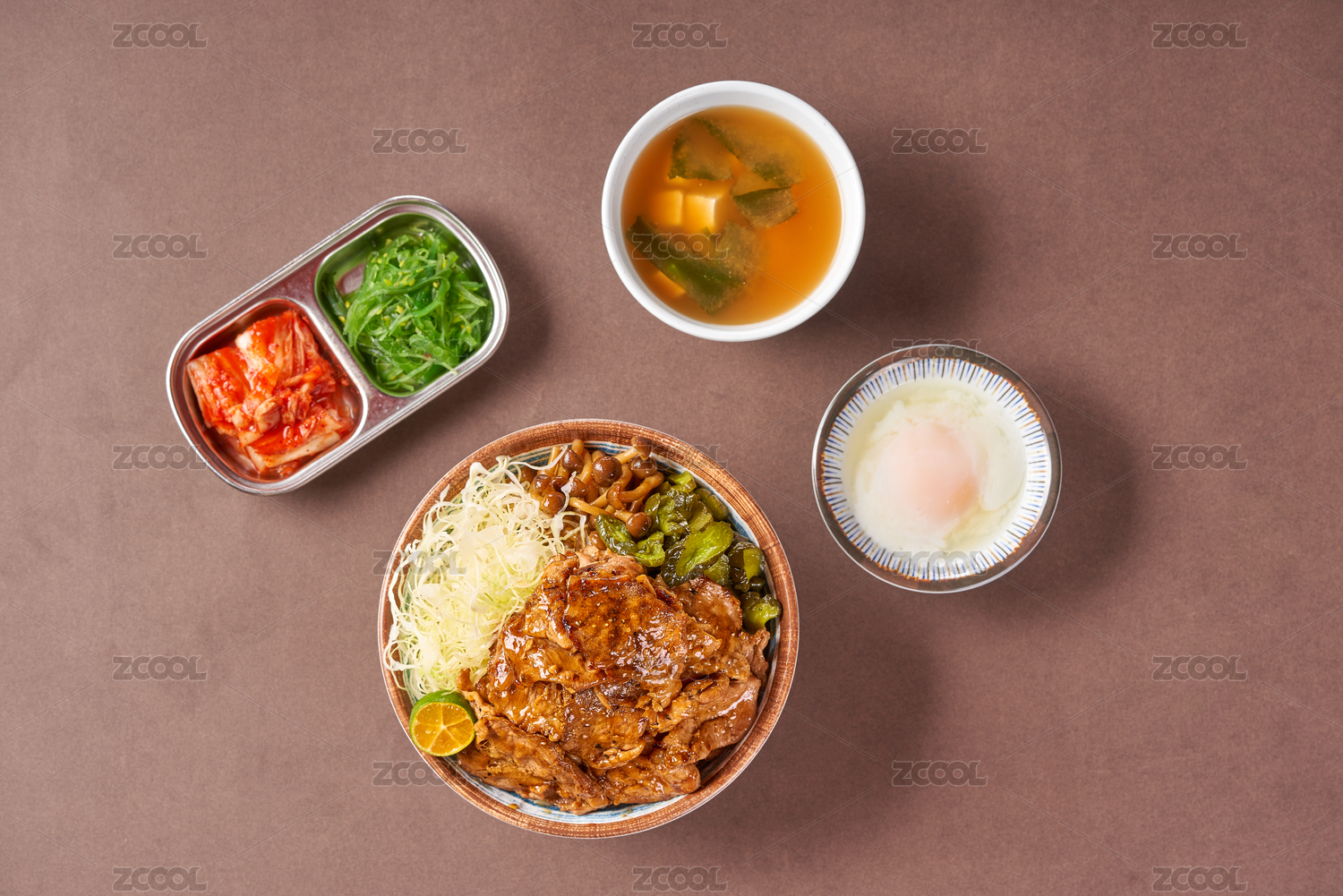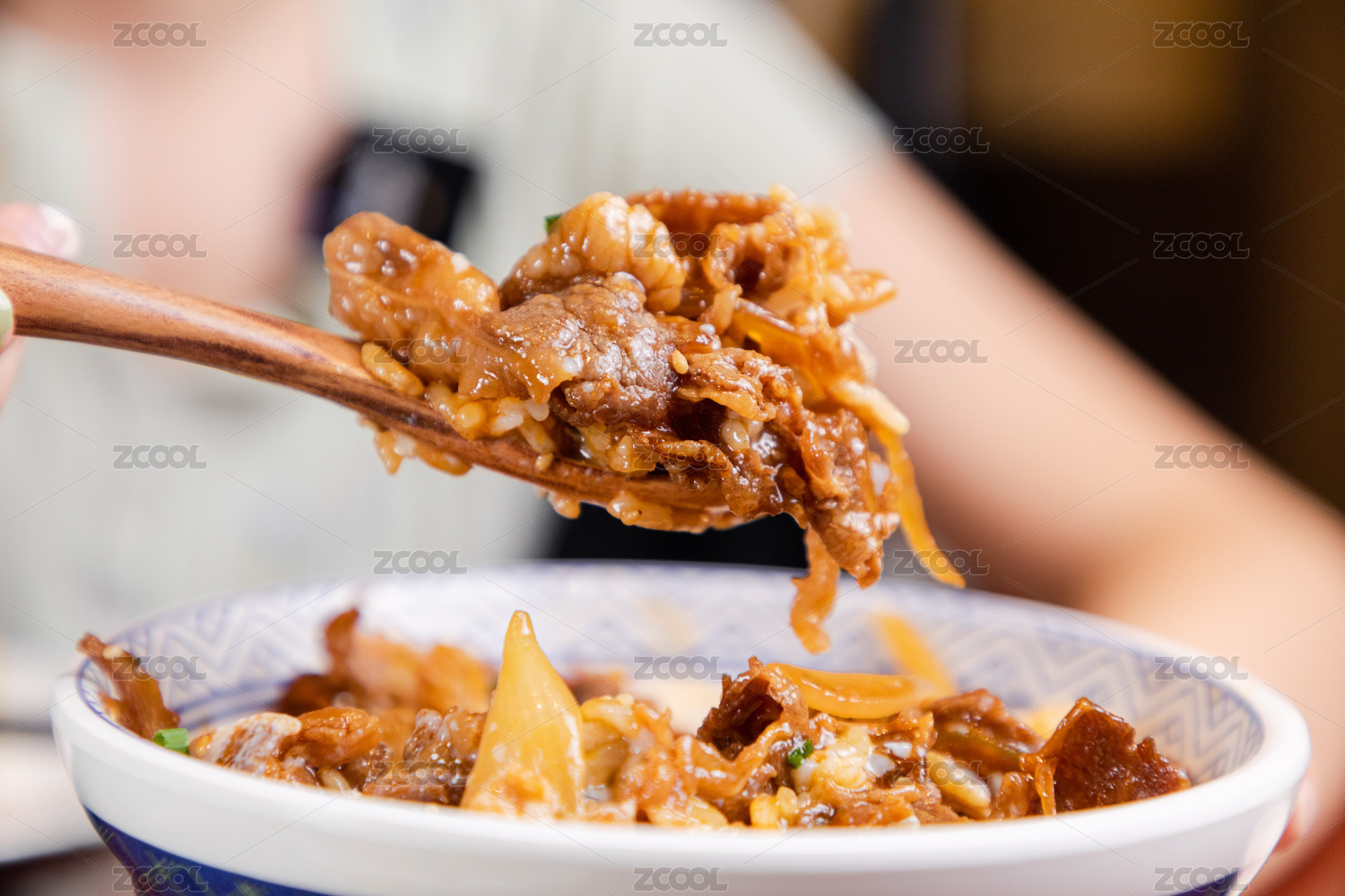 一碗日料牛丼飯放在桌子上