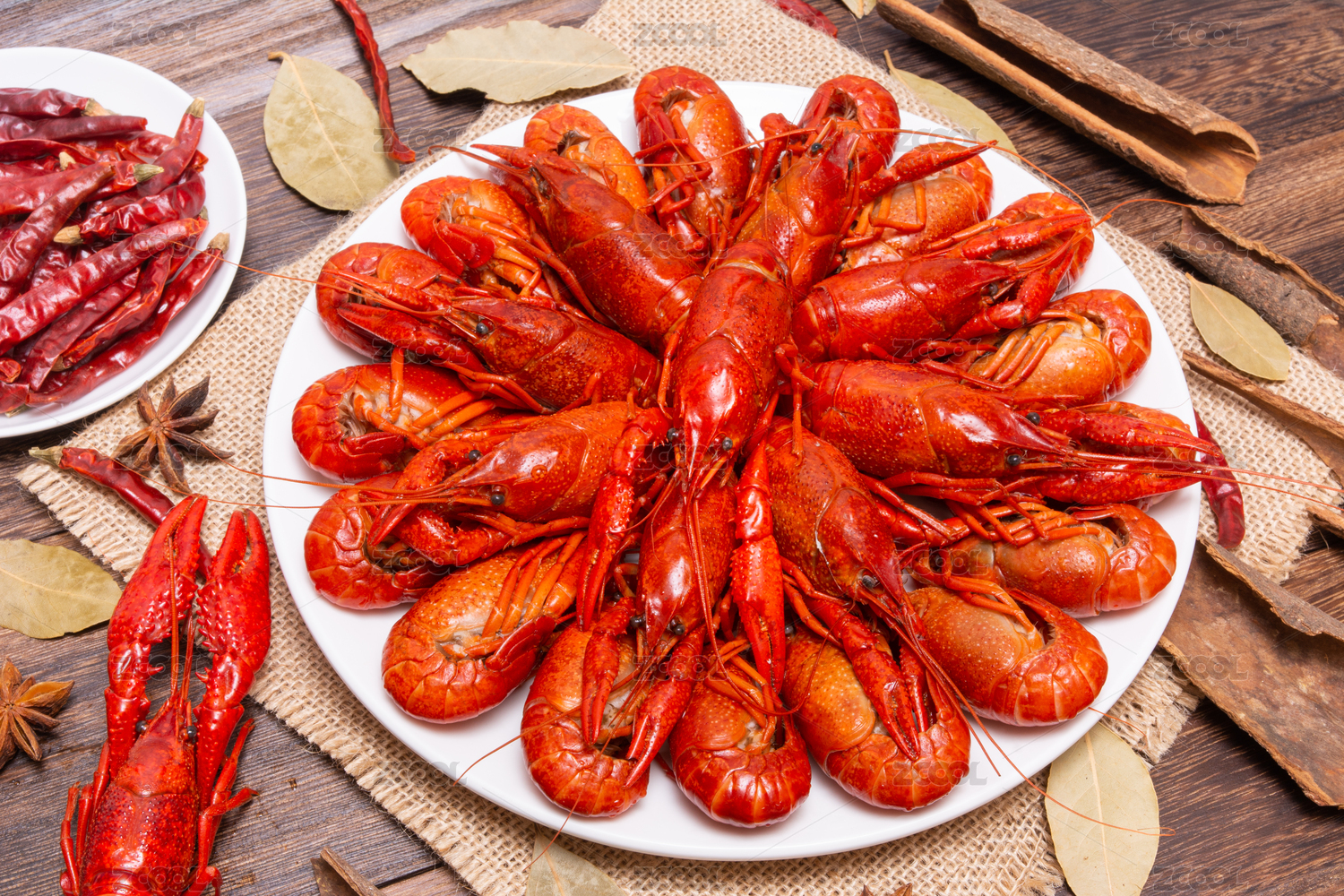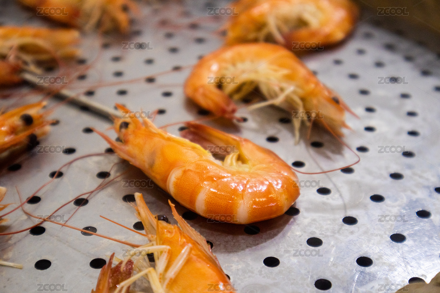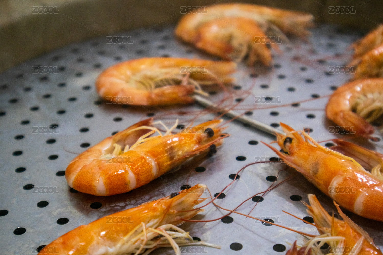 餐桌上蒸汽海鮮火鍋剛剛燙熟的新鮮大蝦麻蝦