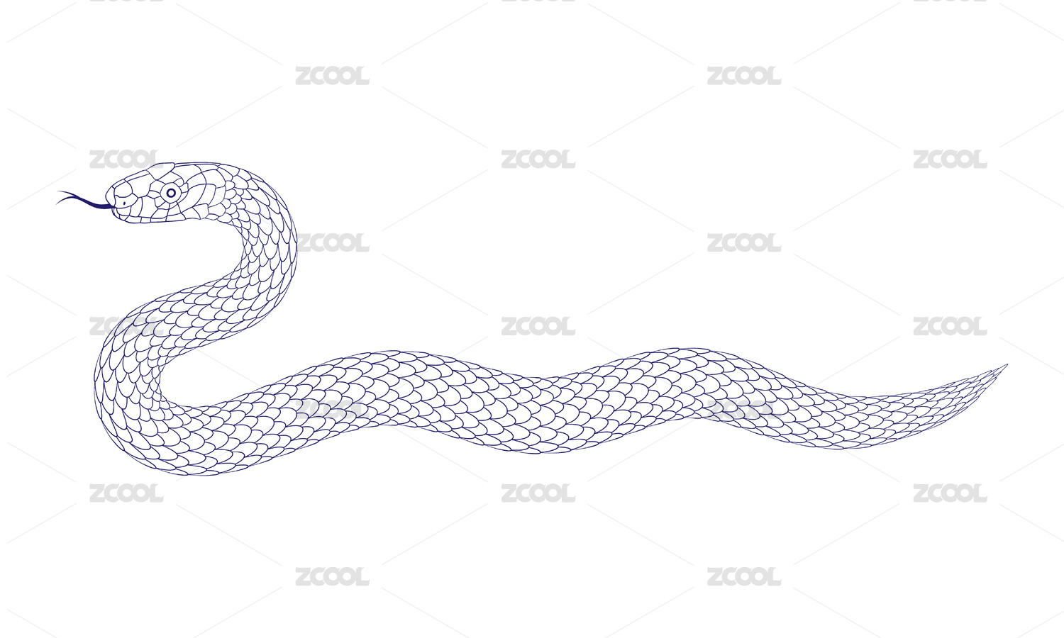 藍色線條描邊的卡通蛇圖案