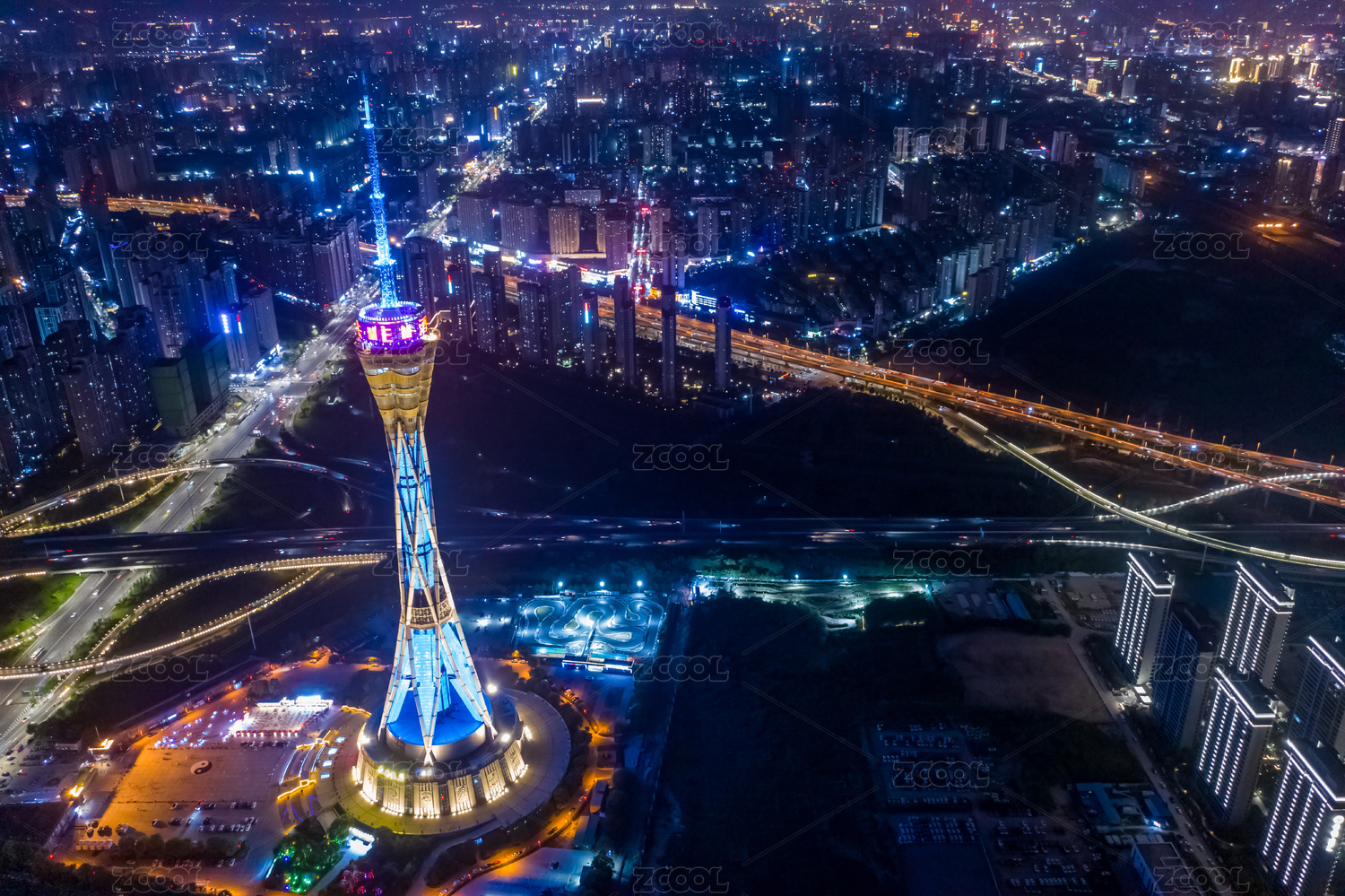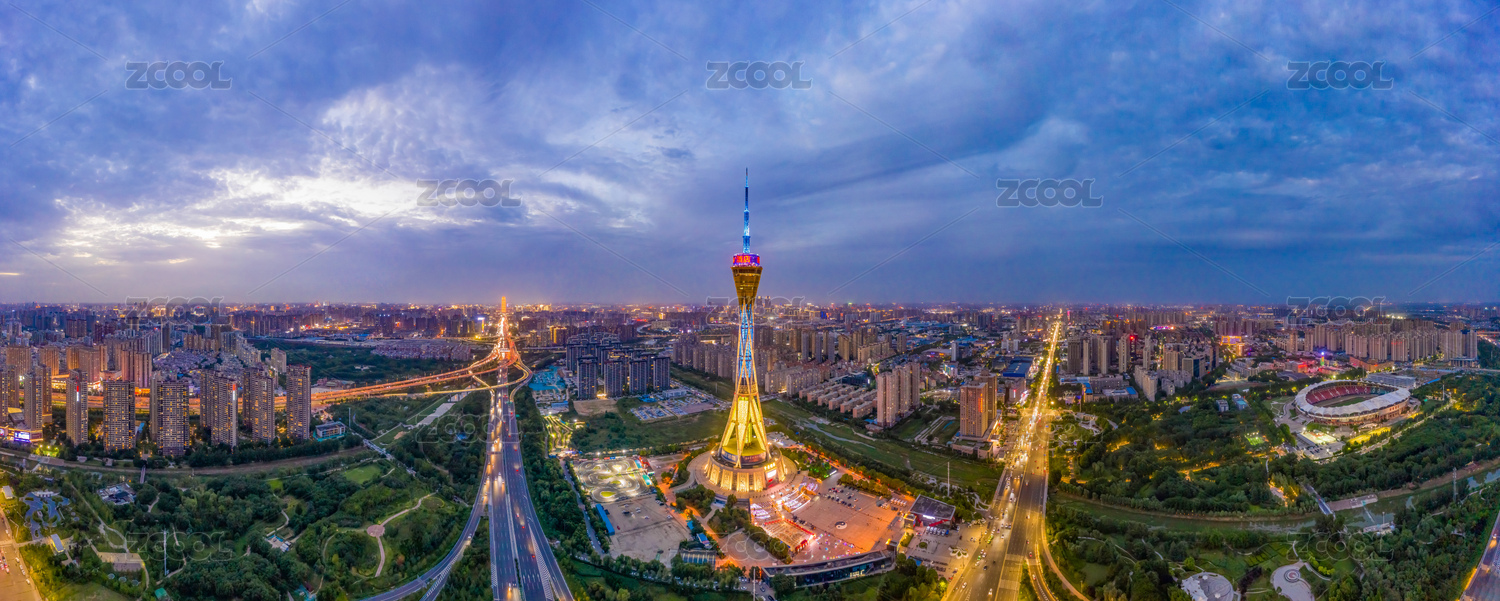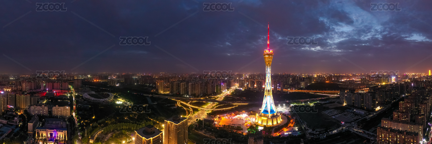 航拍鄭州中原福塔夜景燈光秀河南廣播電視塔