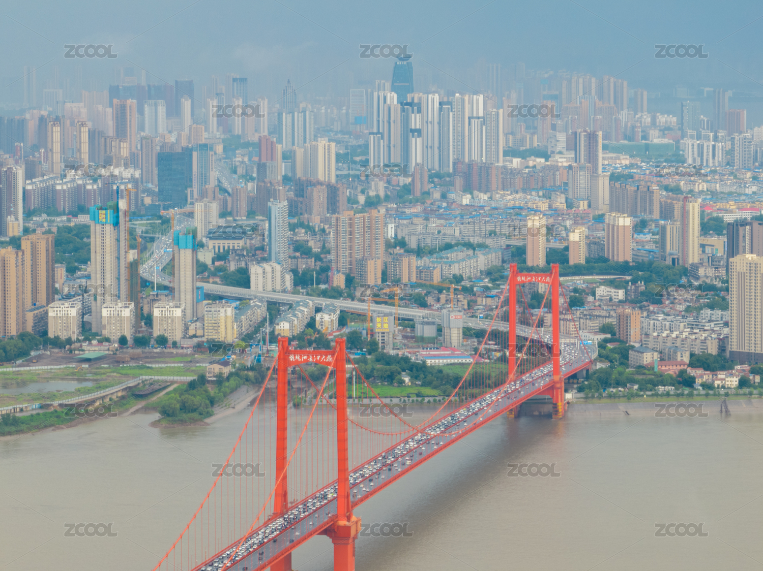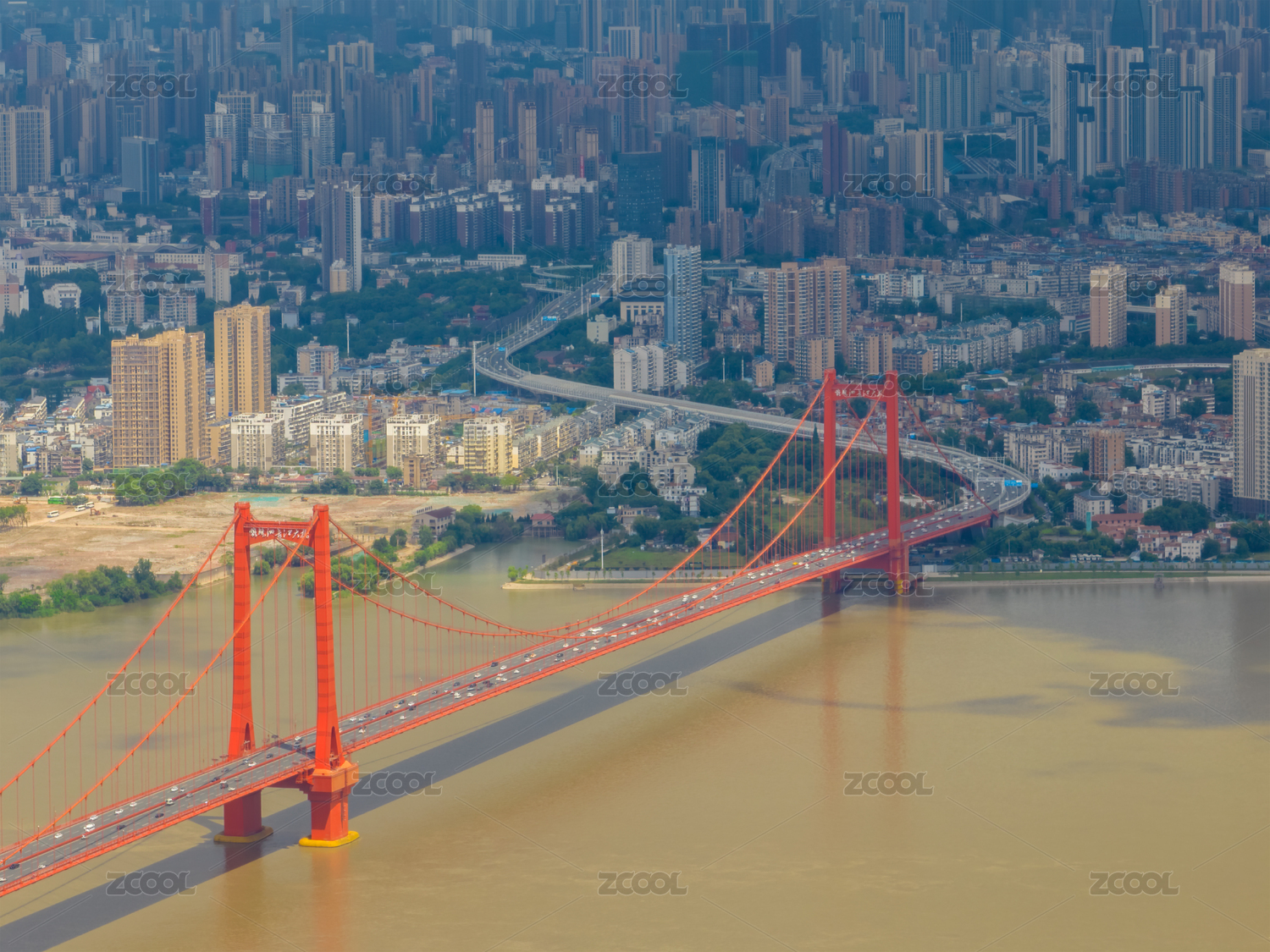 中國(guó)湖北武漢鸚鵡洲長(zhǎng)江大橋航拍風(fēng)光