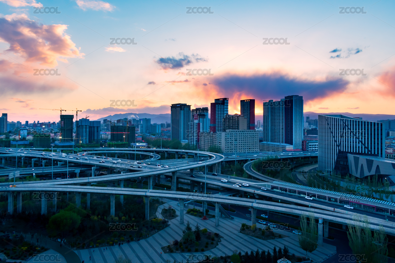 中國(guó)內(nèi)蒙古呼和浩特市南二環(huán)快速路城市天際線
