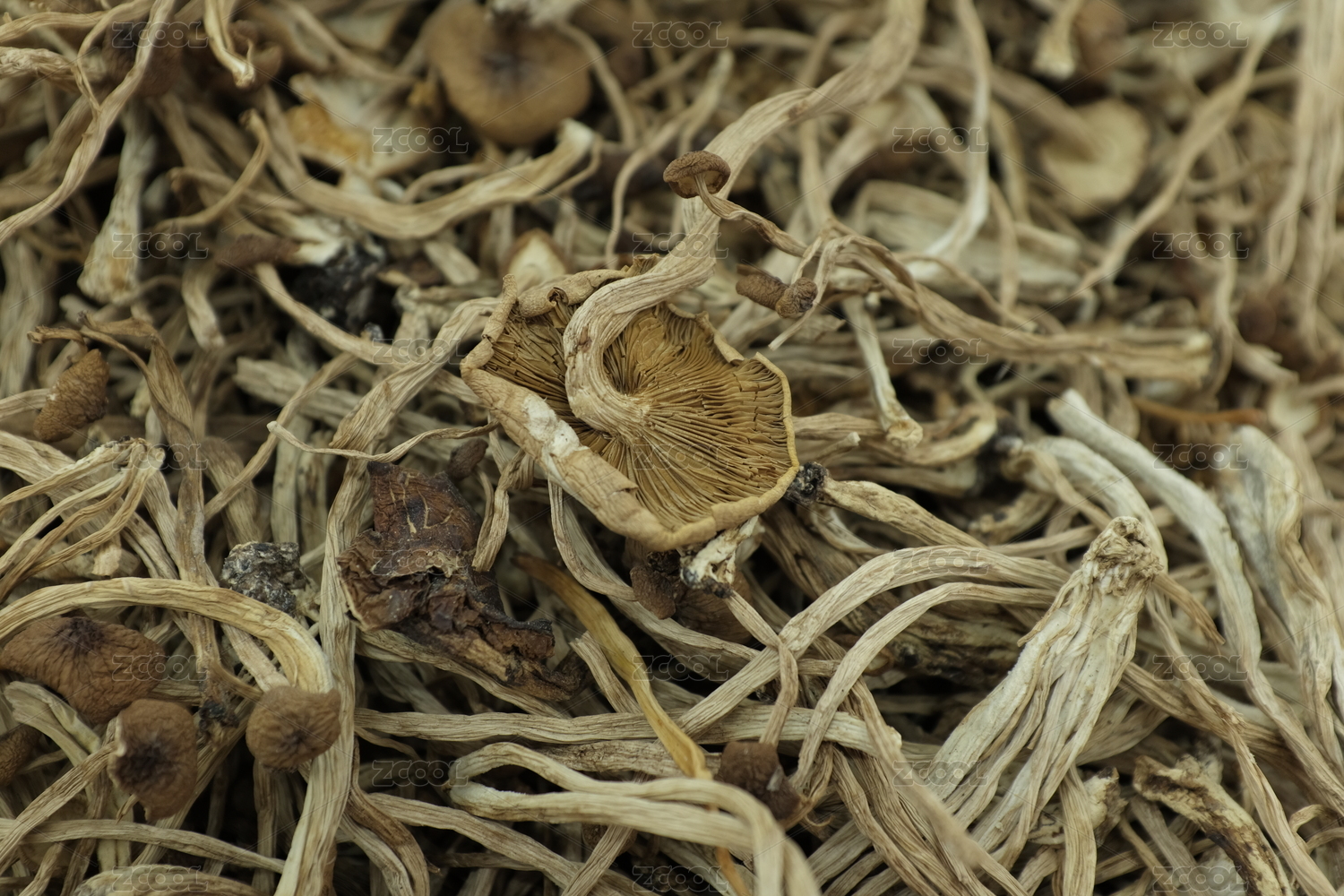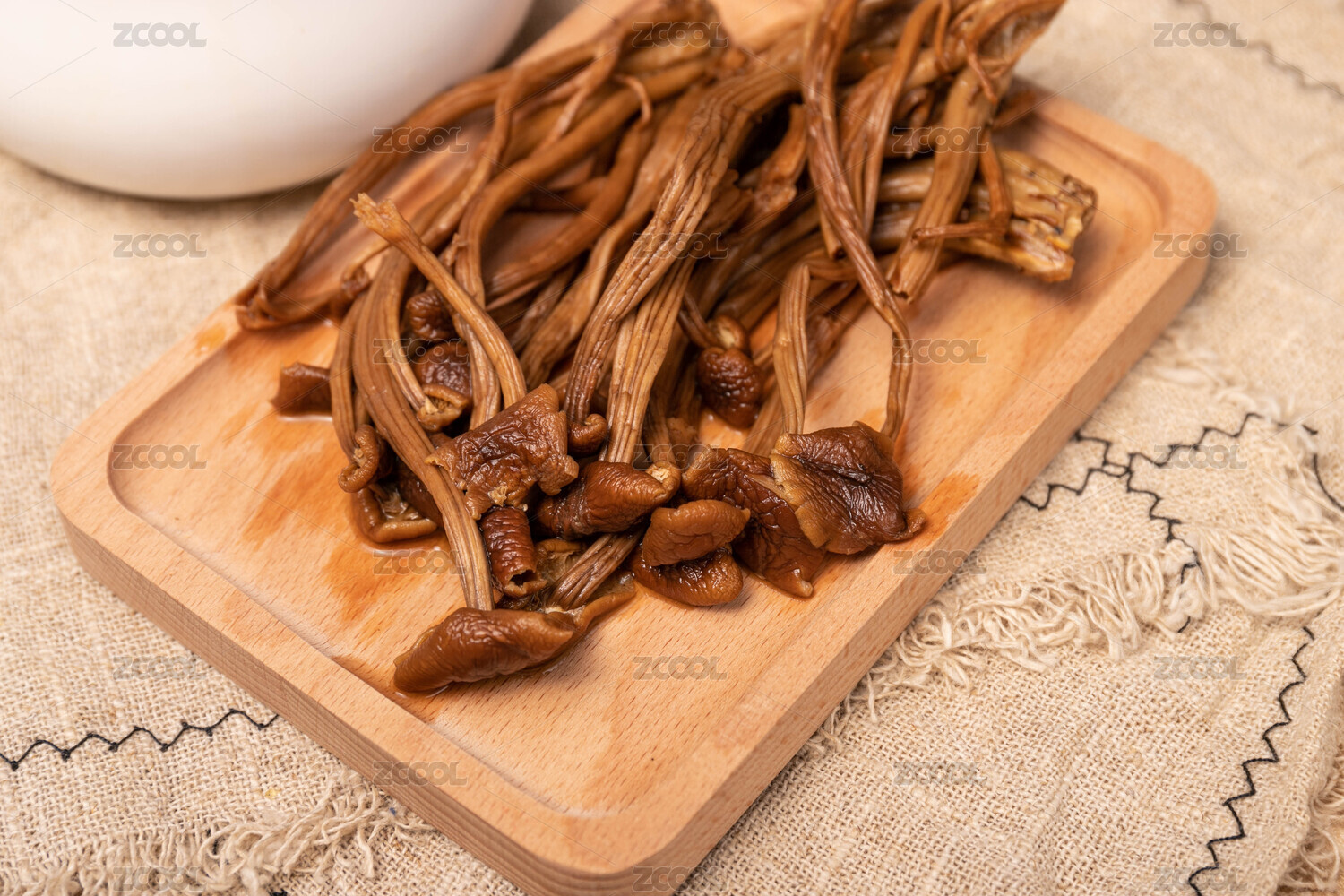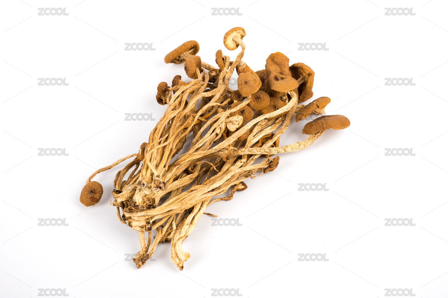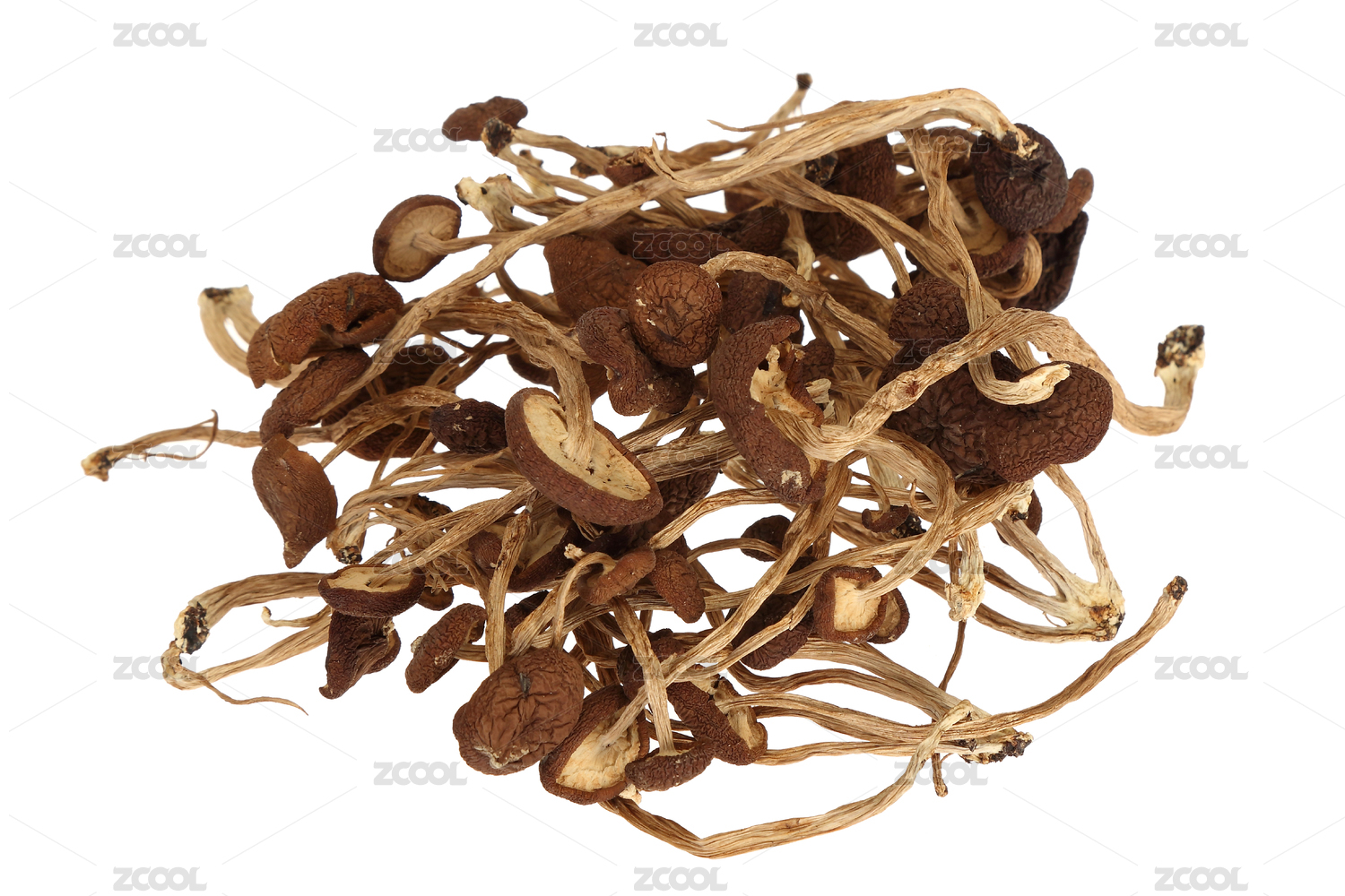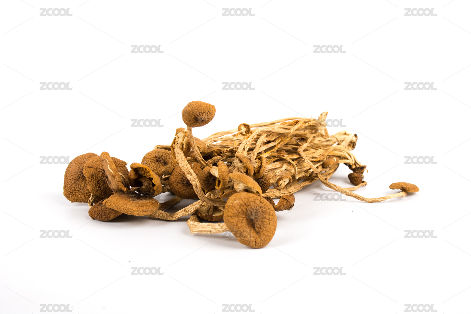 放在白色背景上的菌類干貨——茶樹菇