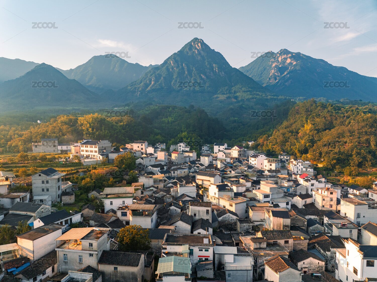 美麗的自然風光山野房屋柿子樹太陽皖南風光
