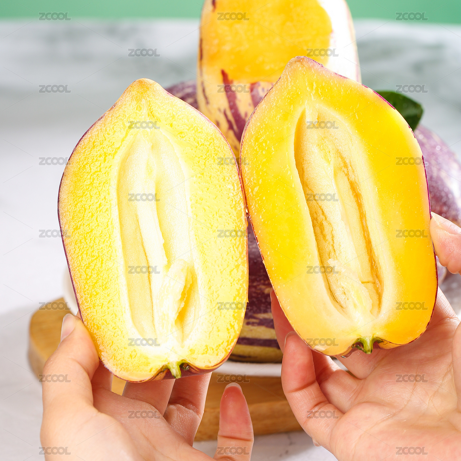 淺黃色桌子上的人參果