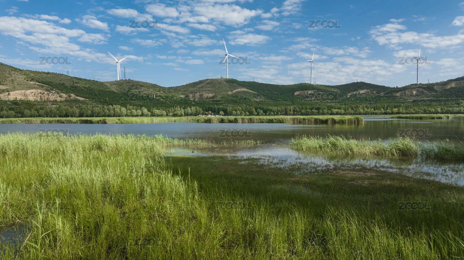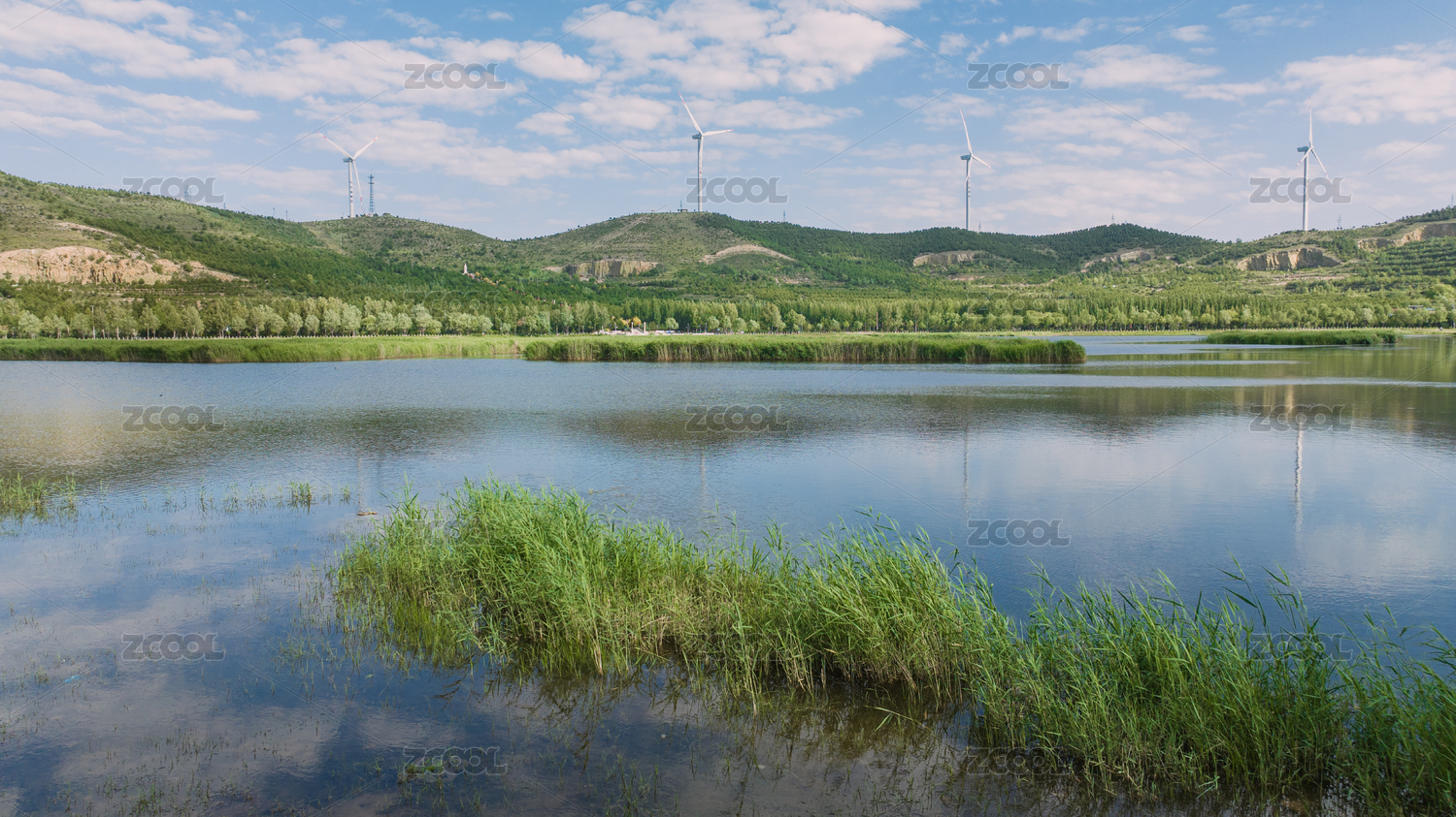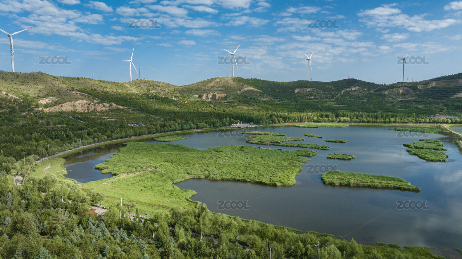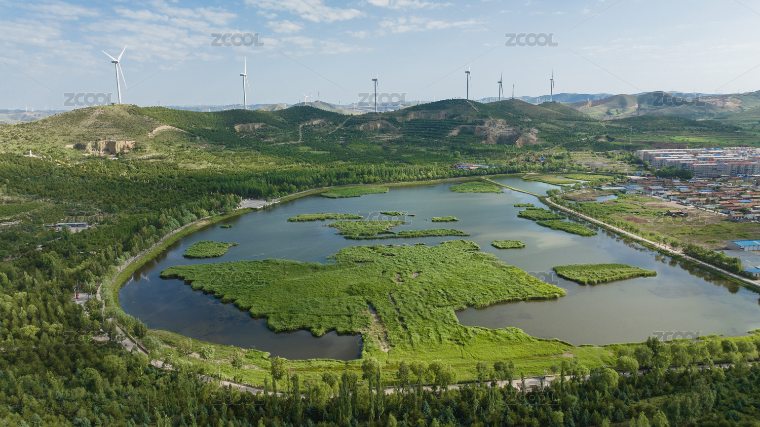 航拍晉西北邊塞小城山西神池西海子濕地公園