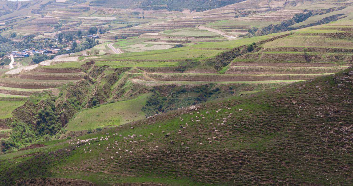 航拍山西神池野豬口古長城下梯田風(fēng)光