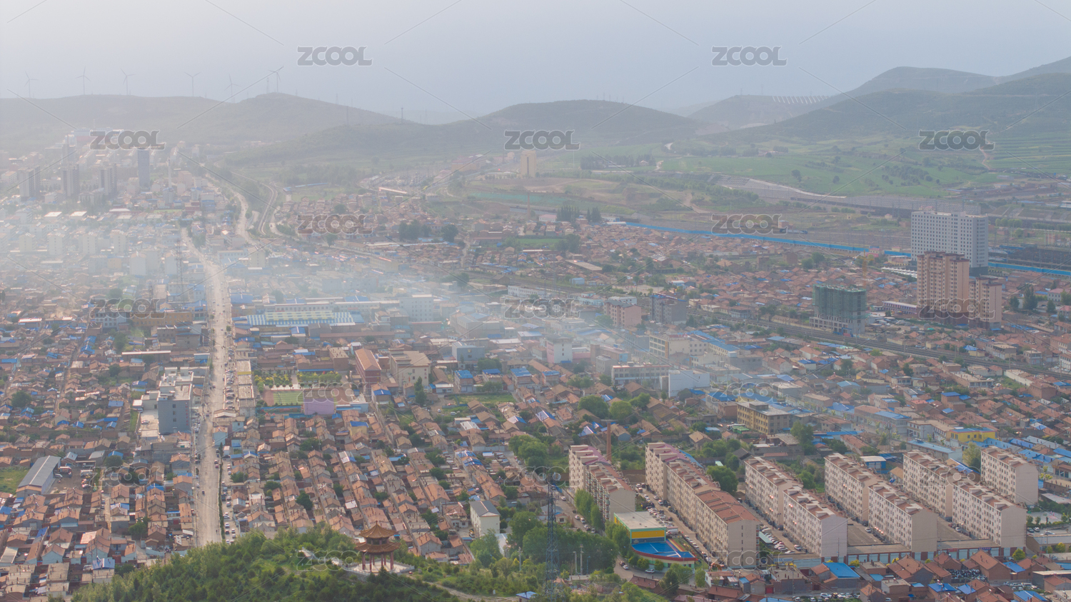 薄霧中的晉西北上邊塞小城山西神池縣城全景