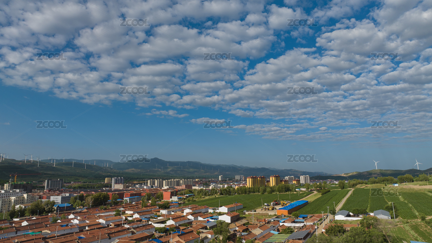 晉西北黃土高原上邊塞小城山西神池縣城全景