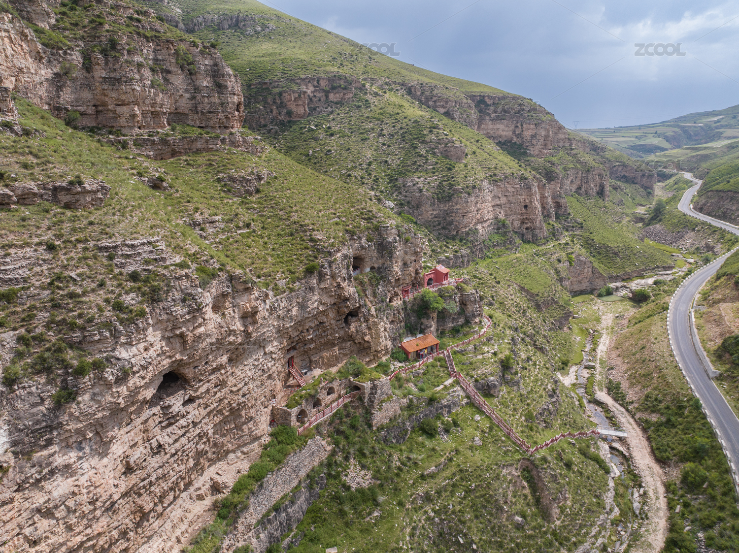 千年古剎凌空立山西神池轆轤窯溝懸空寺風(fēng)光
