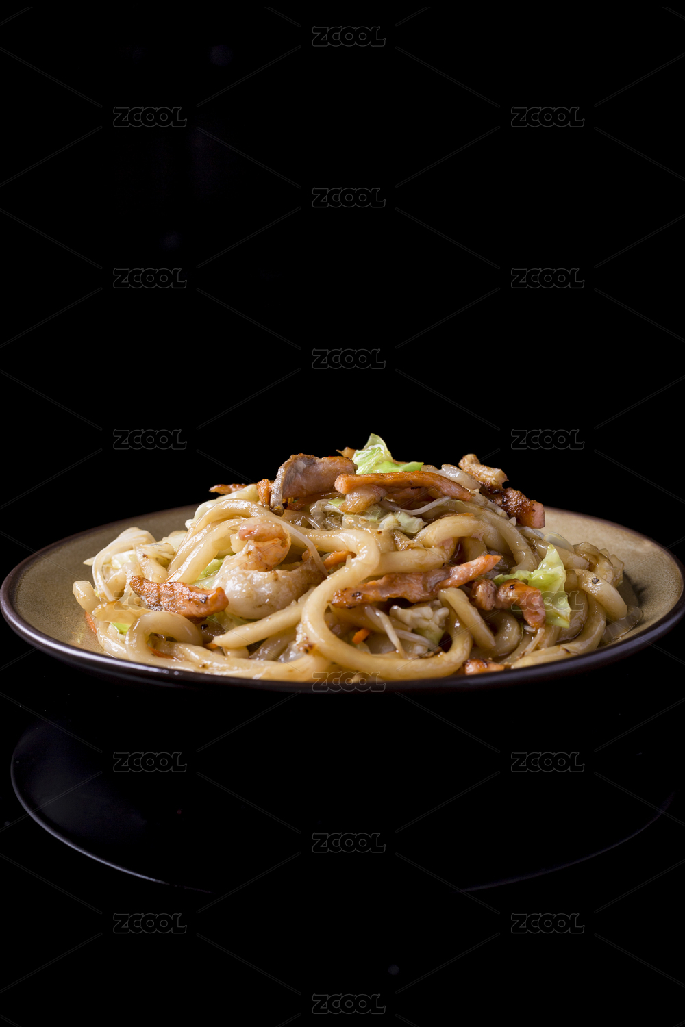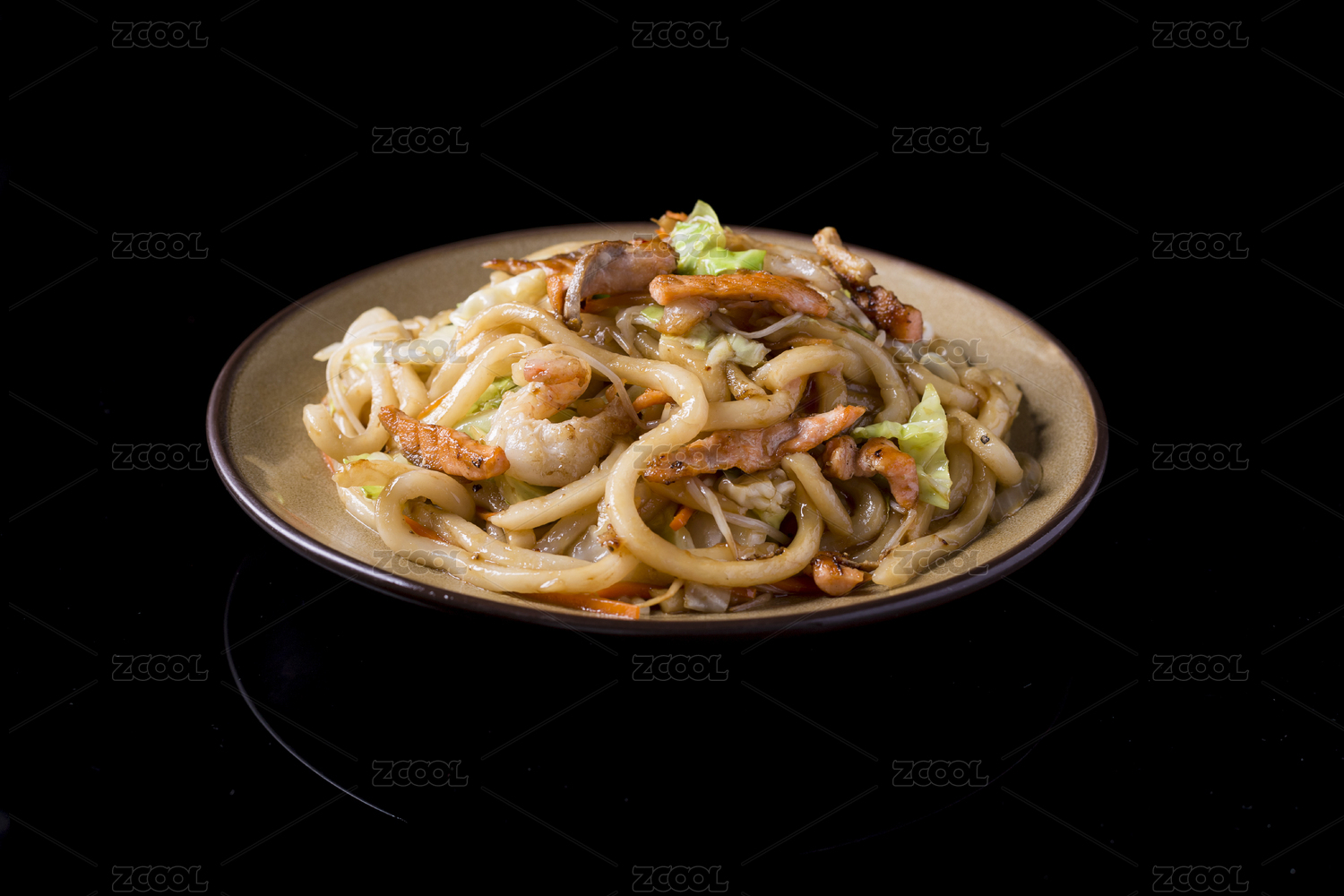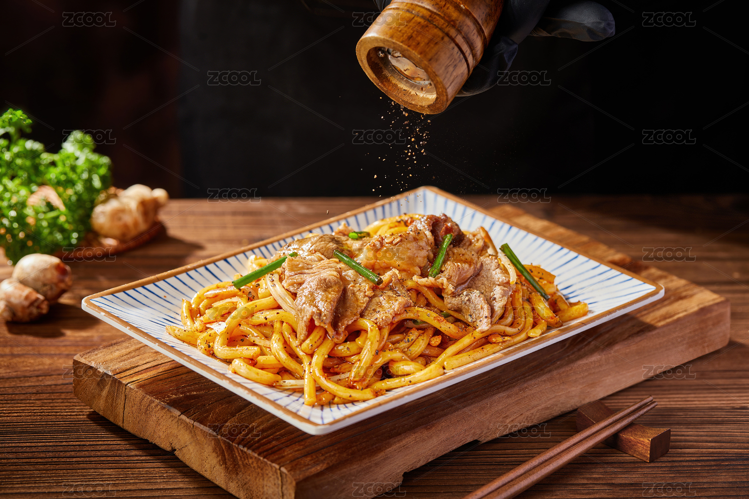 日本料理店里一份美味的肥牛炒拉面