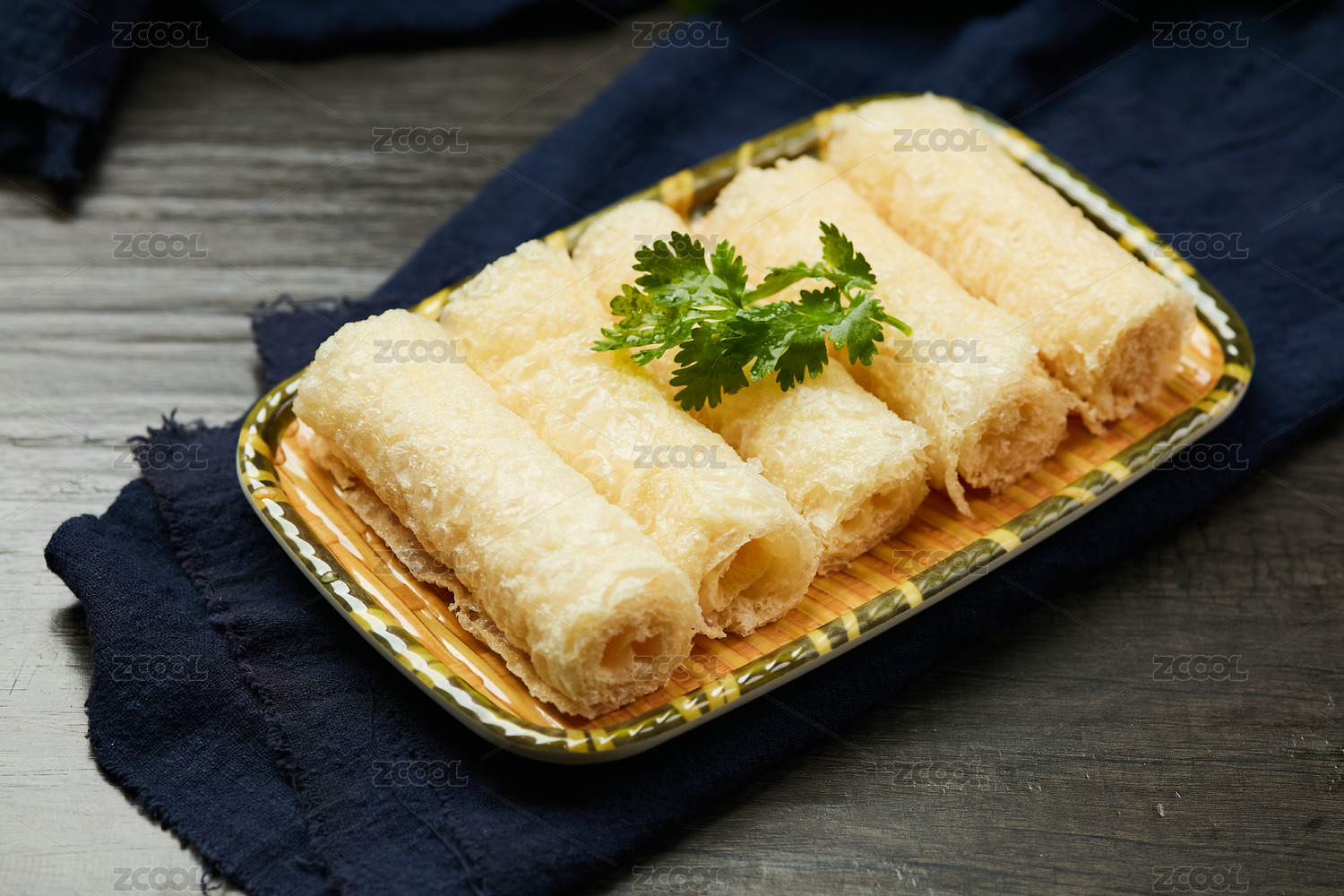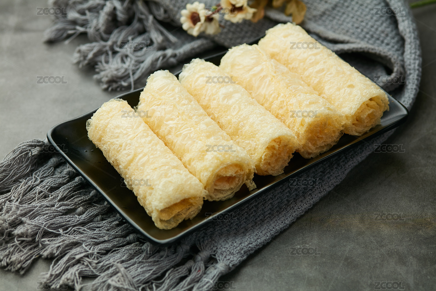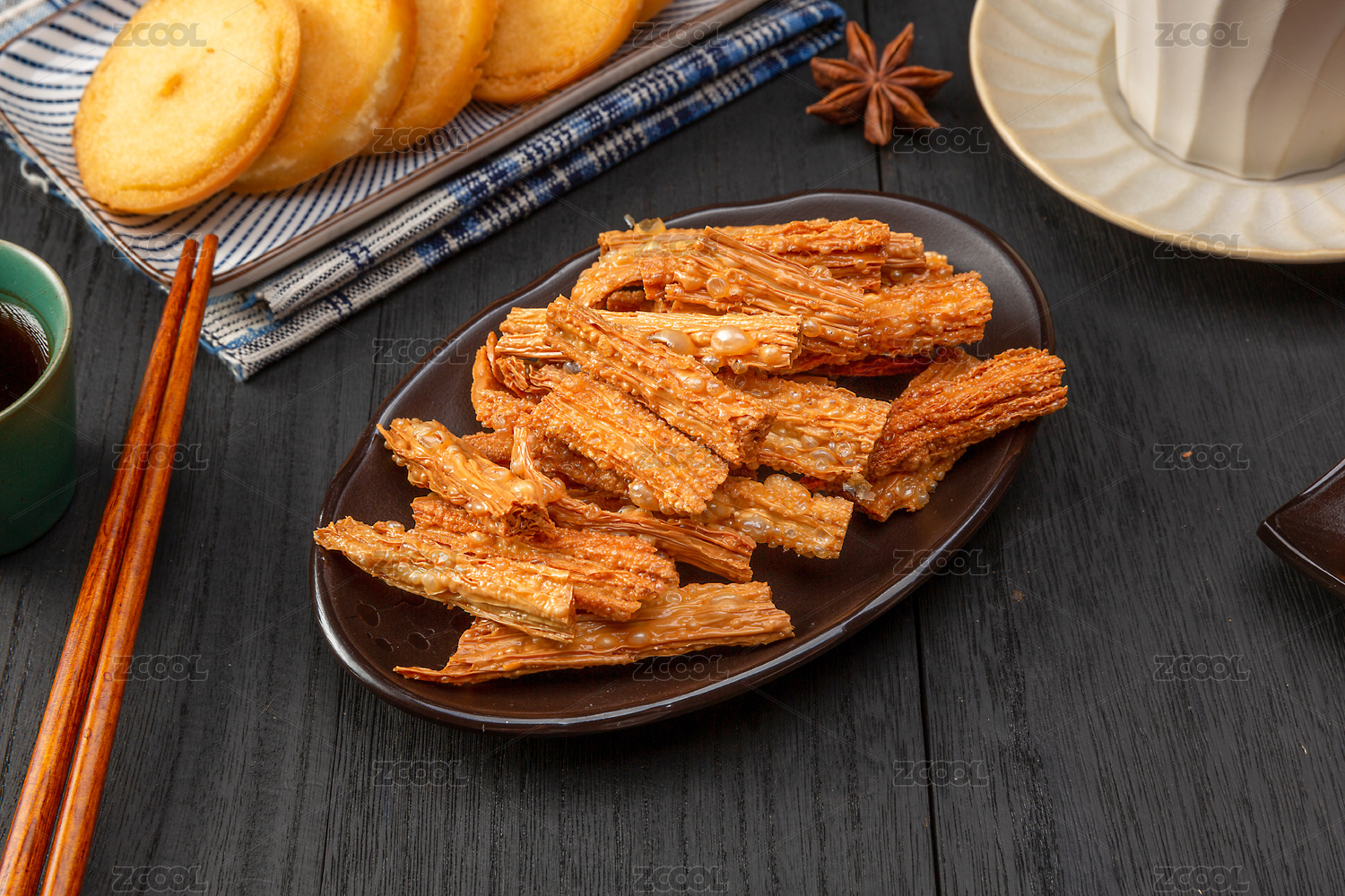 盤子里的油炸腐竹
