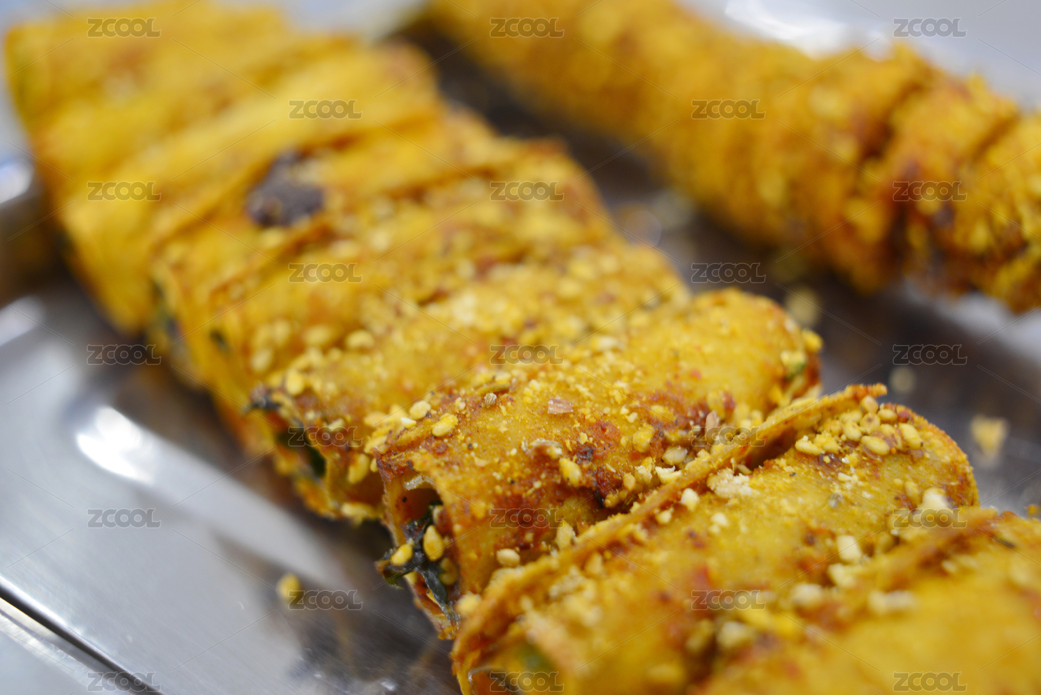 白色瓷盤裝的澆汁油炸干豆腐卷