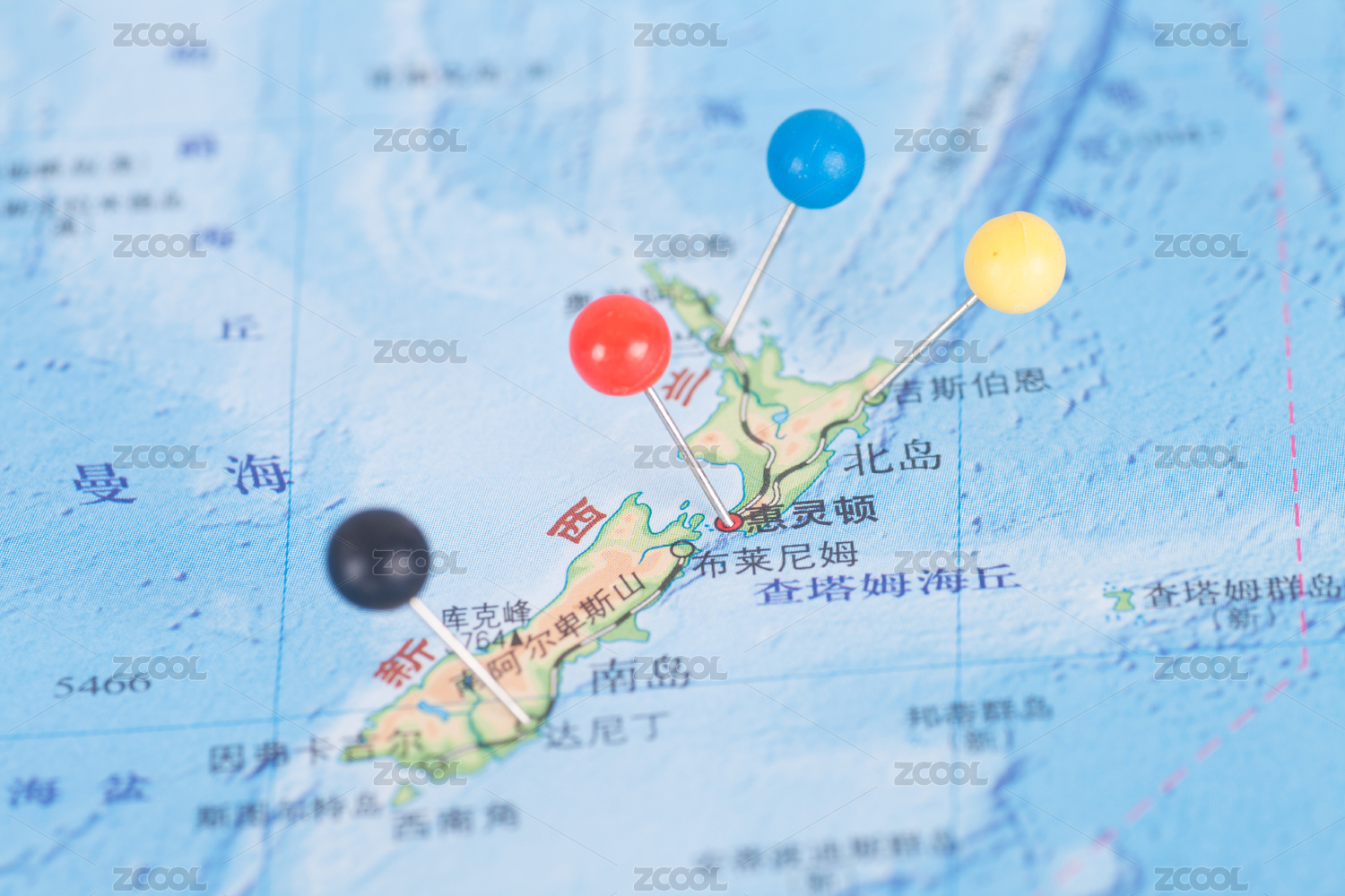 新西蘭首都惠靈頓在地圖上被大頭釘標(biāo)注