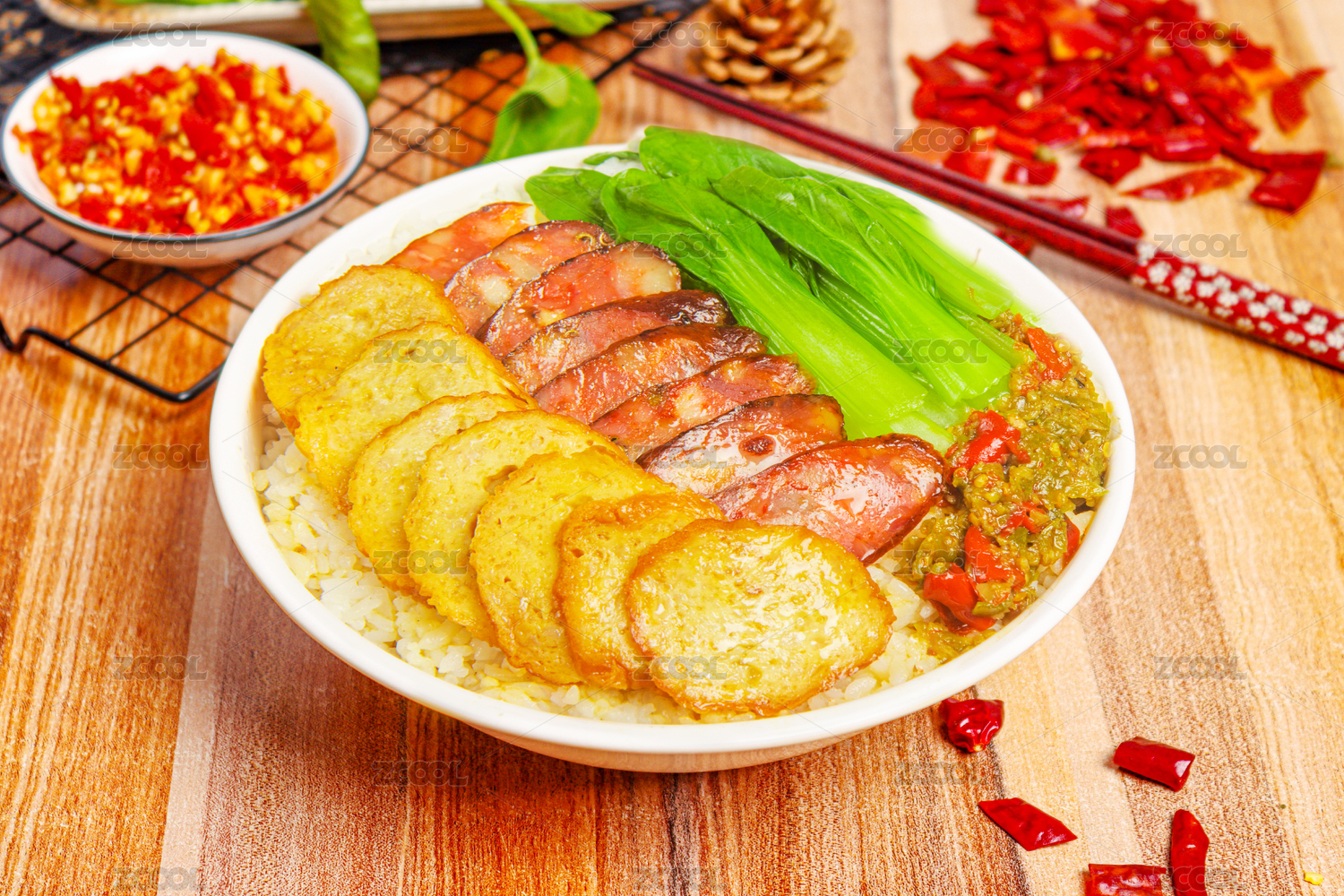 臘腸拼肉卷蓋飯