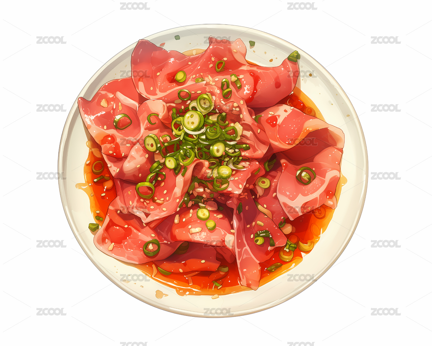 一盤生腌牛肉片生鮮水彩插畫