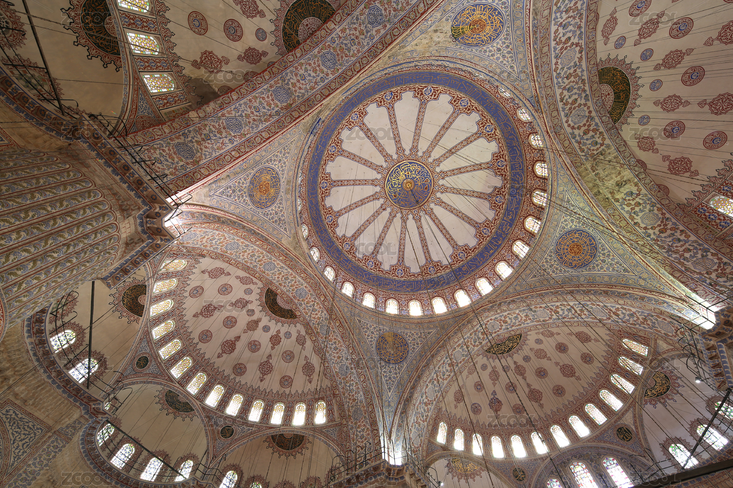 土耳其伊斯坦布爾的藍(lán)色清真寺建筑內(nèi)部圓頂