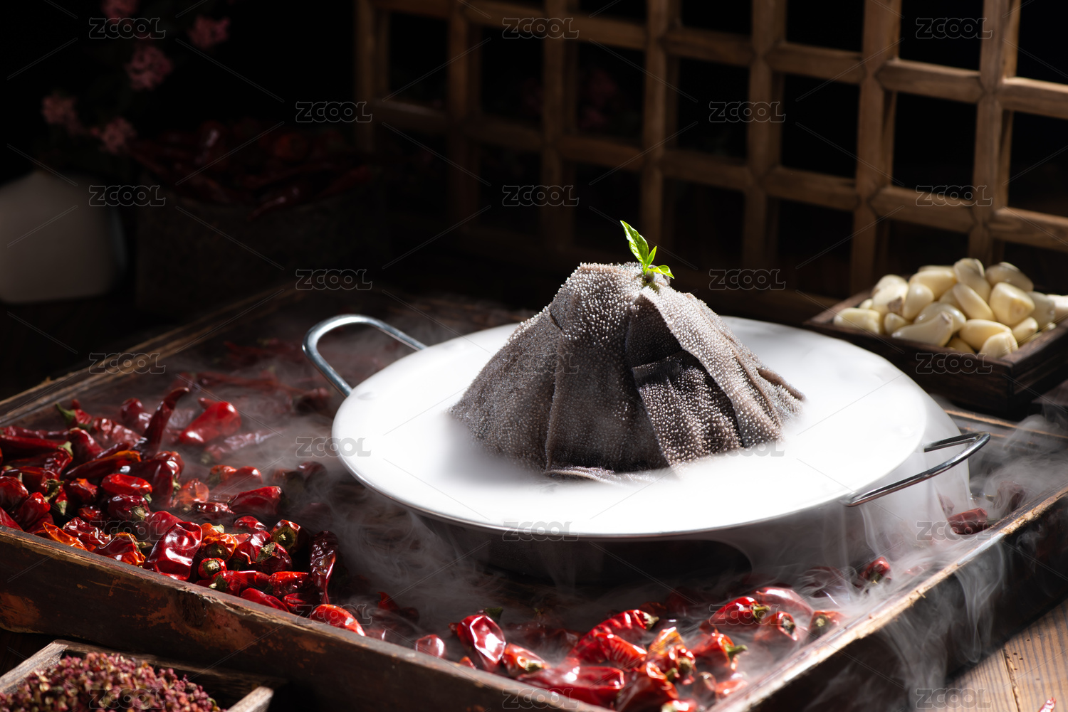 放在盤子里的火鍋菜品新鮮毛肚側(cè)拍