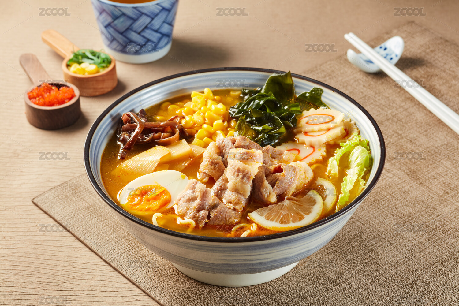 搭配叉燒肉海帶玉米和筍干日式味噌拉面