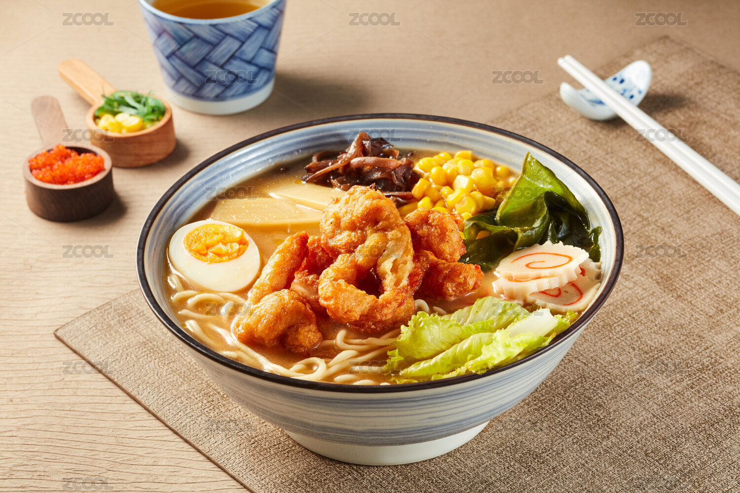 手繪日式拉面 彩鉛美食素材
