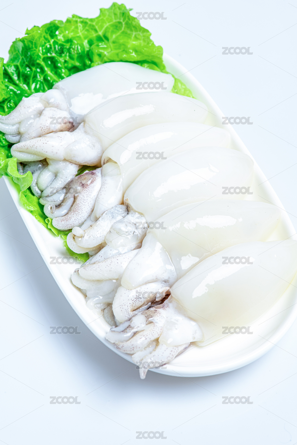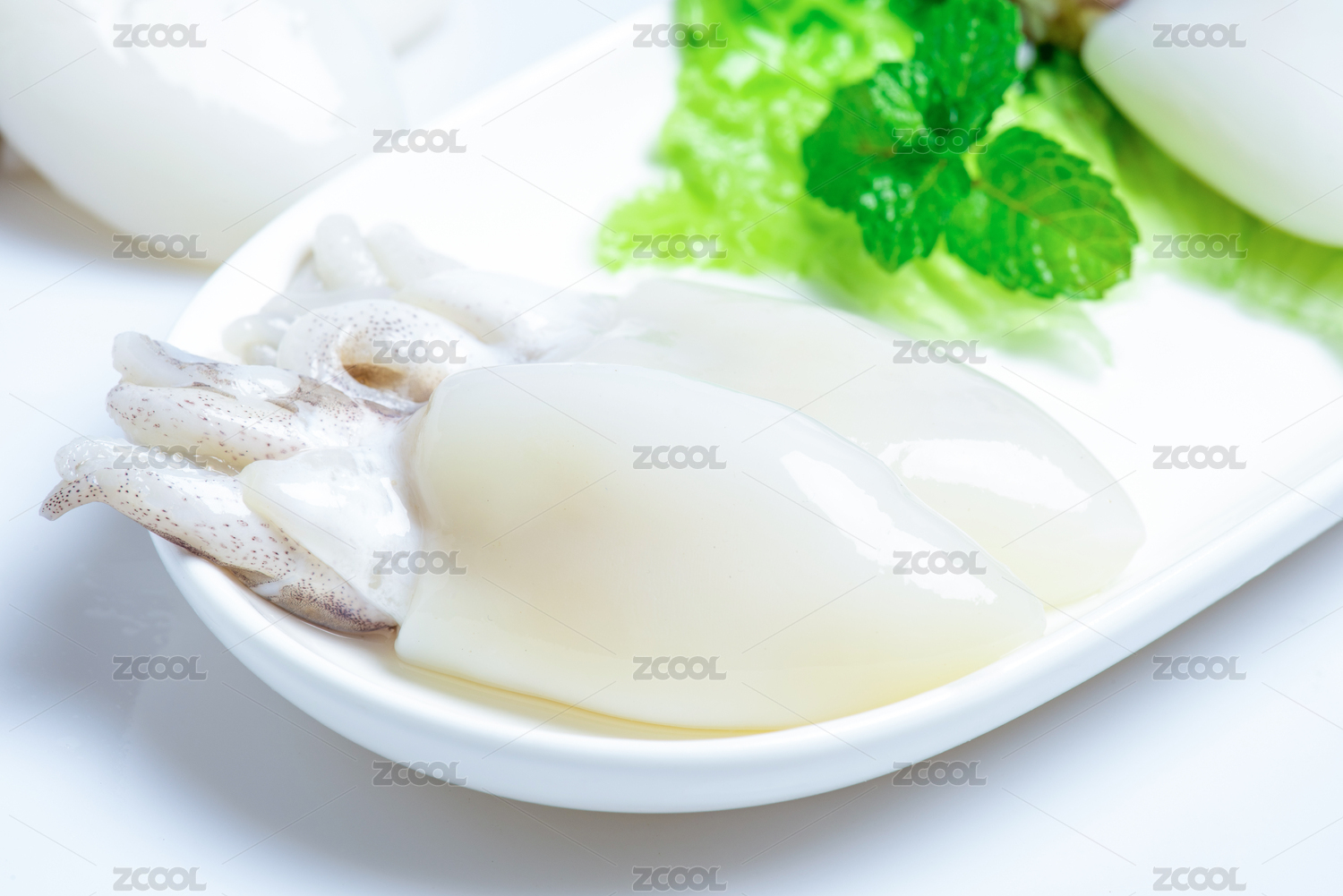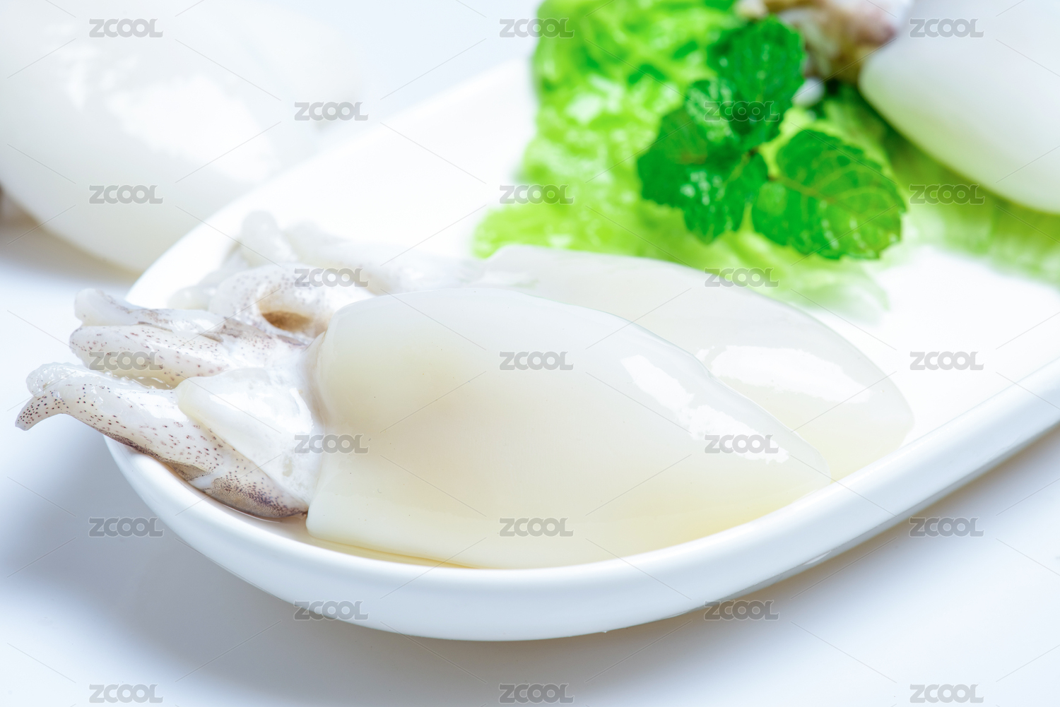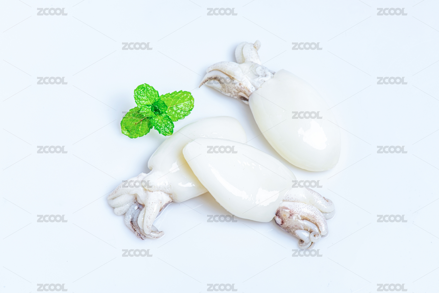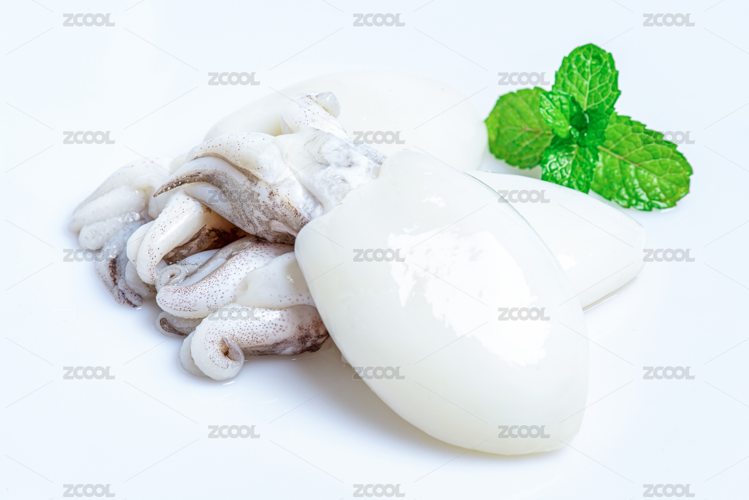 白底上的生鮮墨魚仔