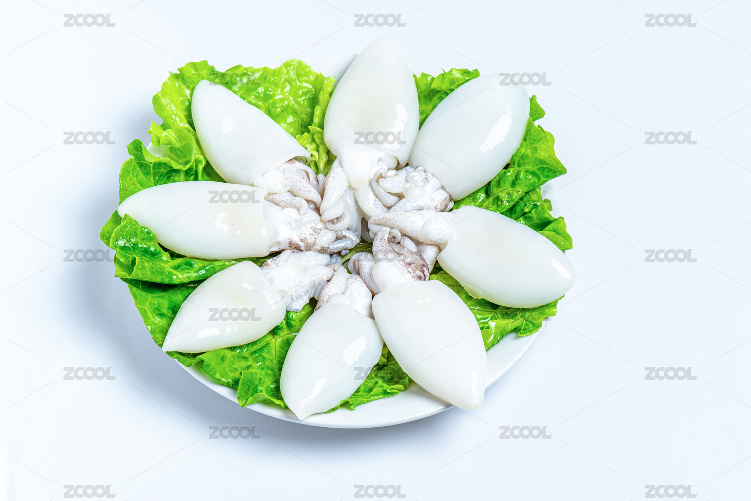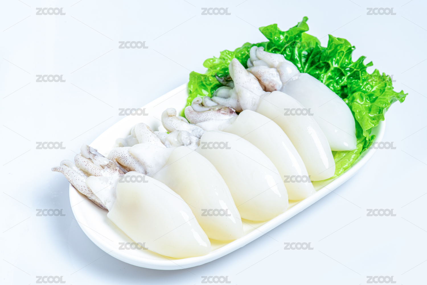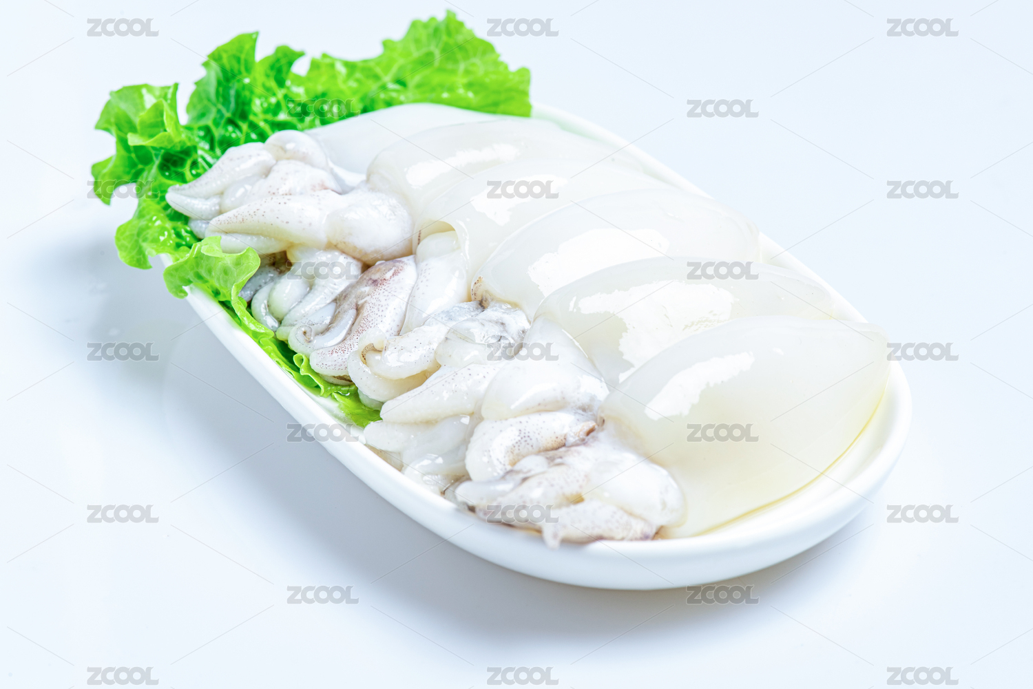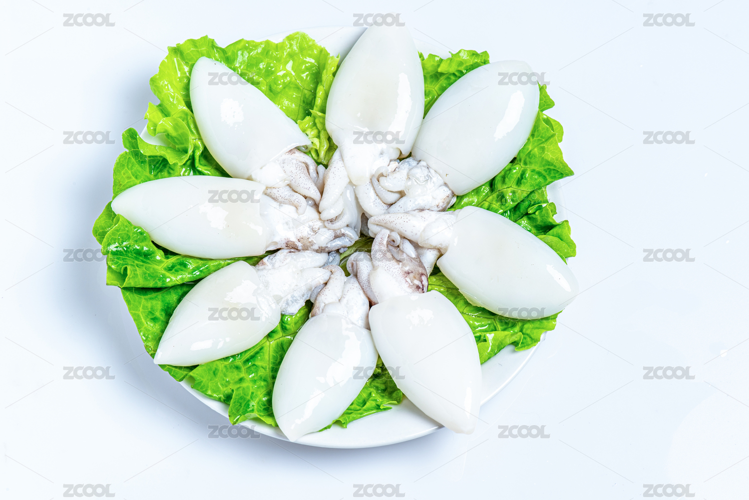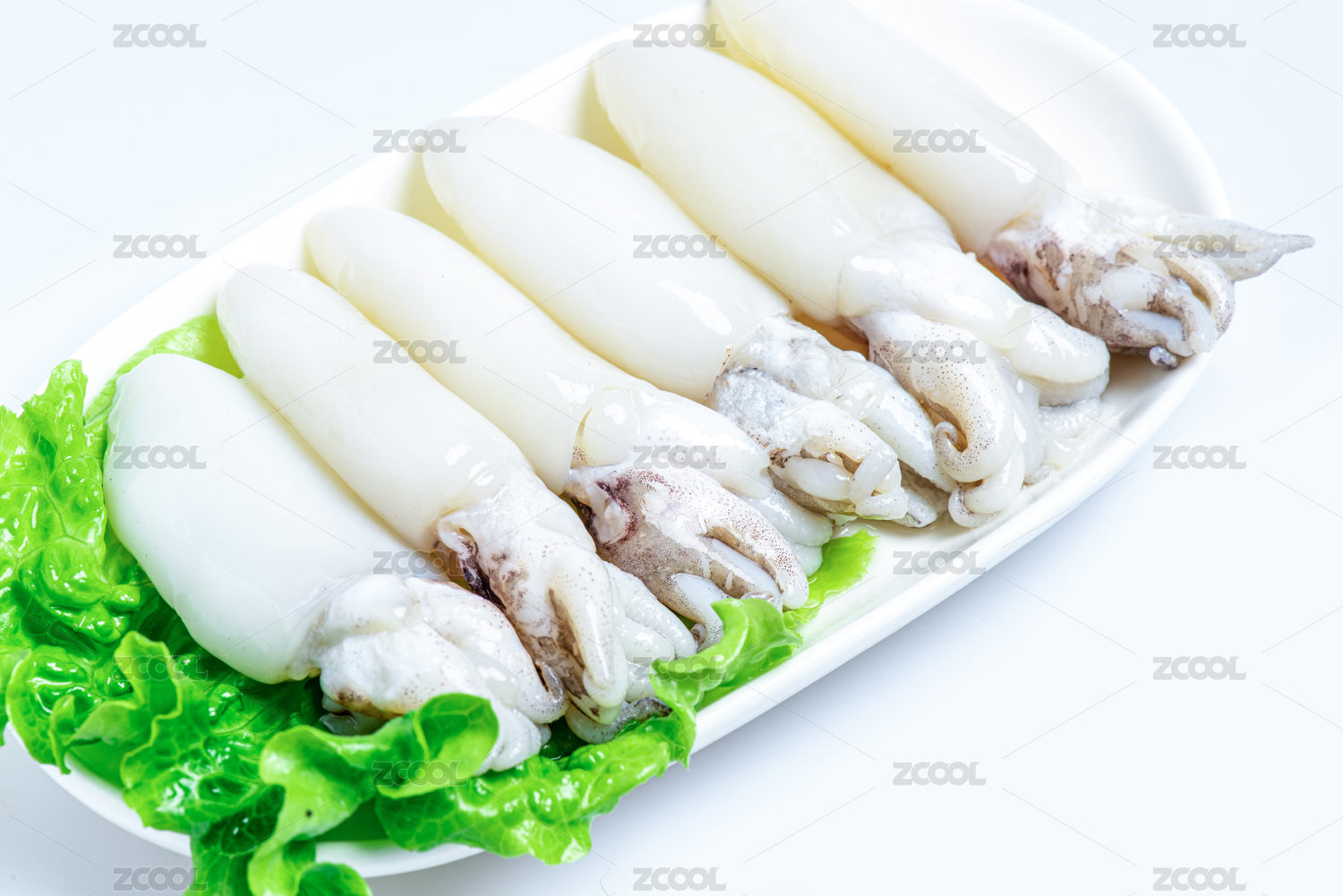 白底上的生鮮墨魚仔
