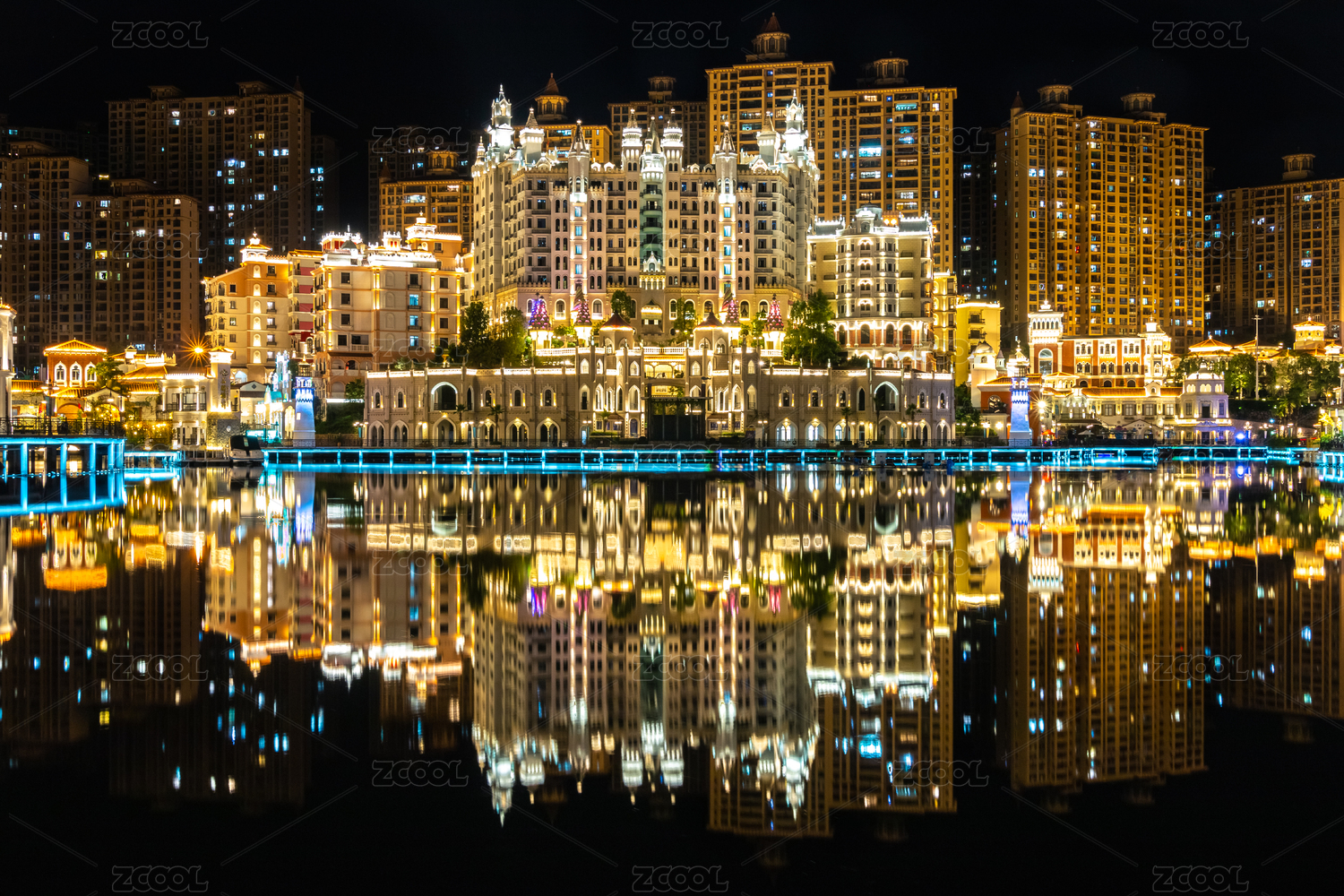 中國廣東省梅州市客天下威尼斯水岸夜景