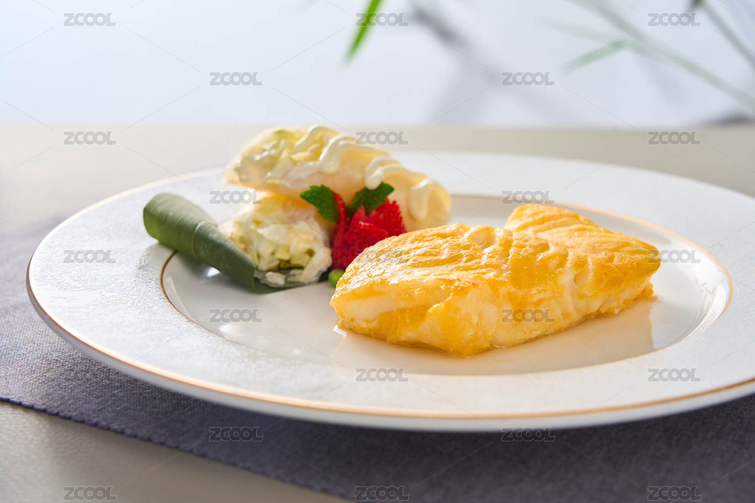 西式全日餐雞肉沙拉卷擺盤展示