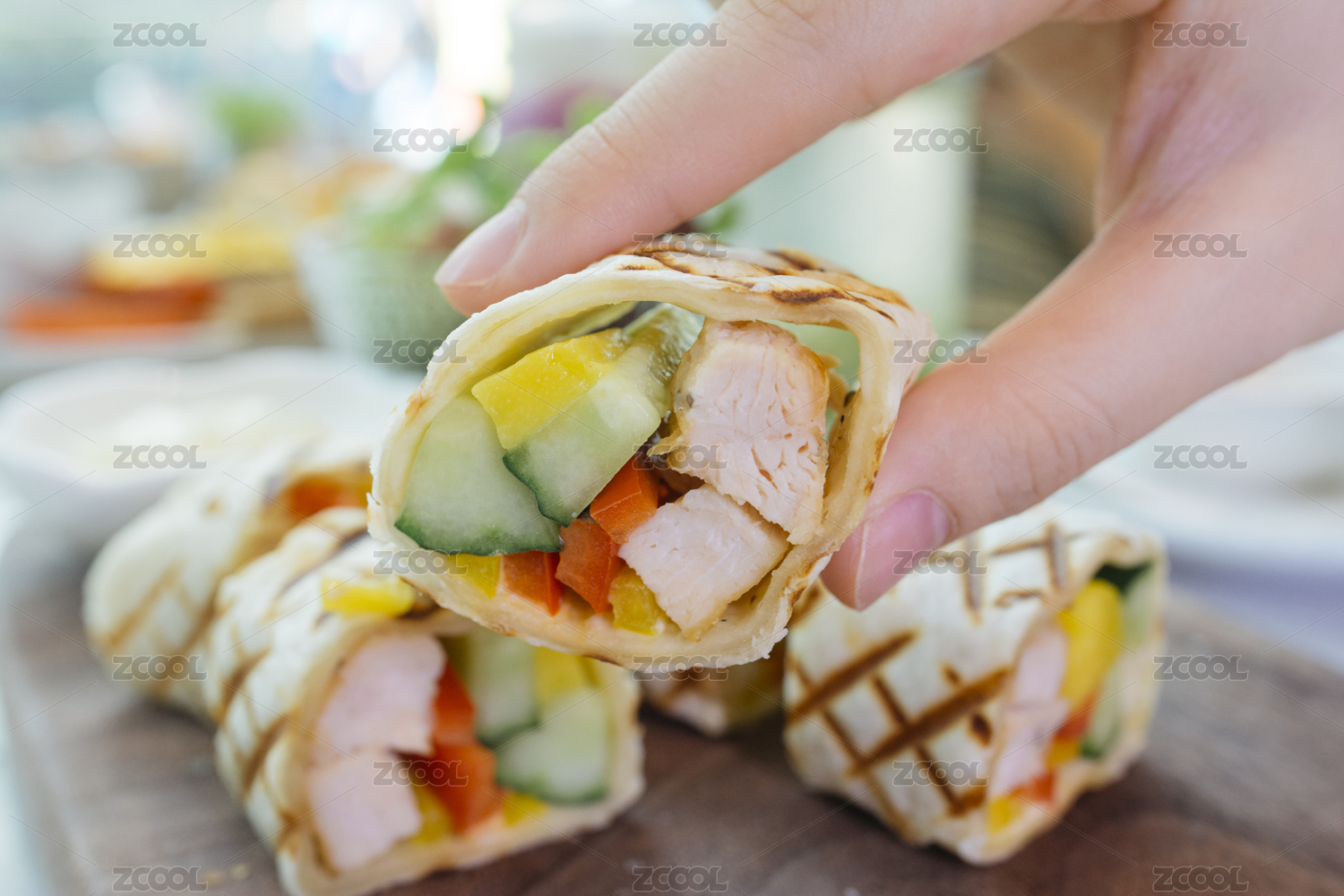 西式全日餐雞肉沙拉卷特寫展示