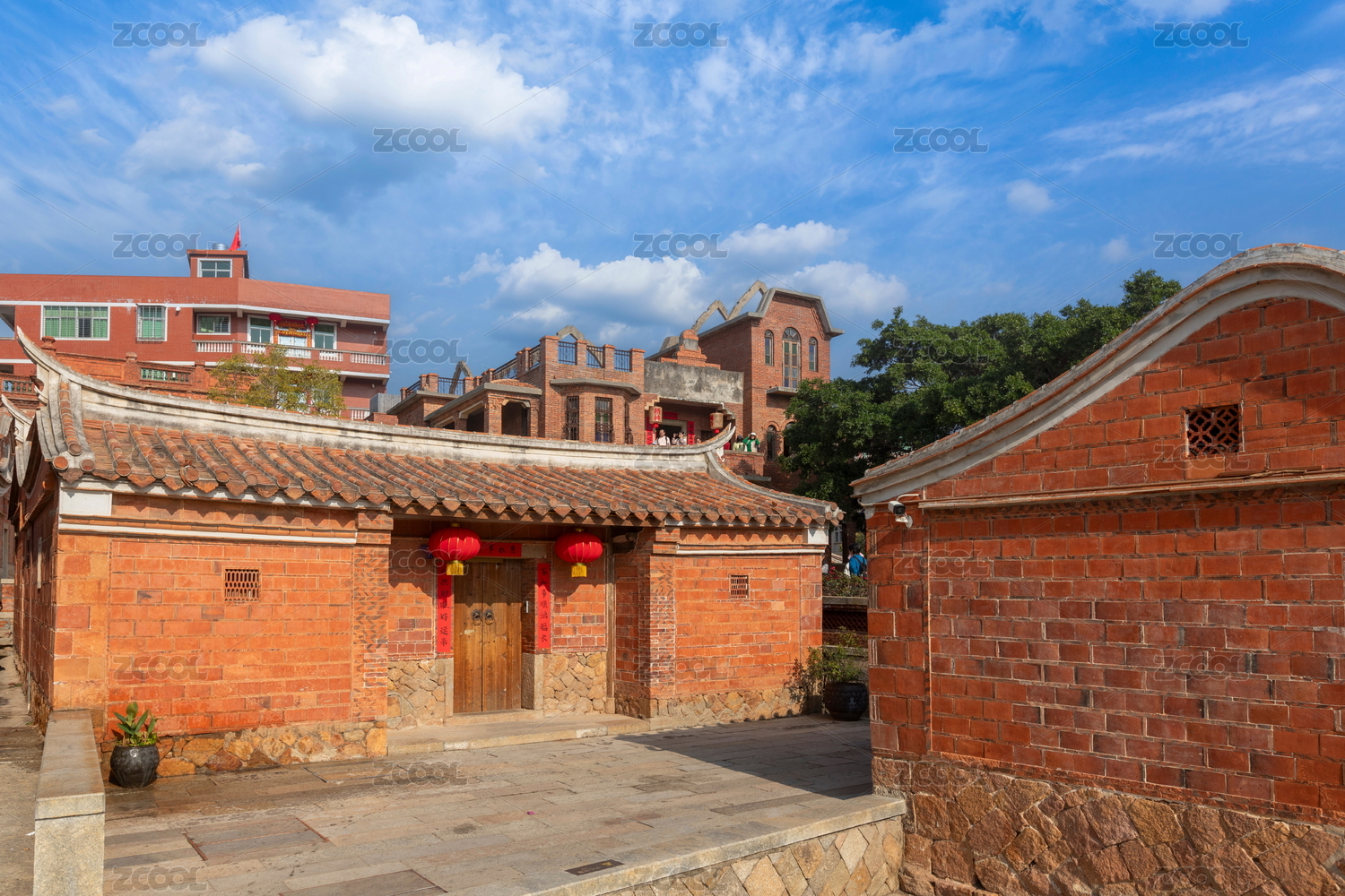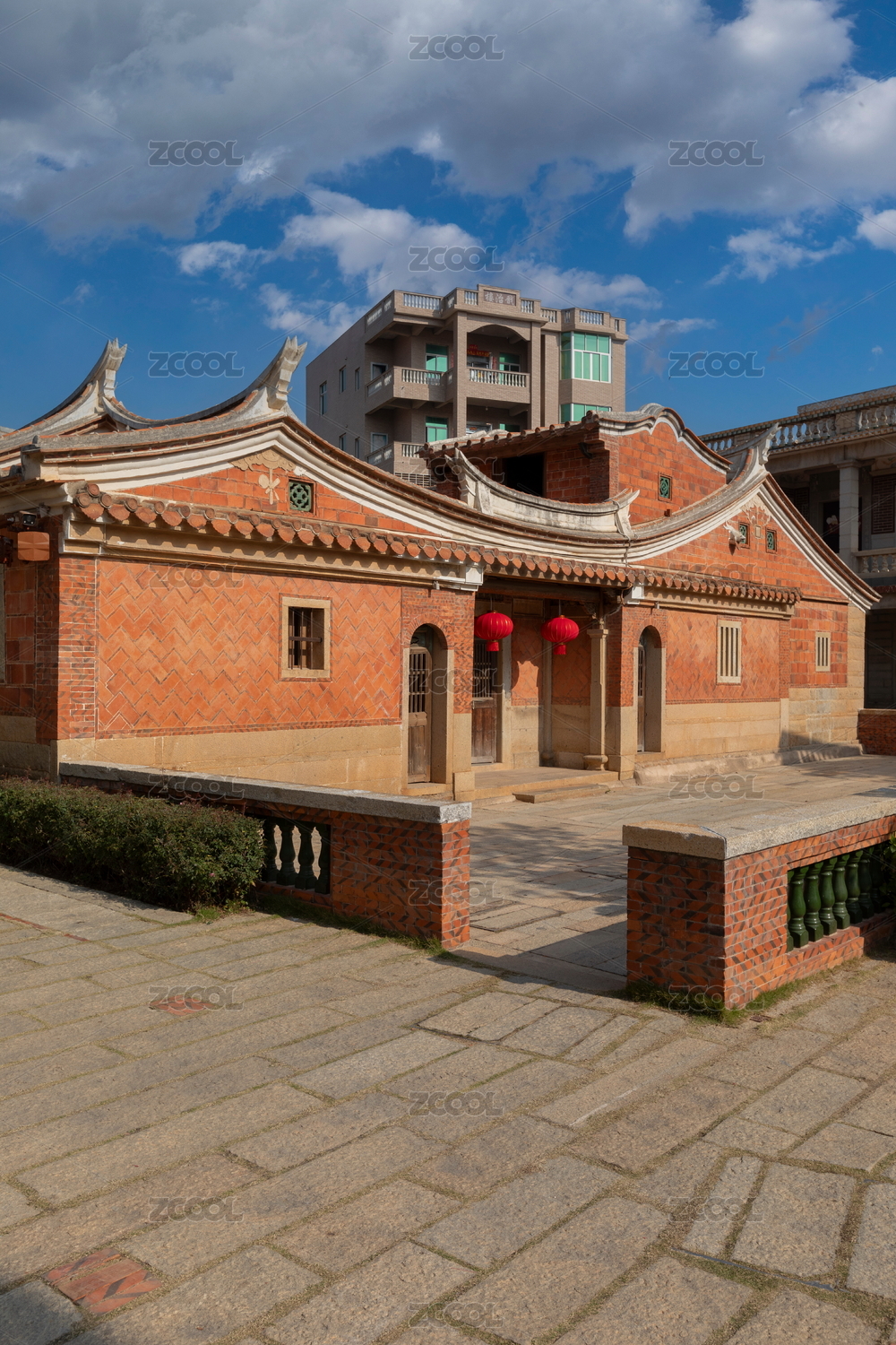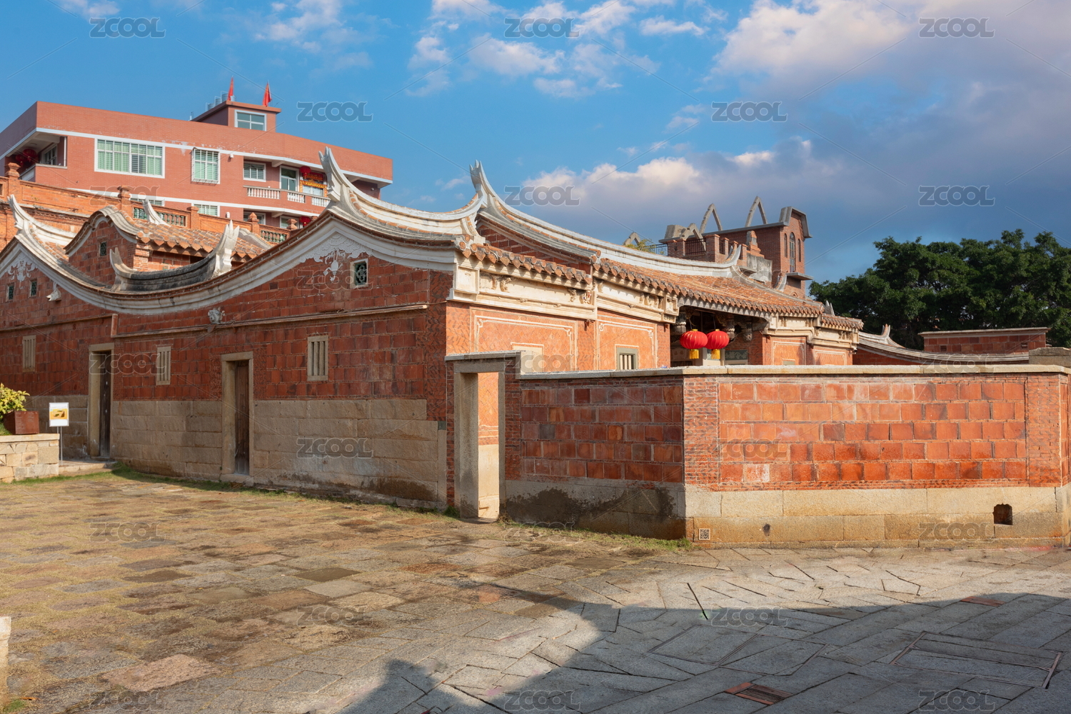 福建泉州梧林傳統(tǒng)村落藍天白云古建筑