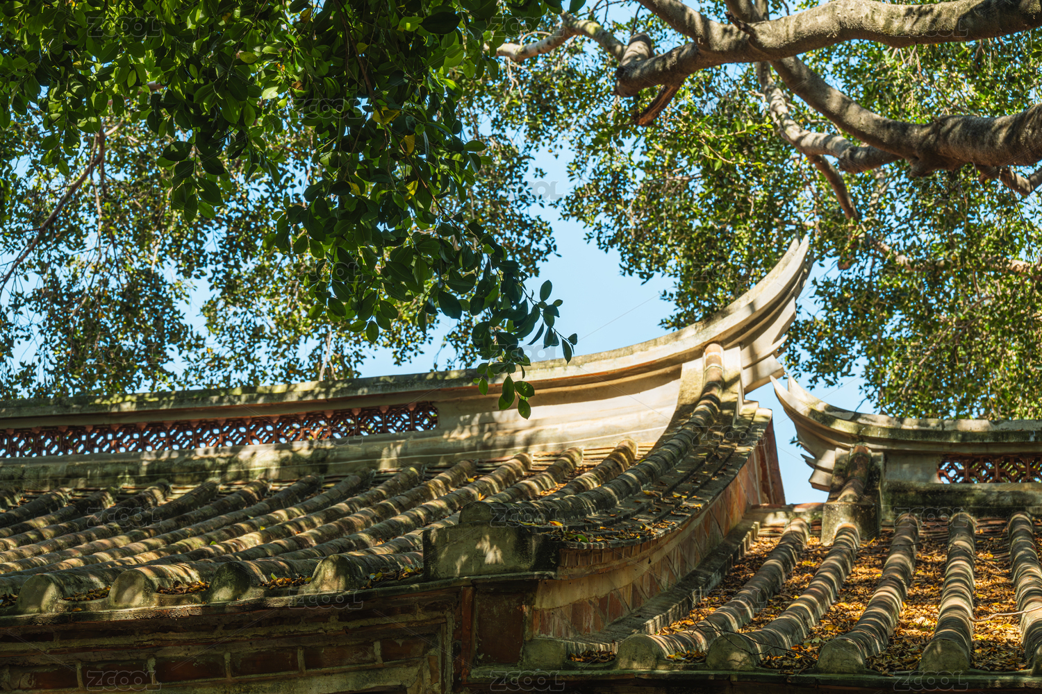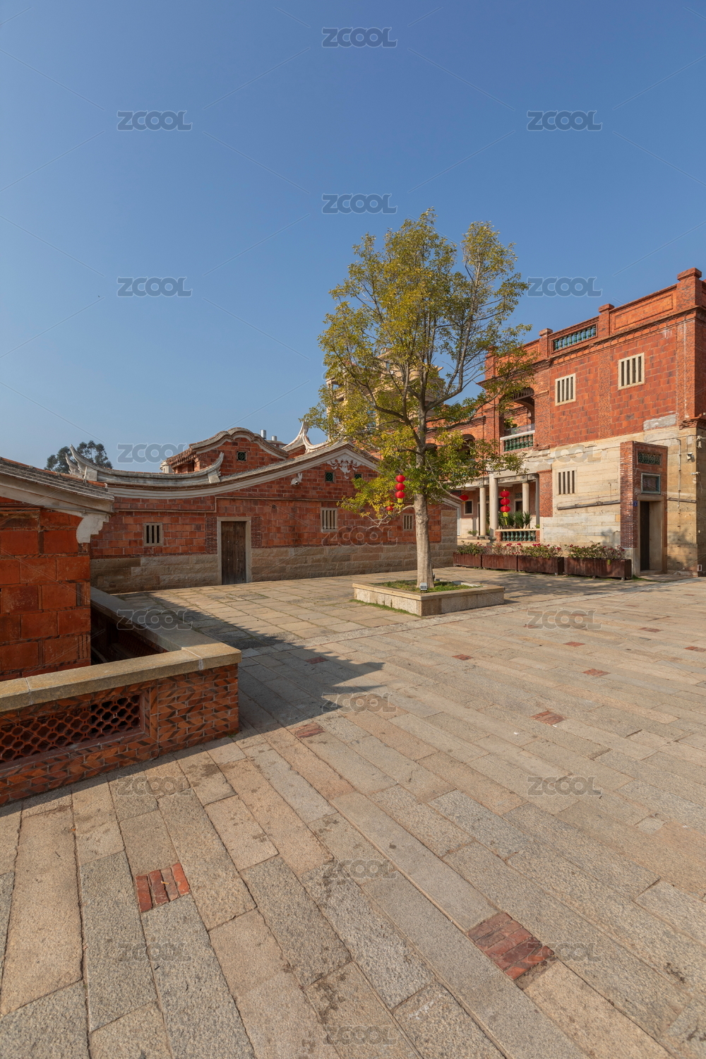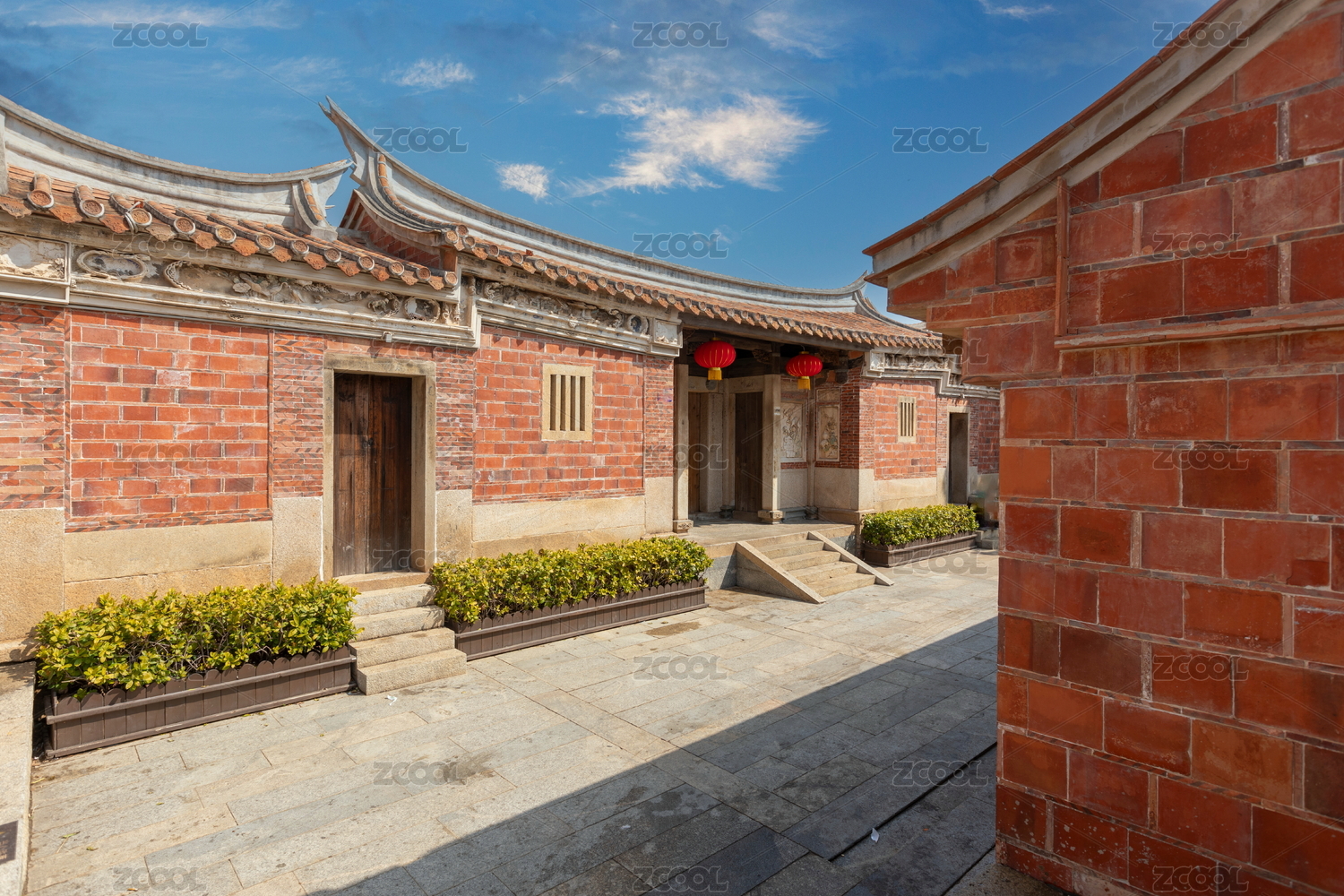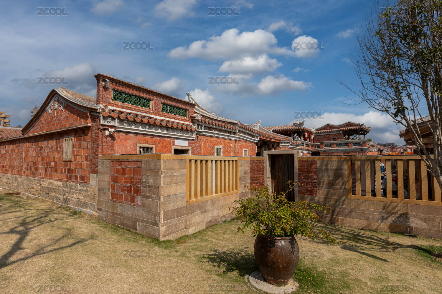 福建泉州梧林傳統(tǒng)村落藍天白云古建筑