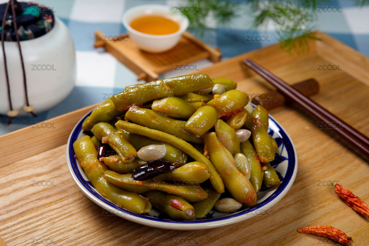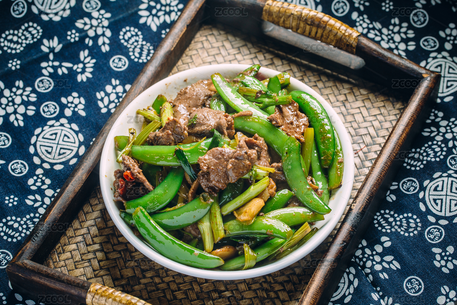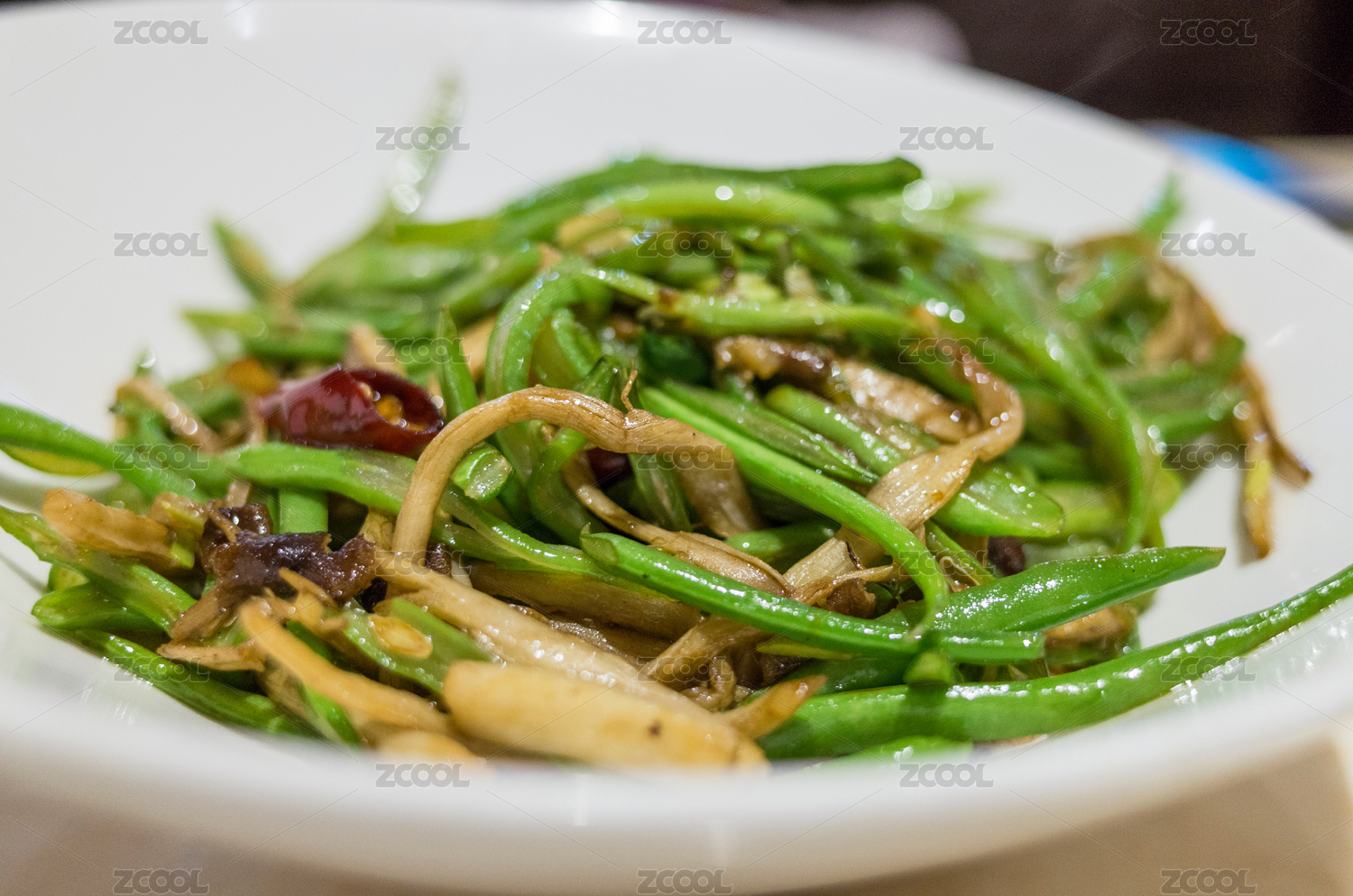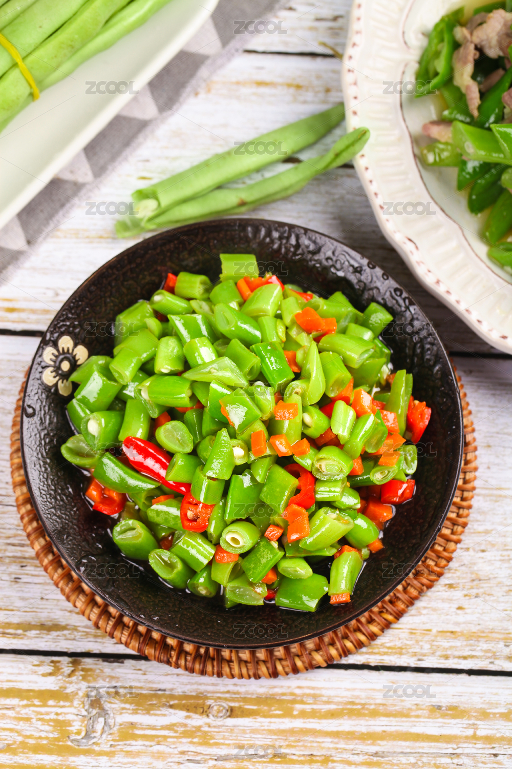 俯拍一盤炒四季豆