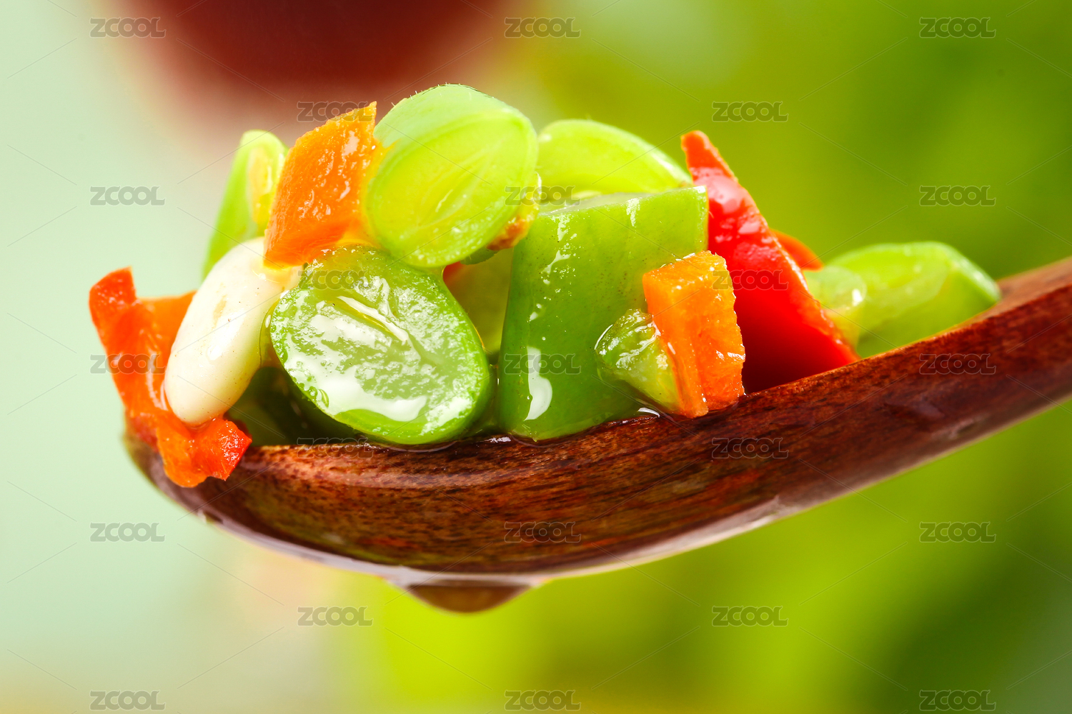 勺子上挖著素炒四季豆