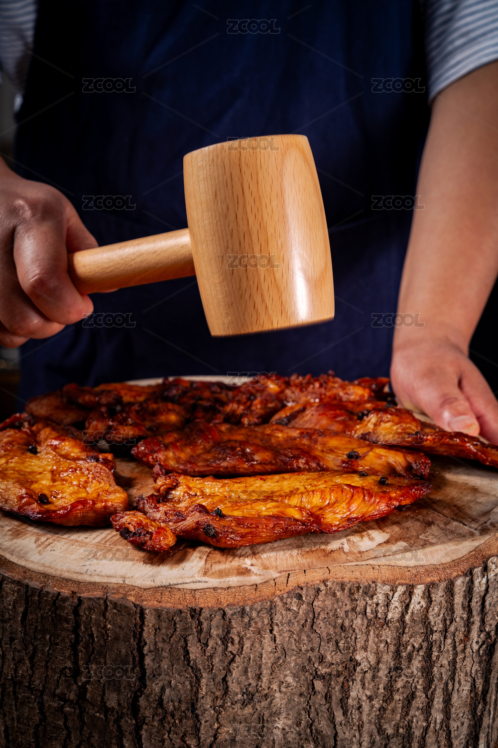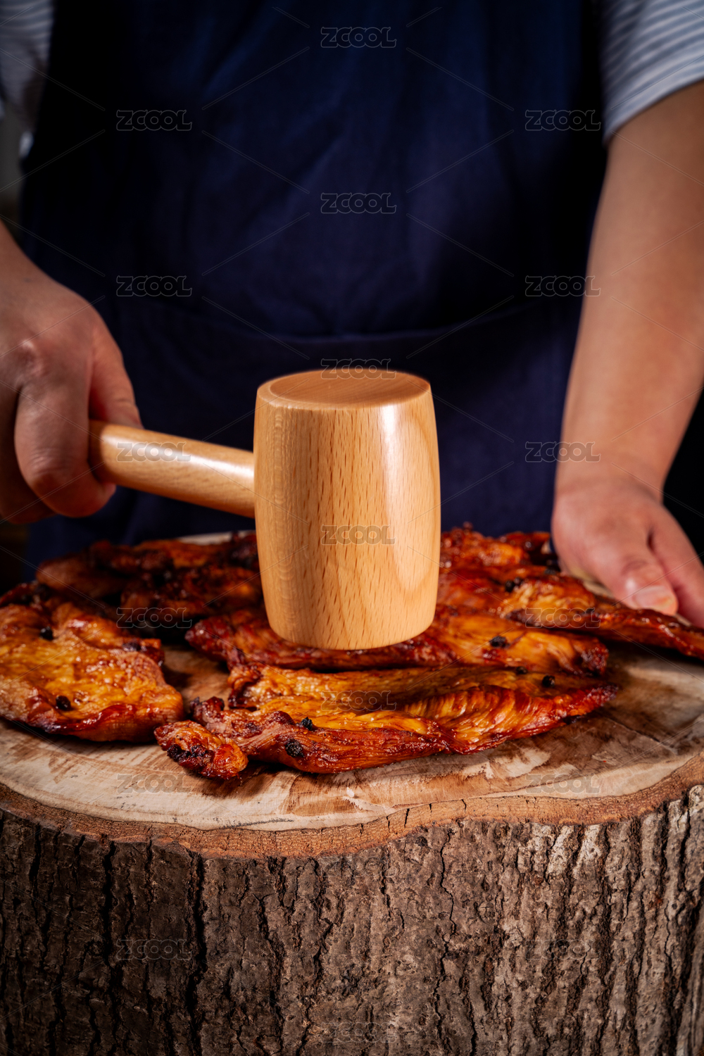用木槌捶打肉干