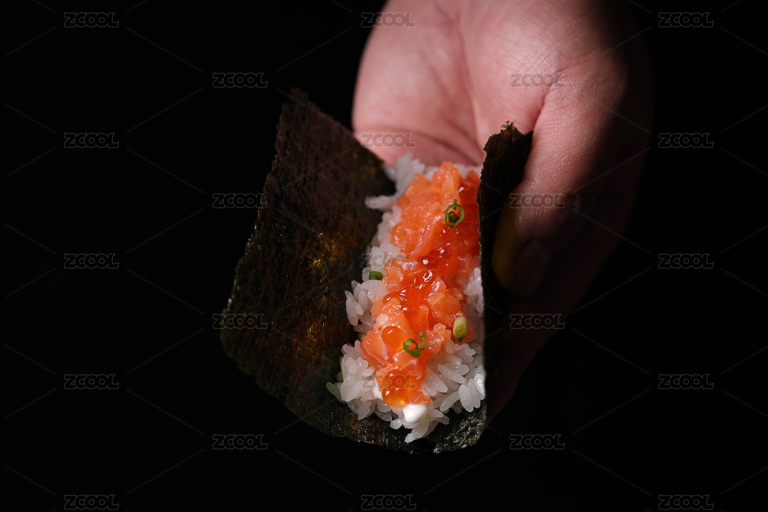 手持糯米飯卷