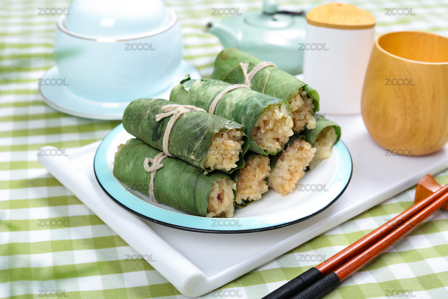 美食小吃竹葉包飯卷