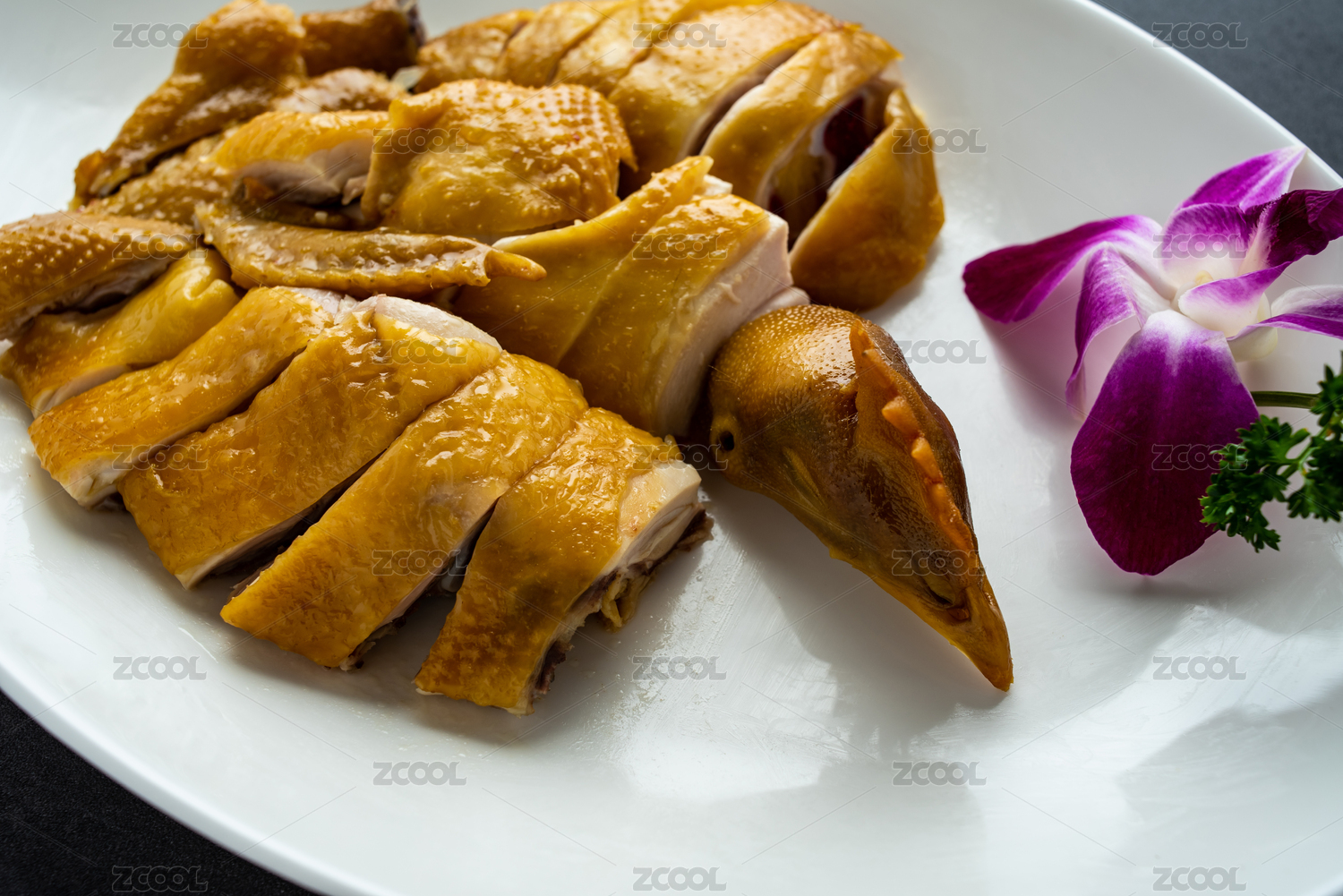 富貴咸香雞擺放在黑色鵝卵石上