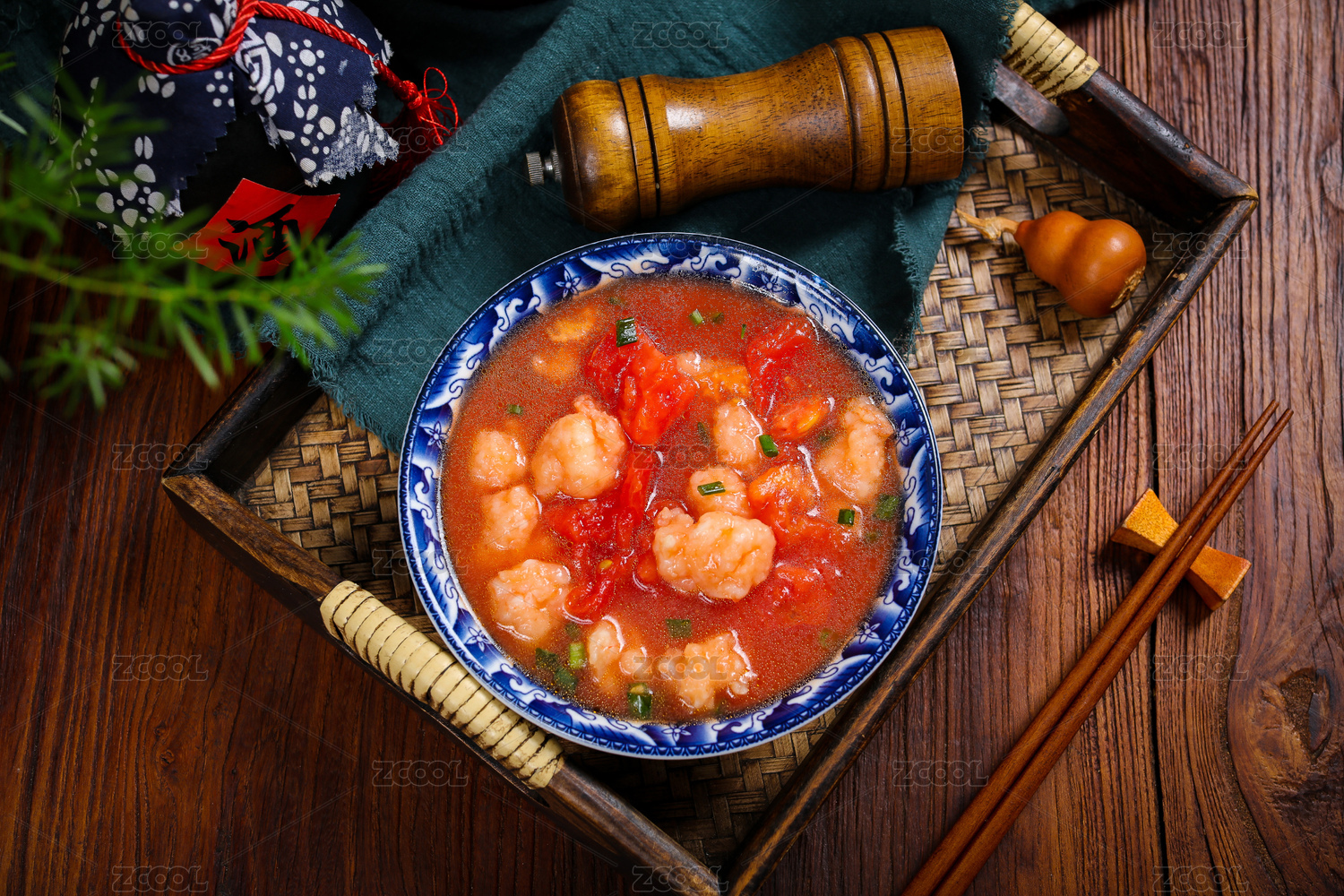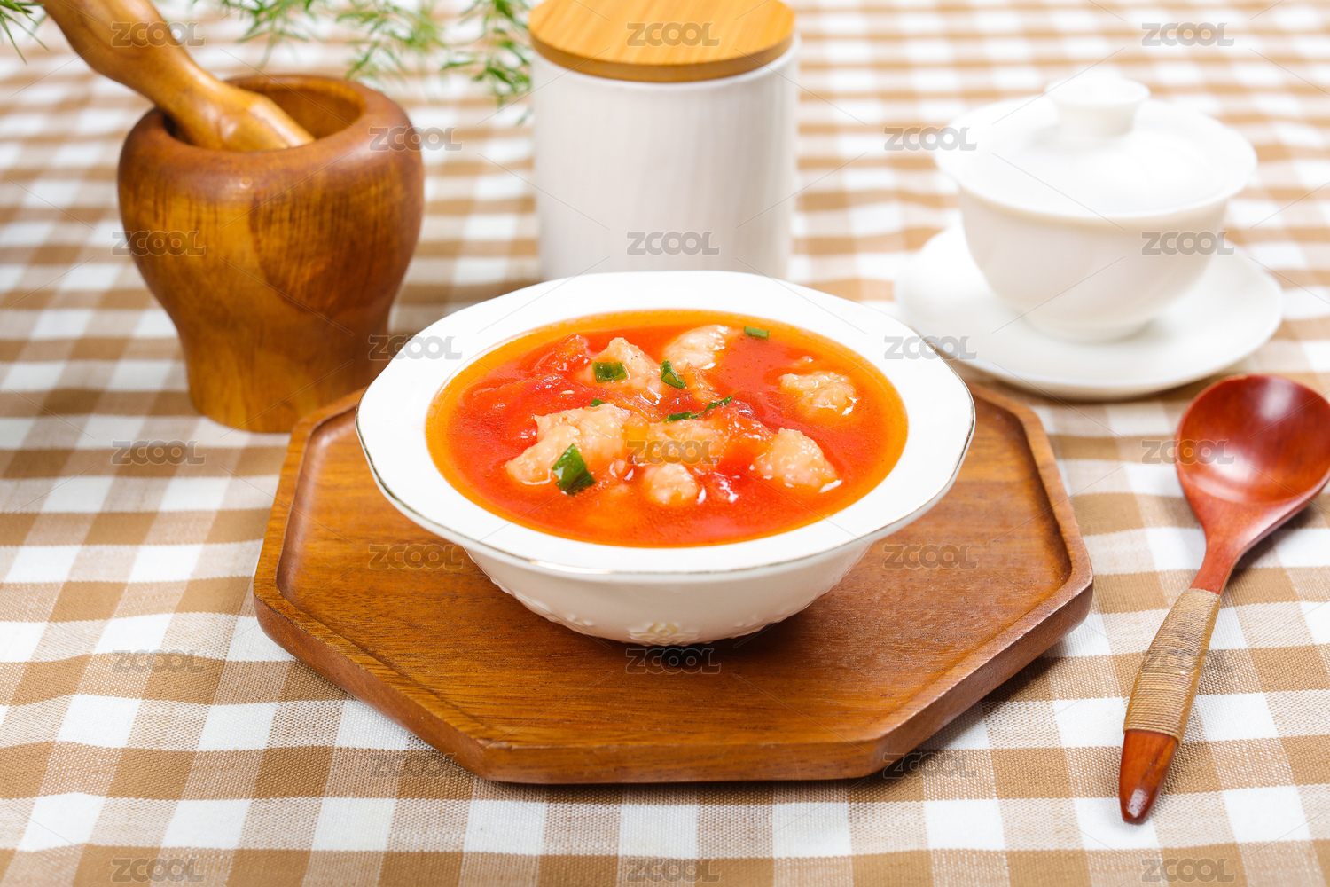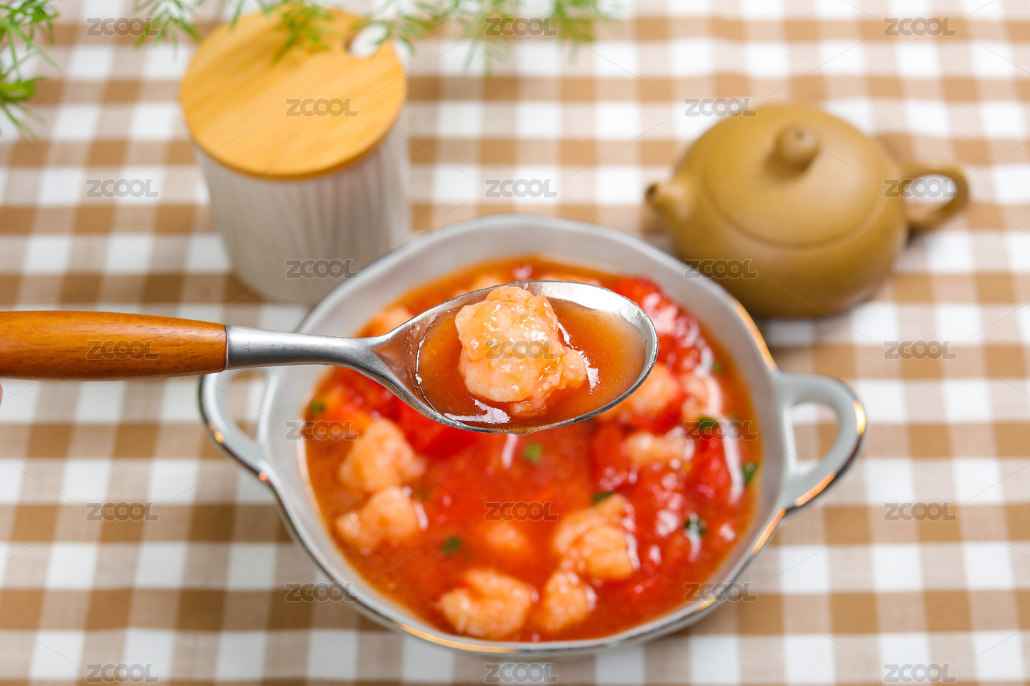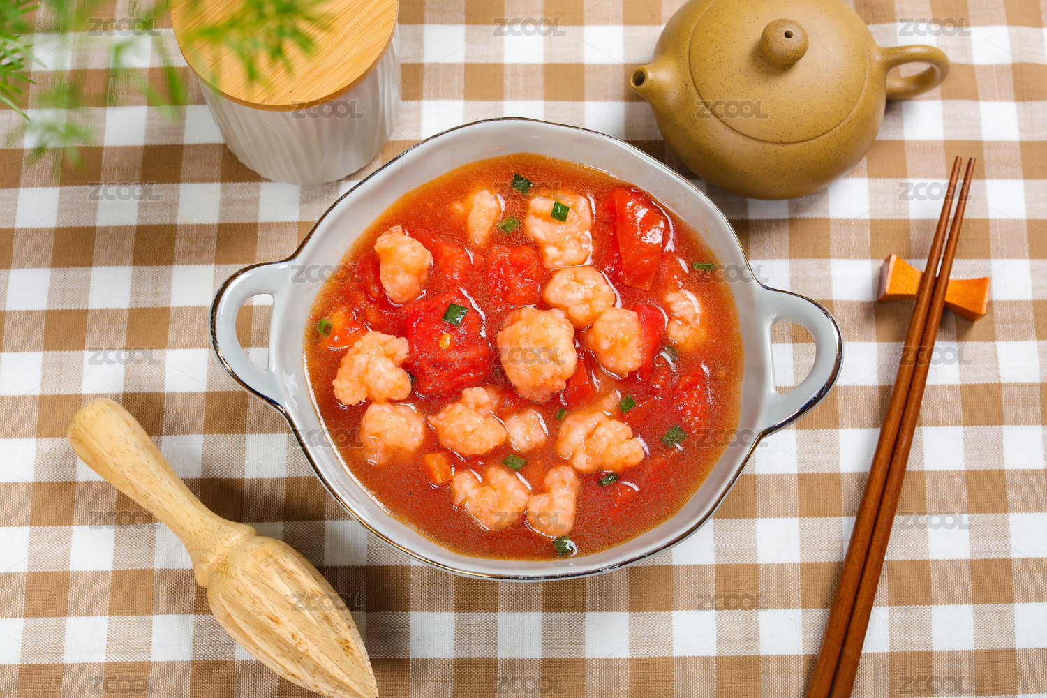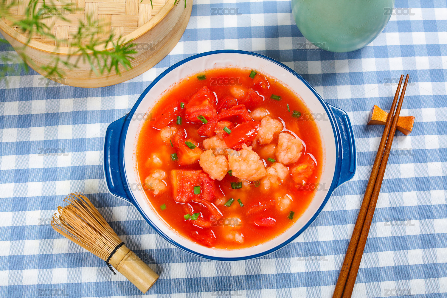 開胃爽口湯菜美食番茄煮蝦滑湯