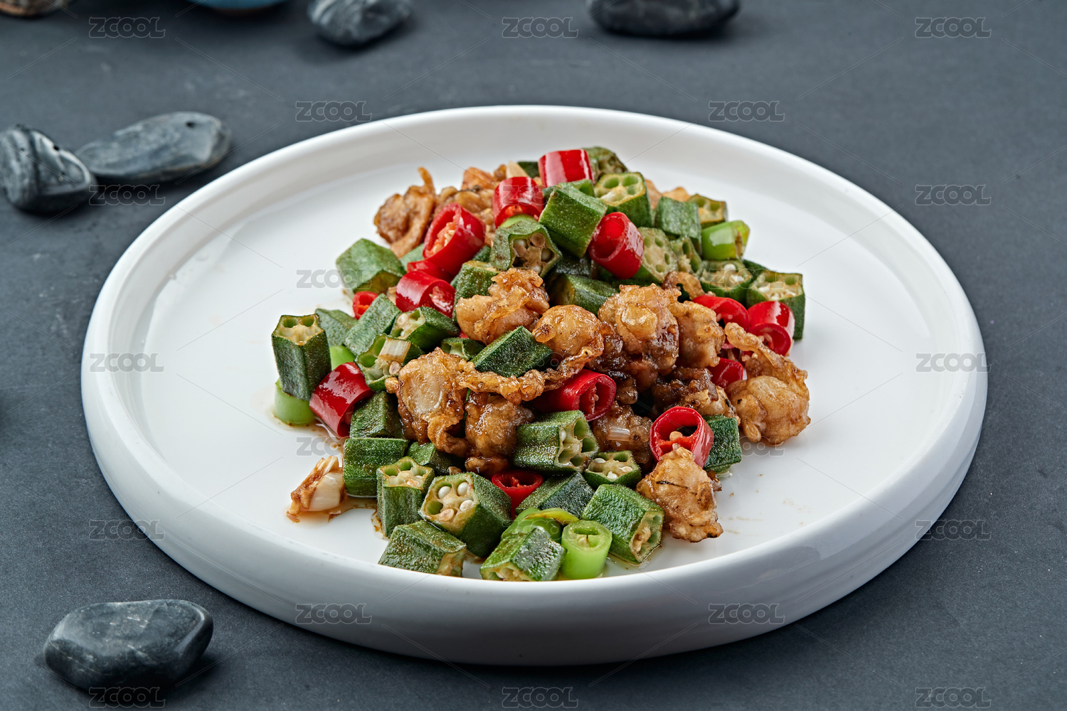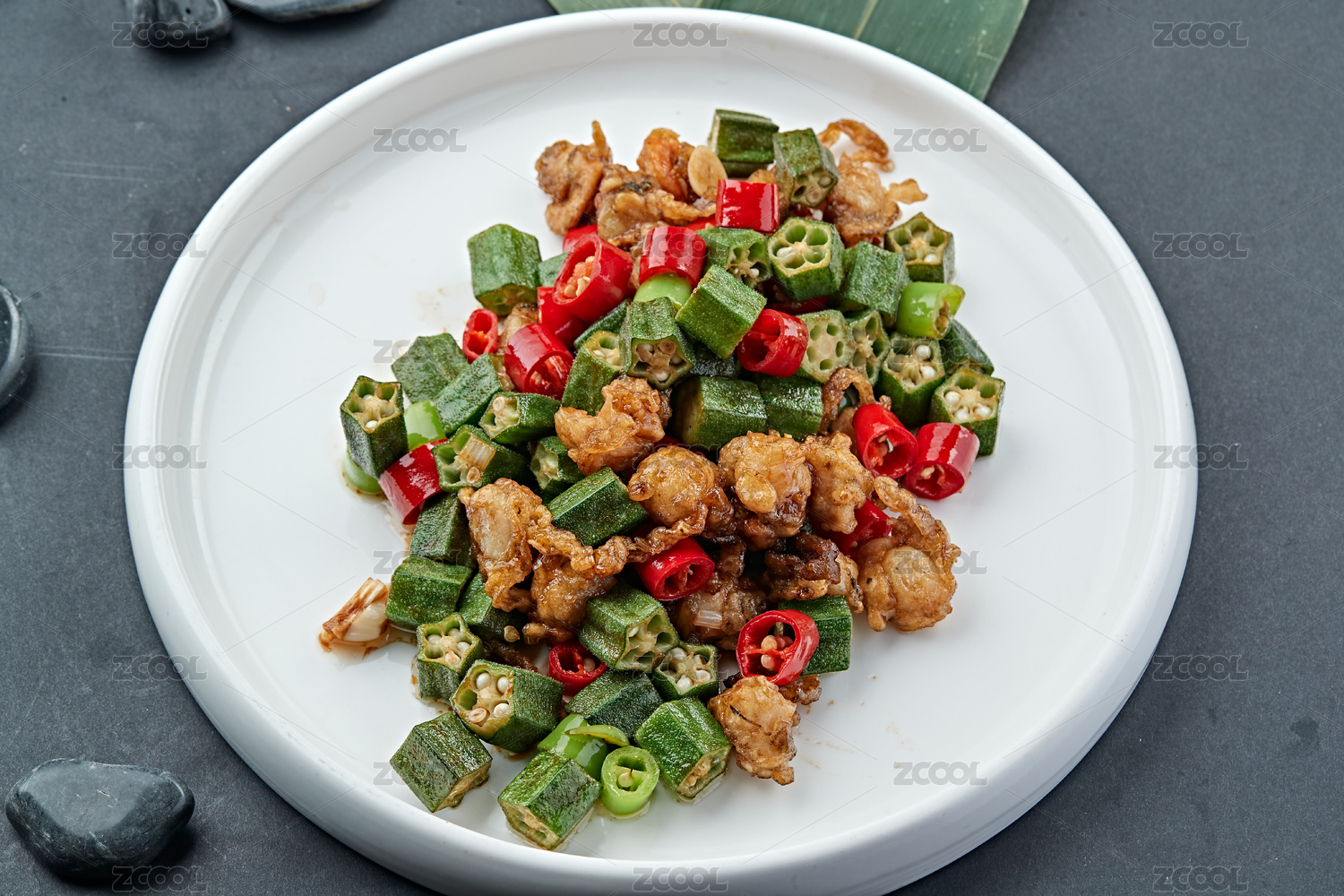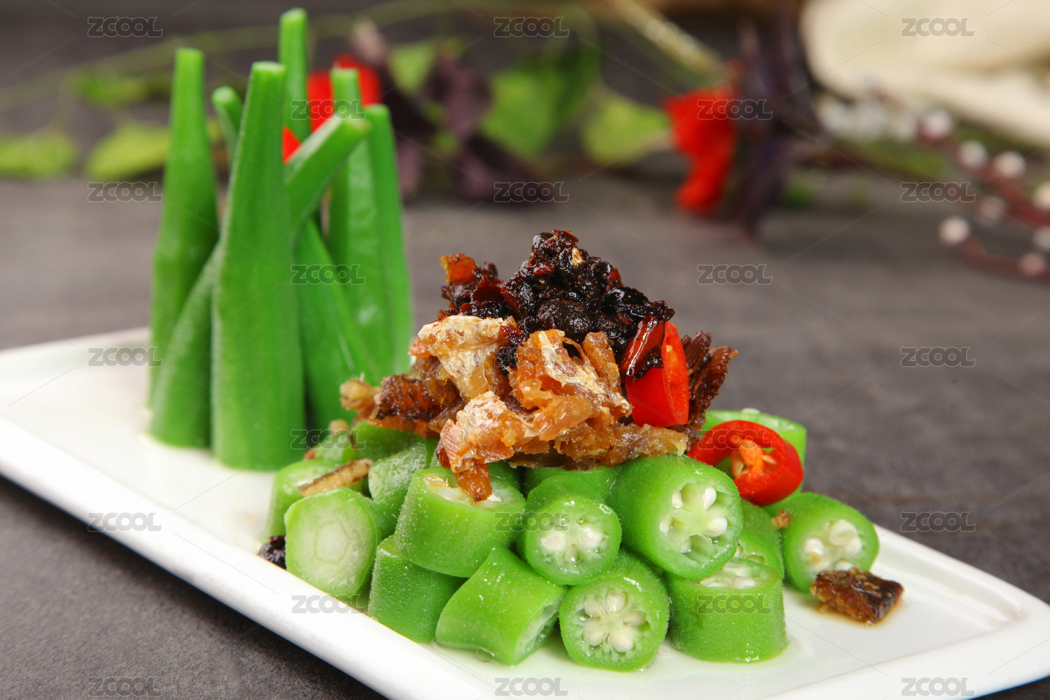 辣子小炒秋葵扇貝丁