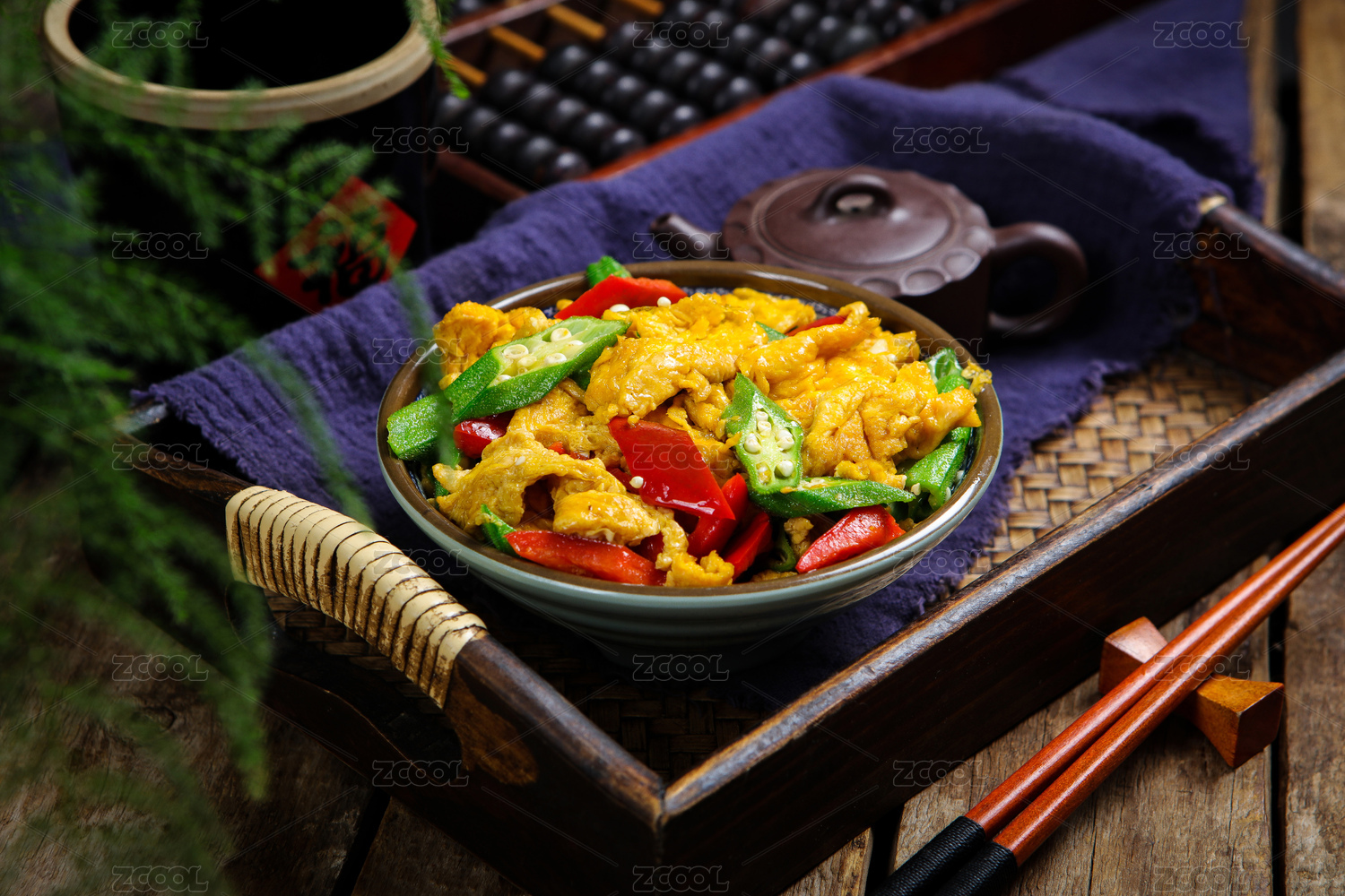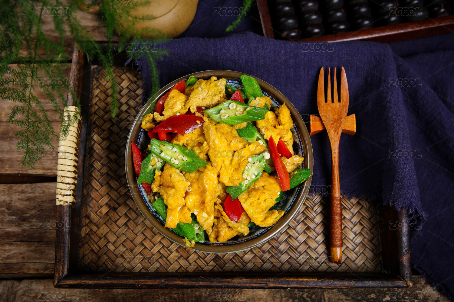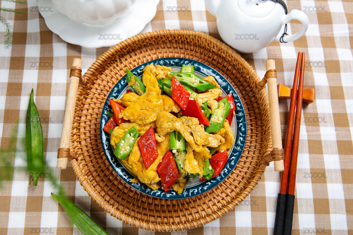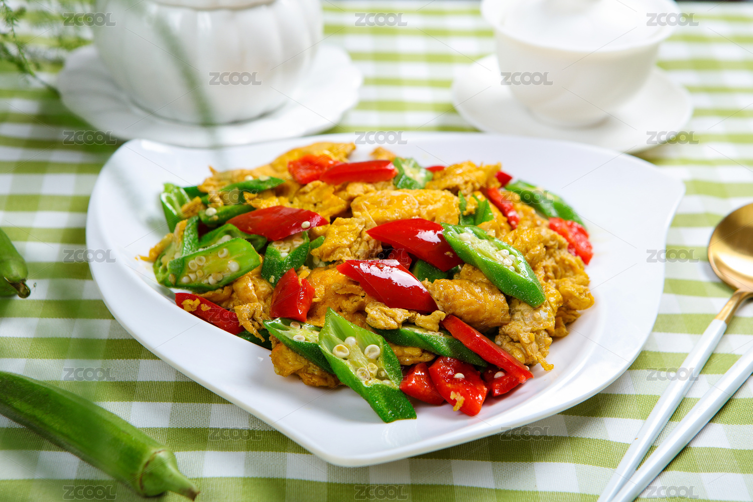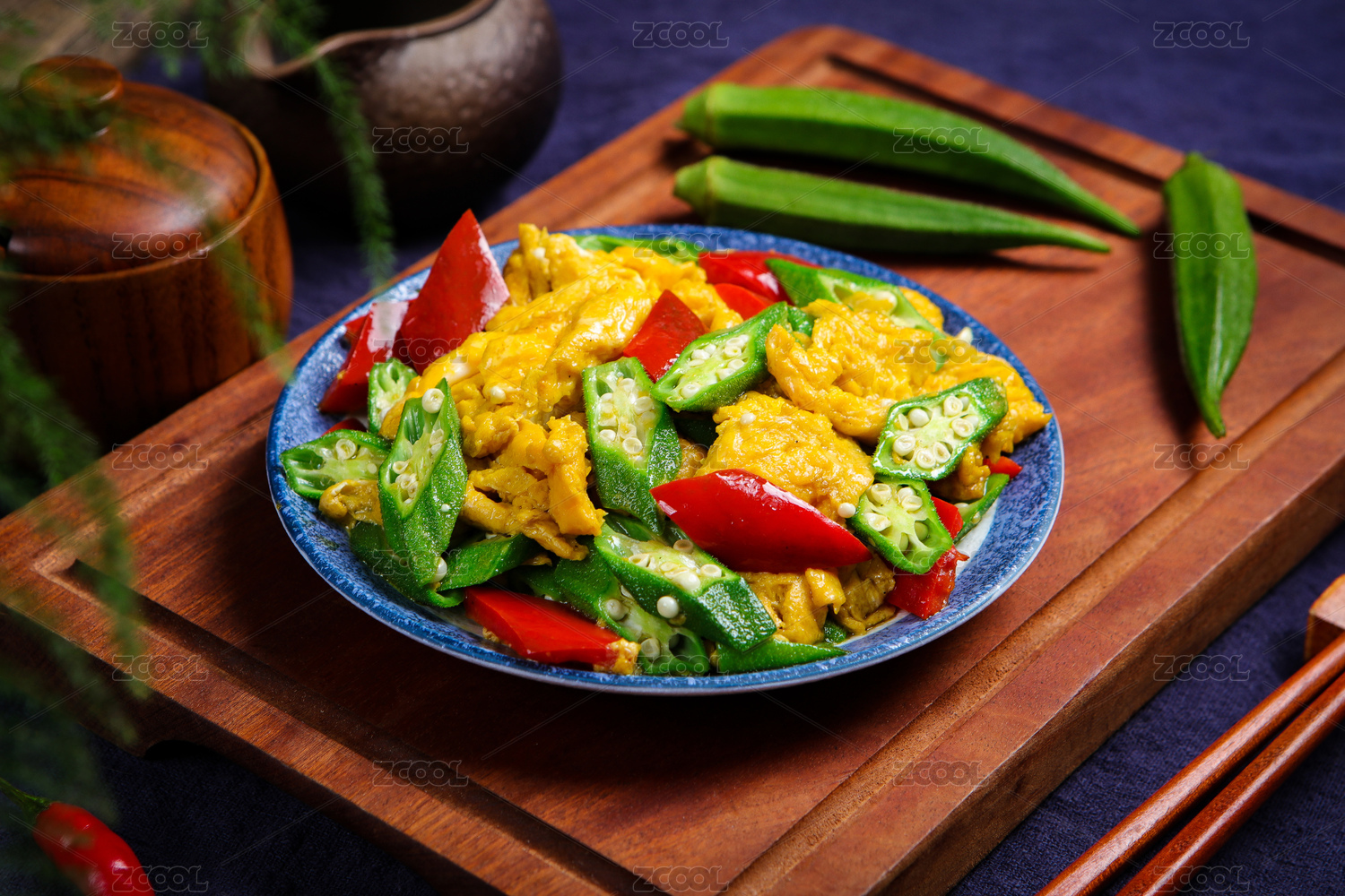 中餐美食特色菜小炒秋葵雞蛋