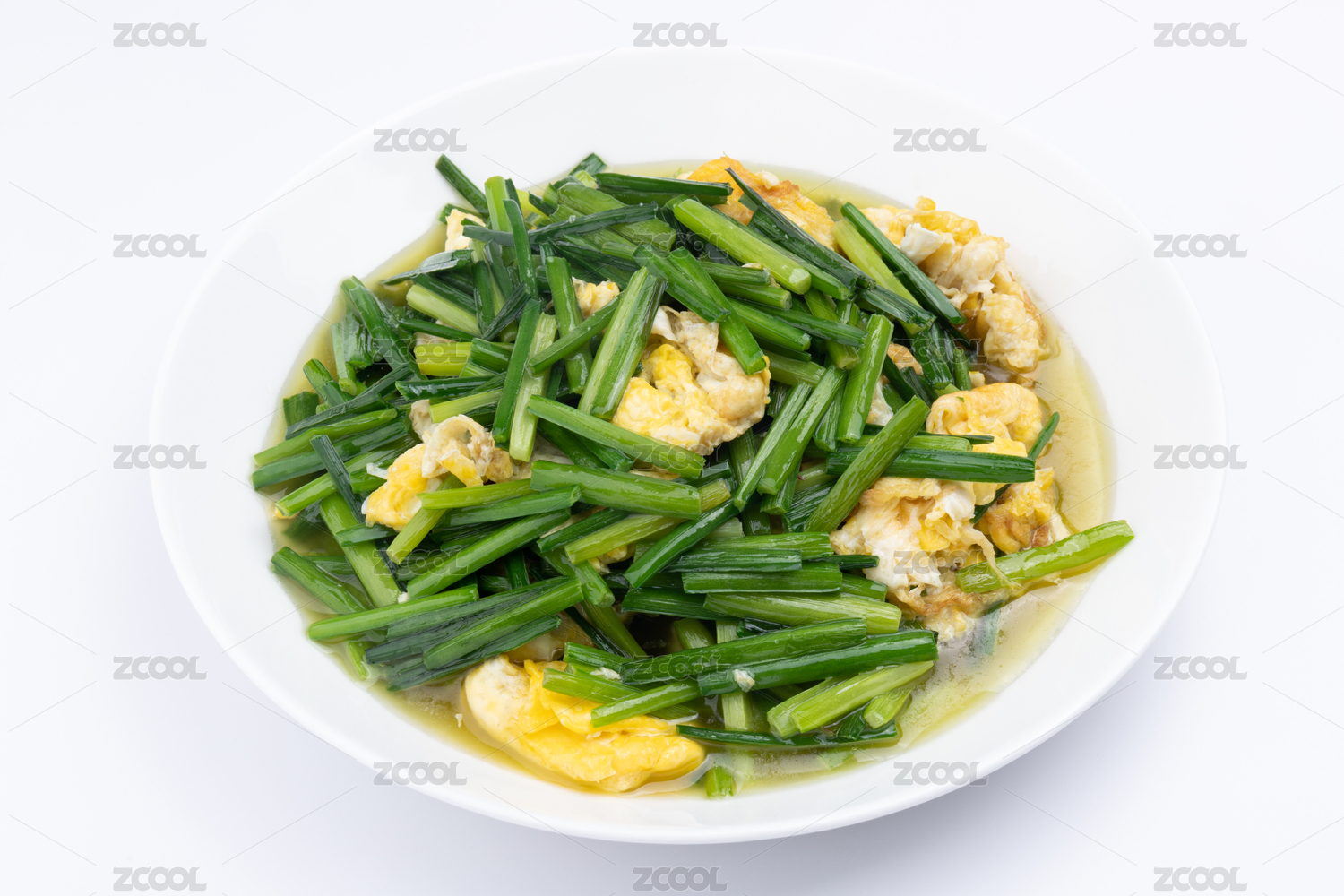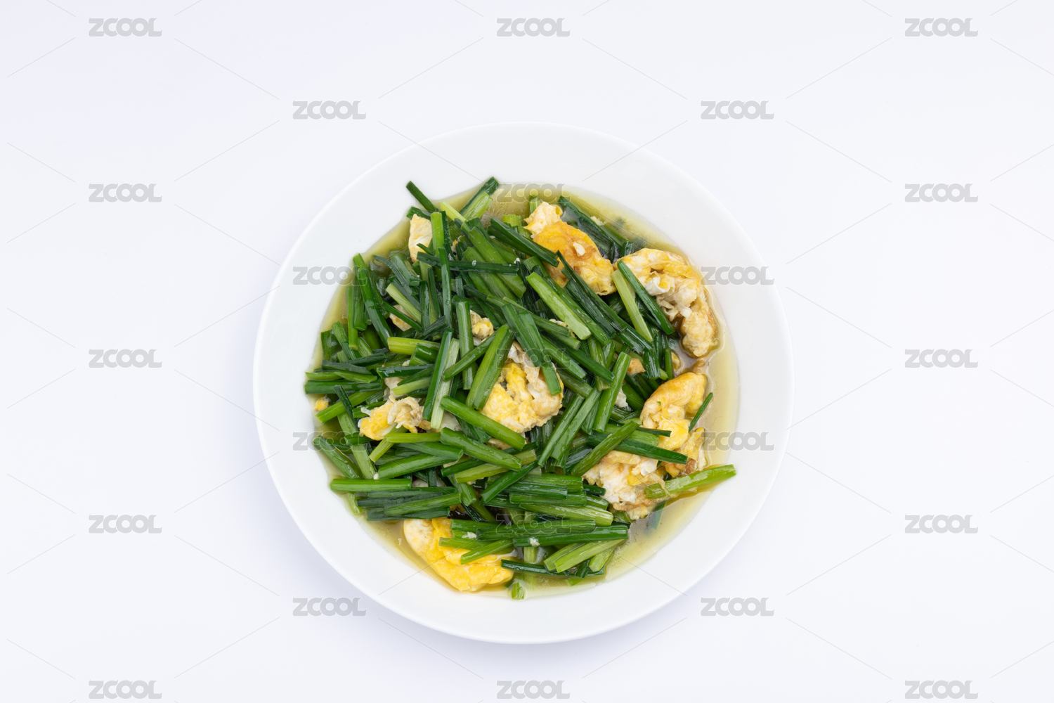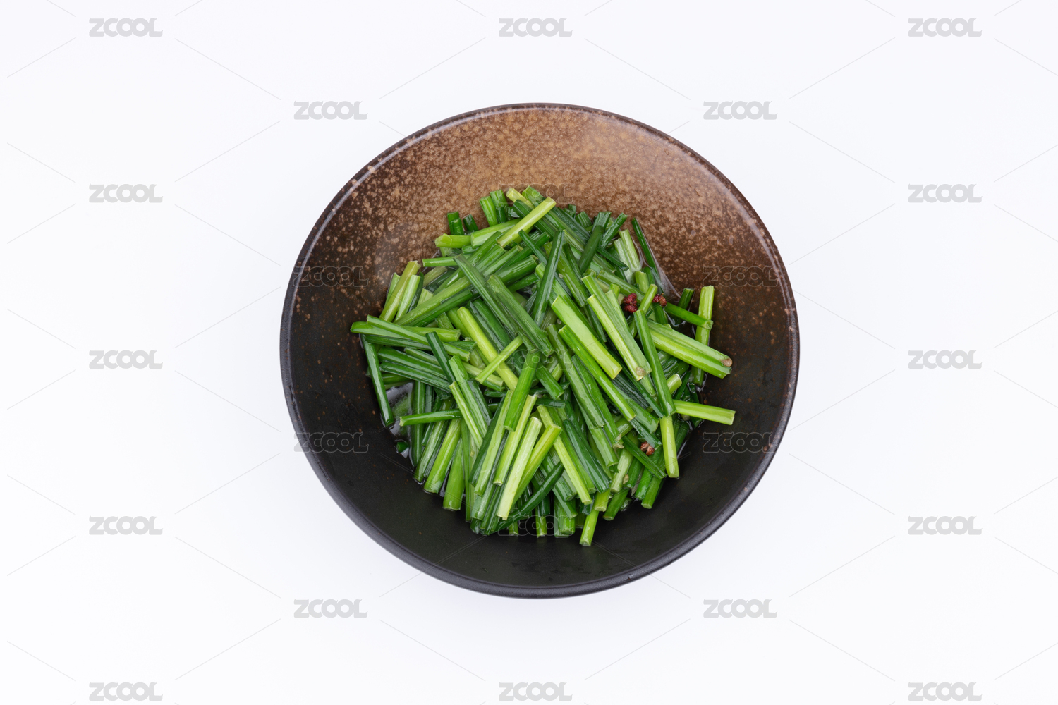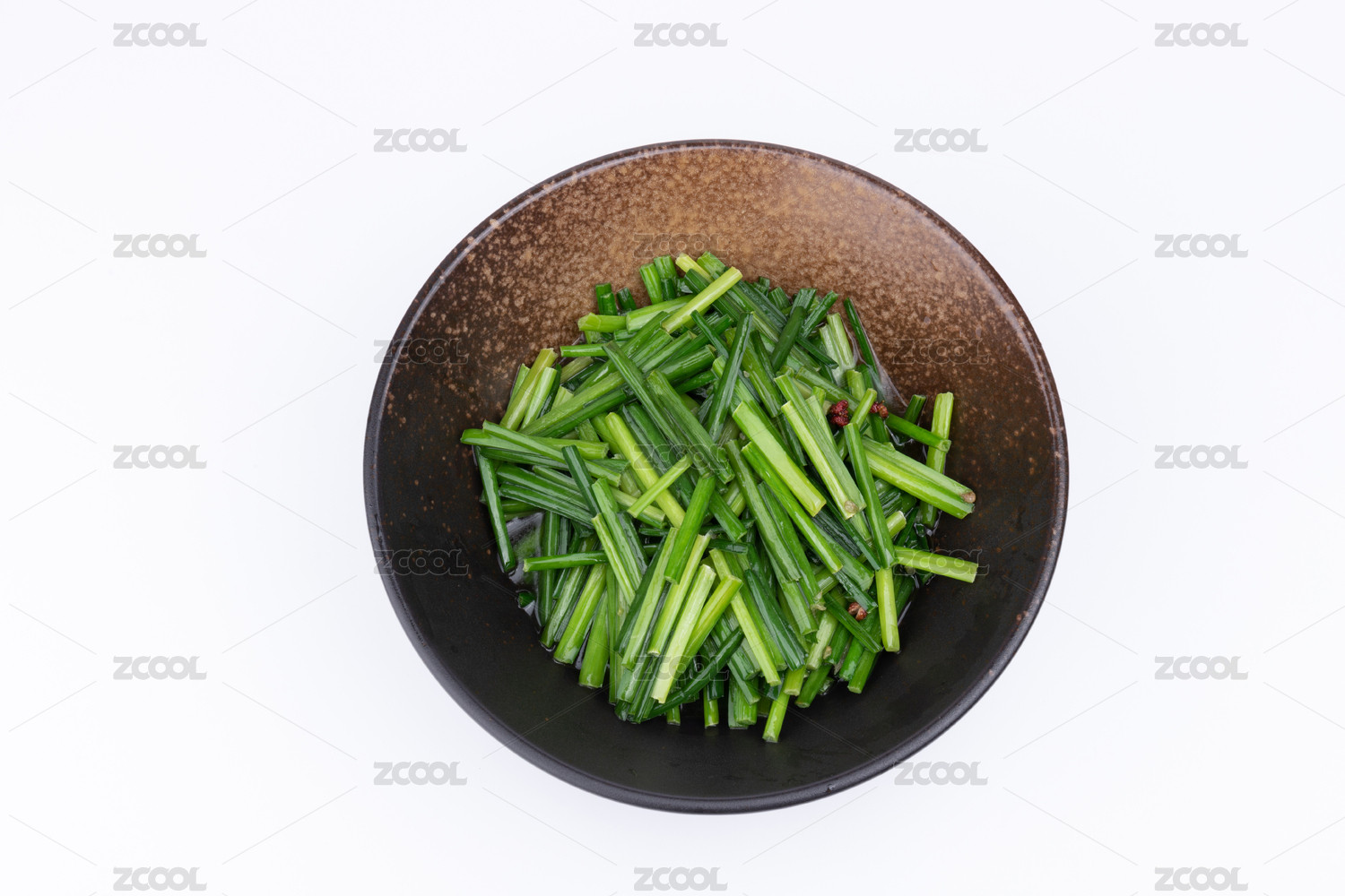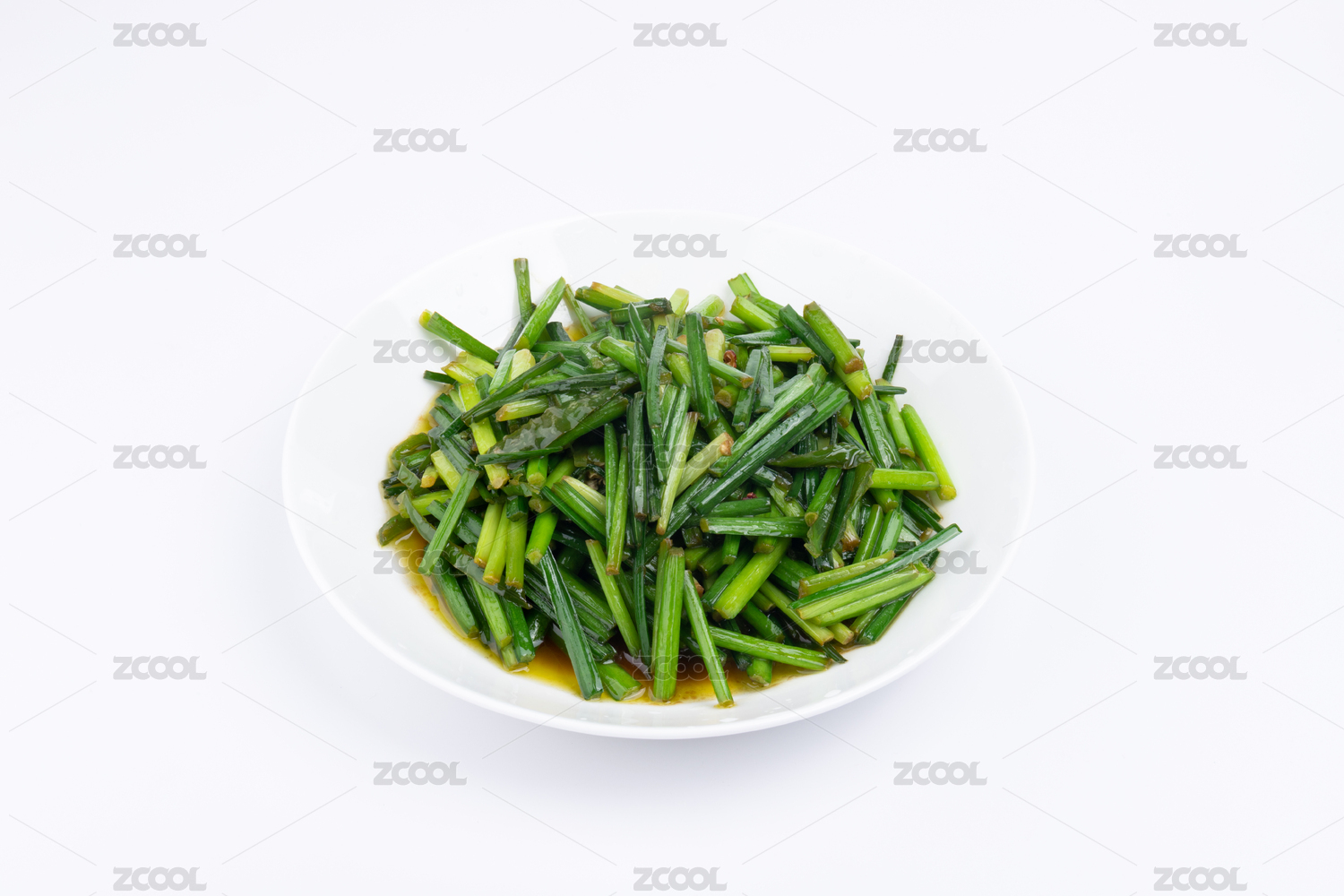 瓷碗里的素炒韭苔