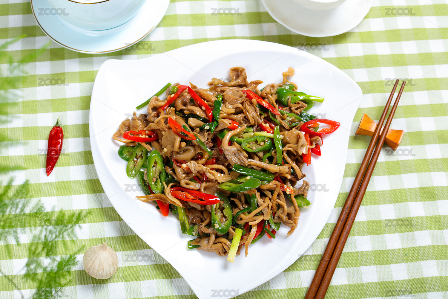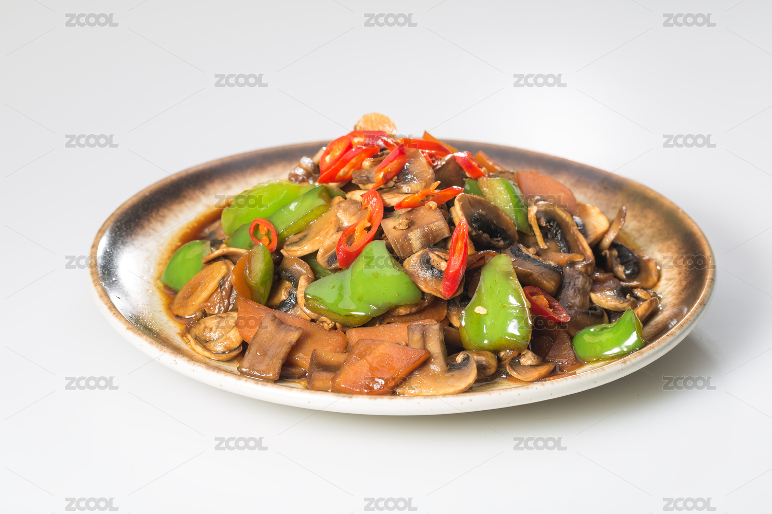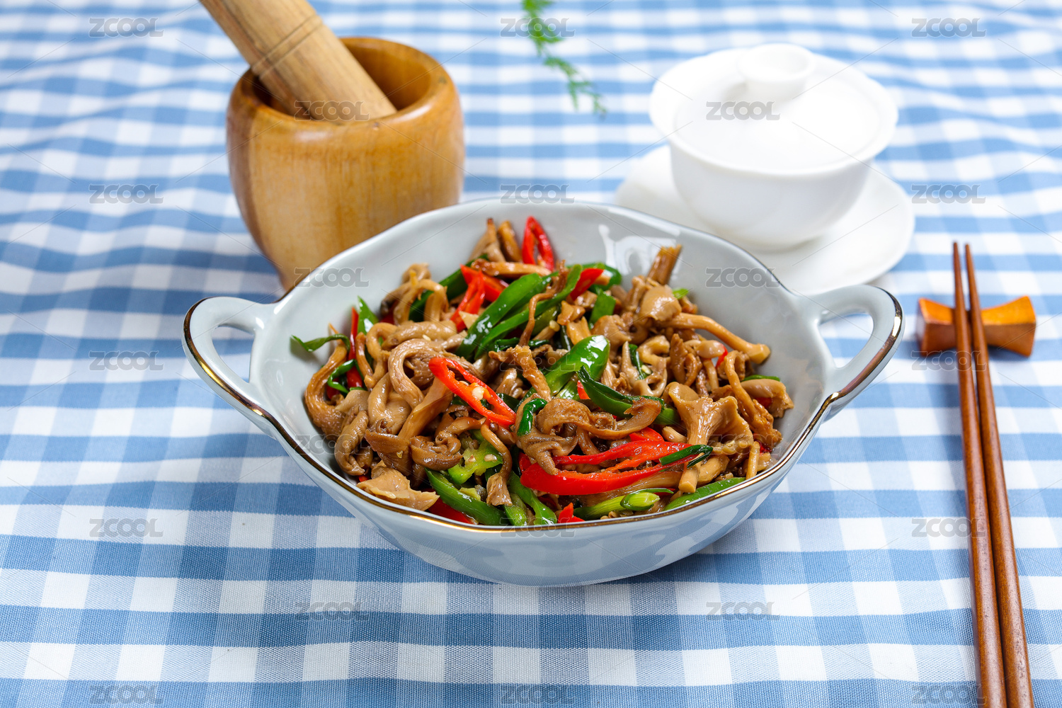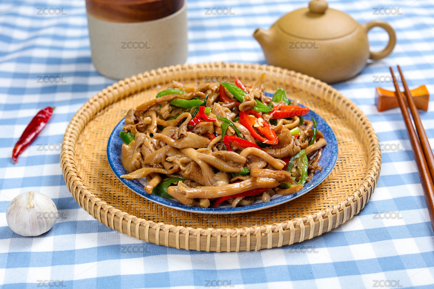 中式家常菜肴青椒炒白蘑菇
