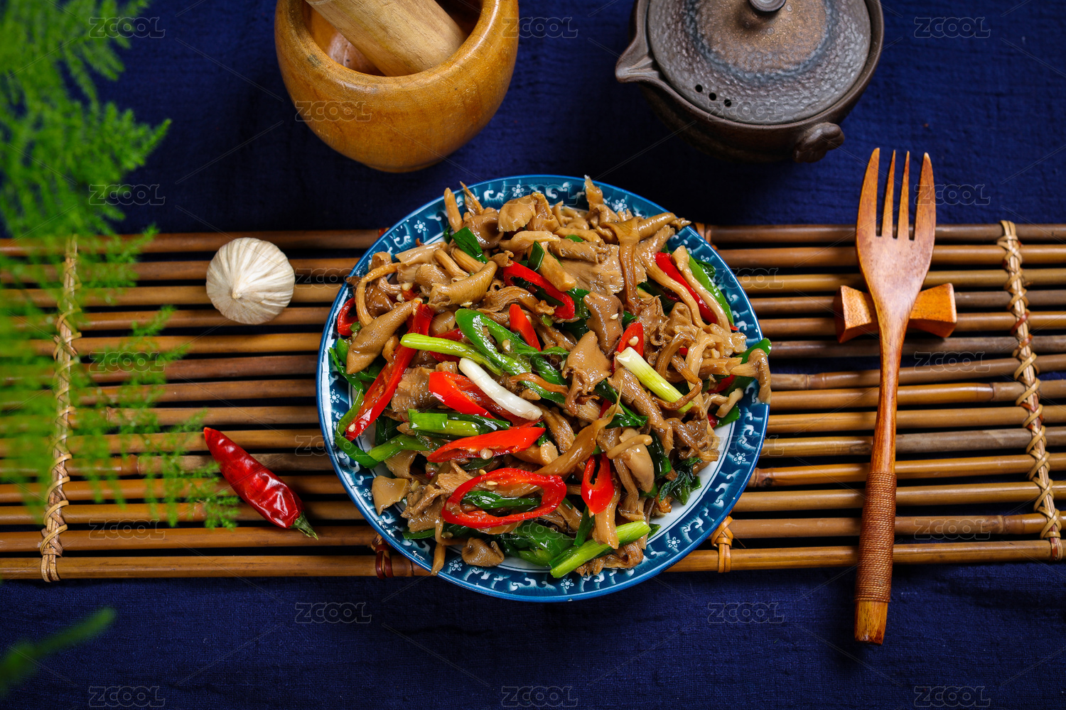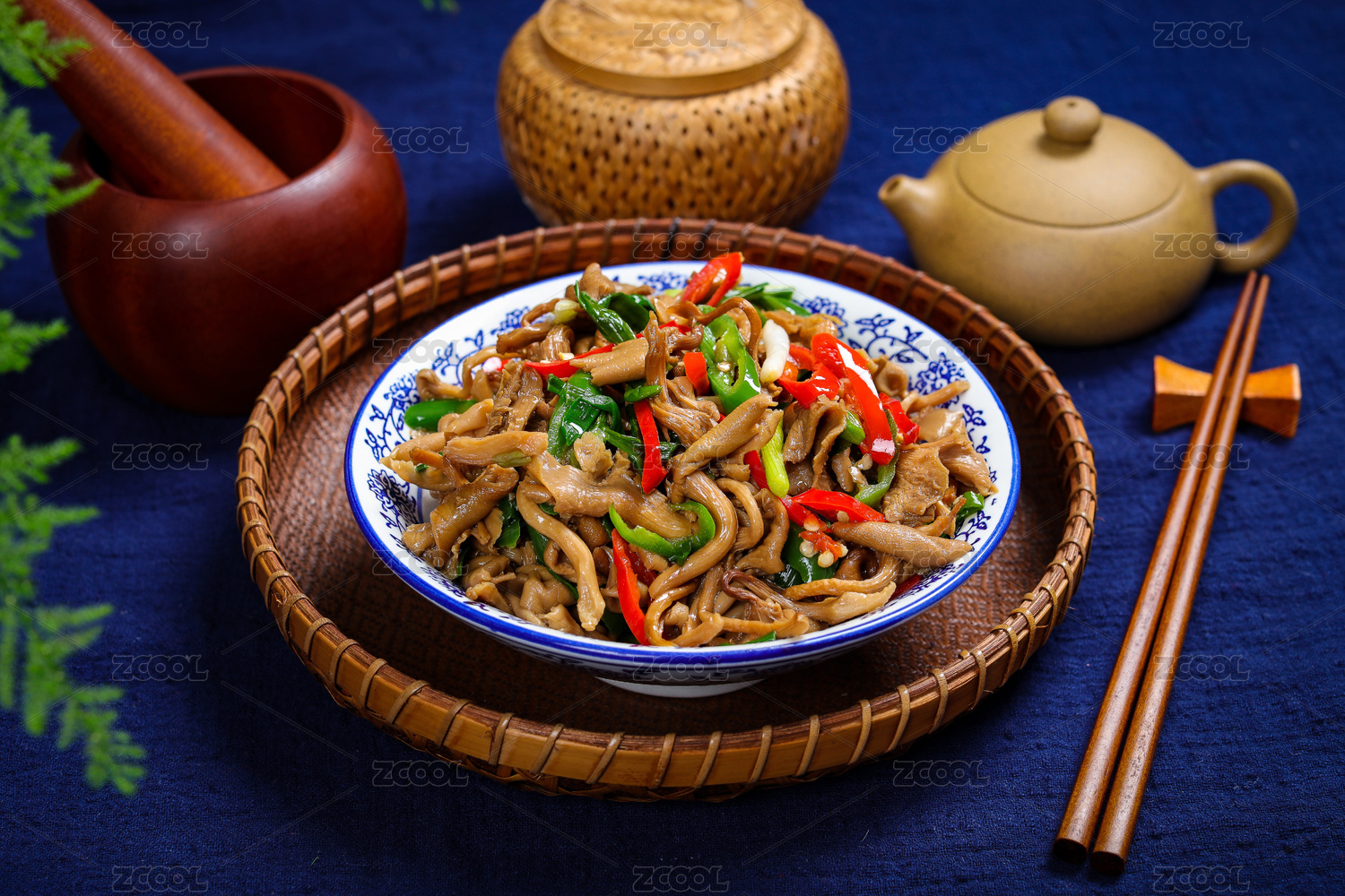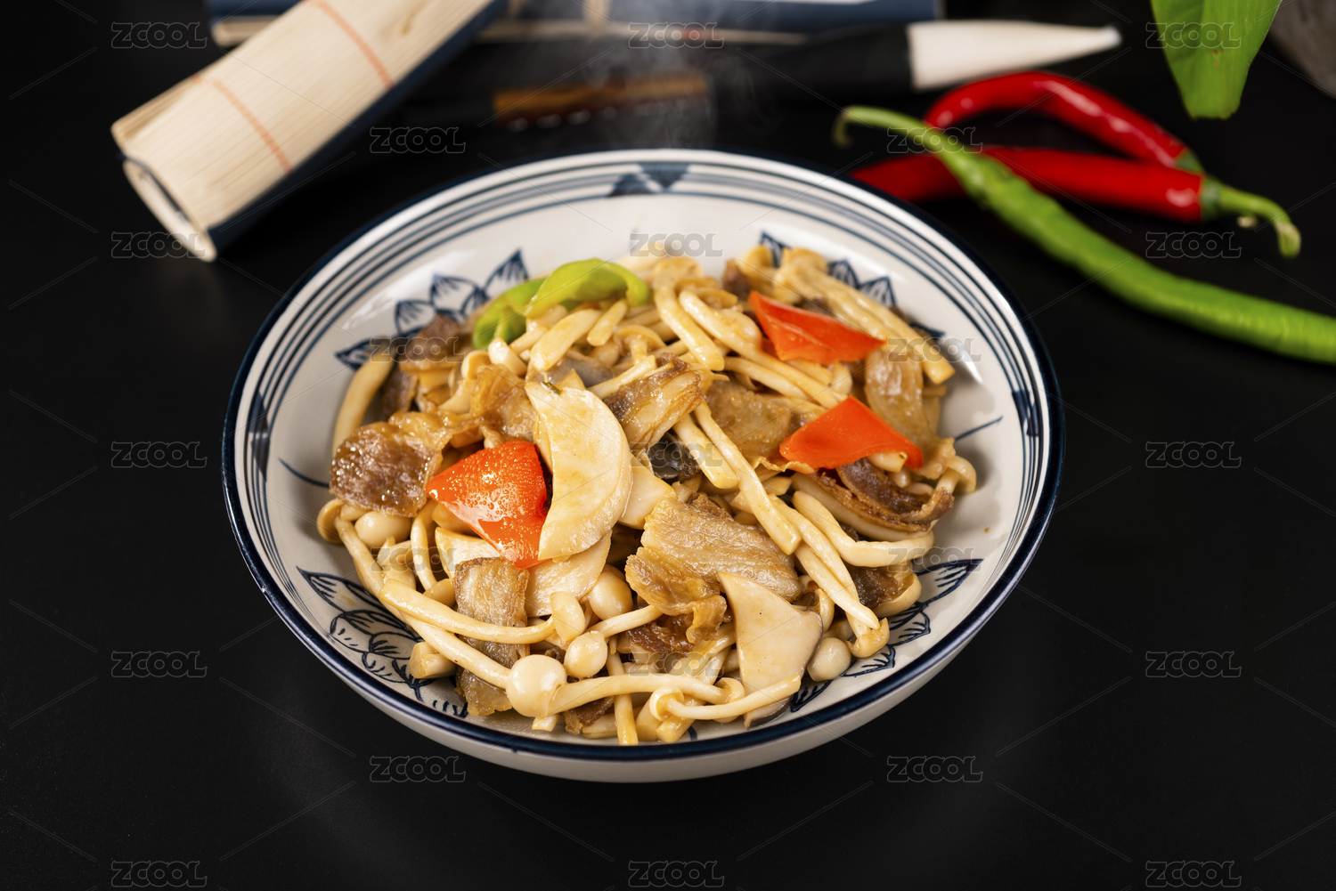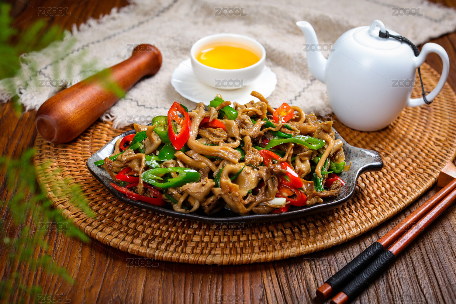 中式家常菜肴青椒炒白蘑菇