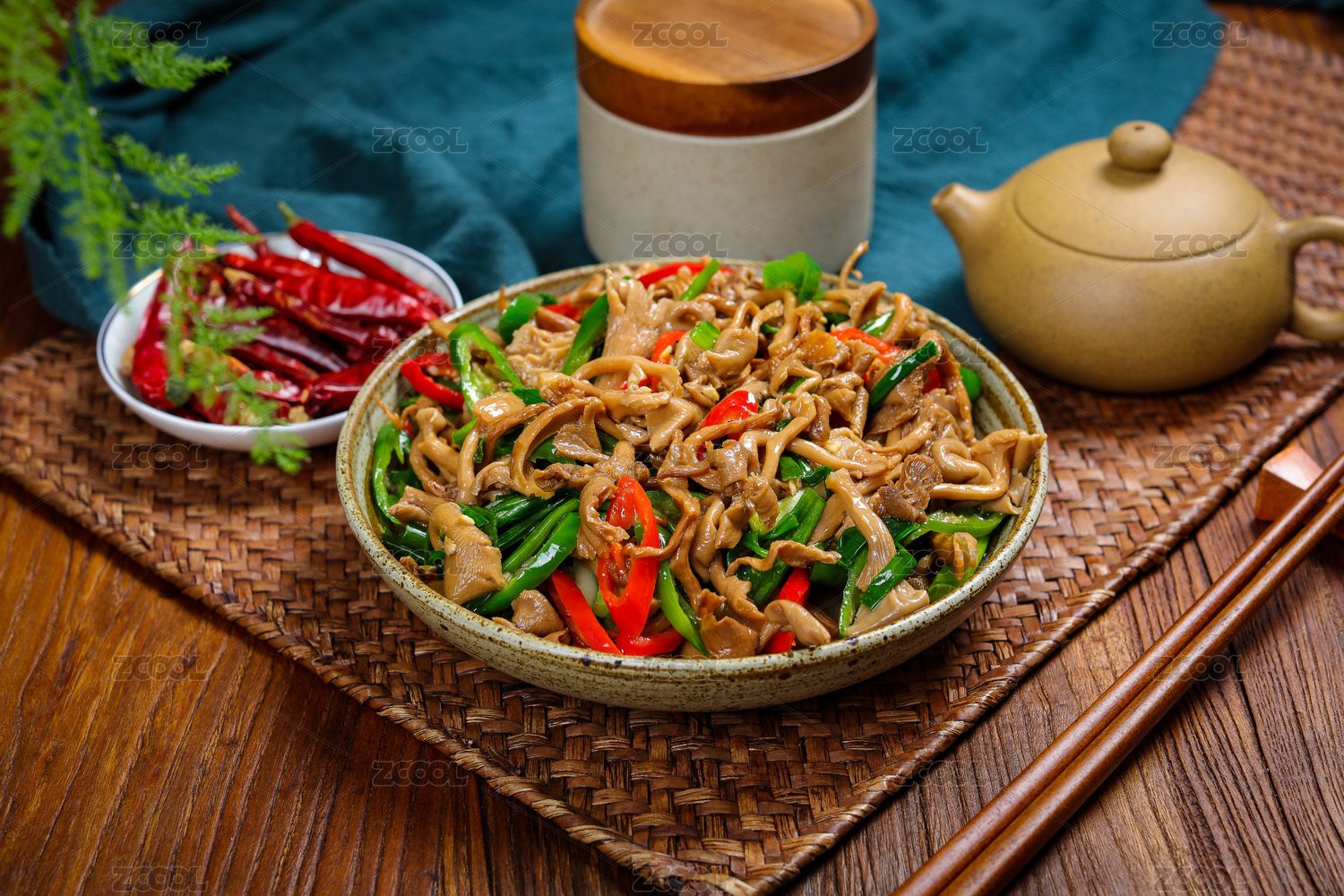 美味農(nóng)家菜炒野生菌雙椒炒樹(shù)菇