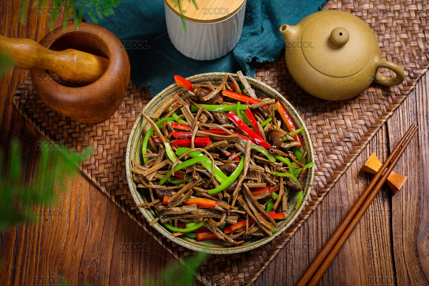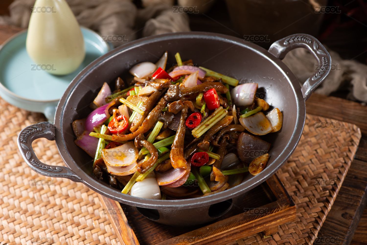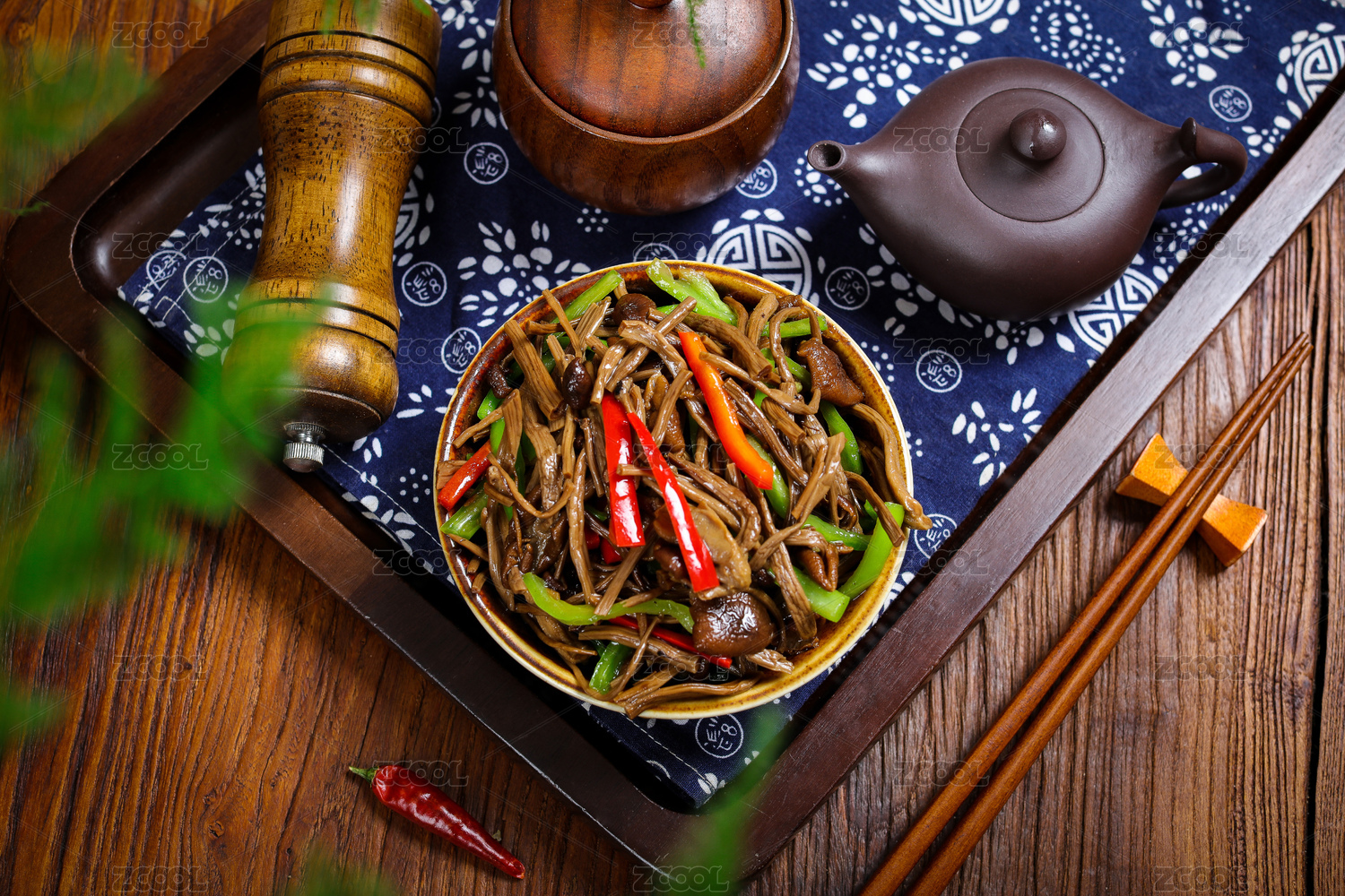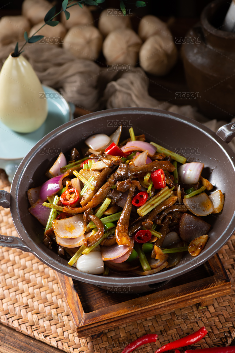 一道美味的中國(guó)家常菜,醬炒雜菌