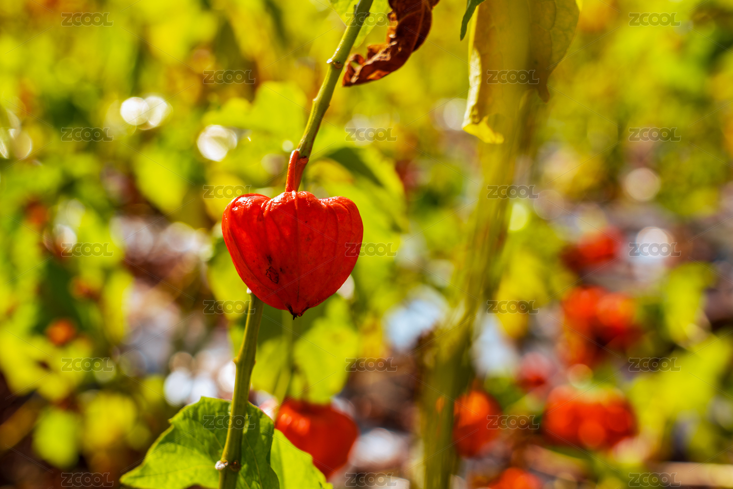 秋天陽(yáng)光下中國(guó)吉林田地中生長(zhǎng)的紅姑娘