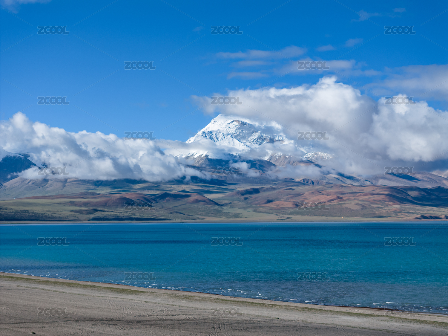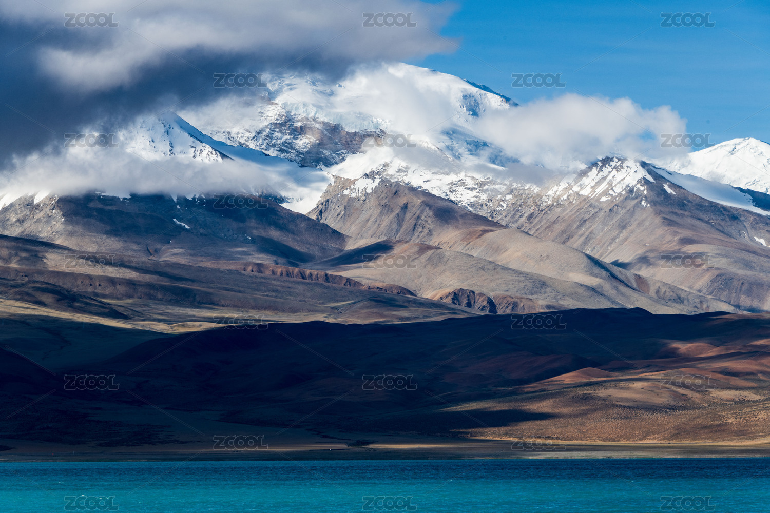 中國西藏阿里地區(qū)拉昂錯湖雪后的風景