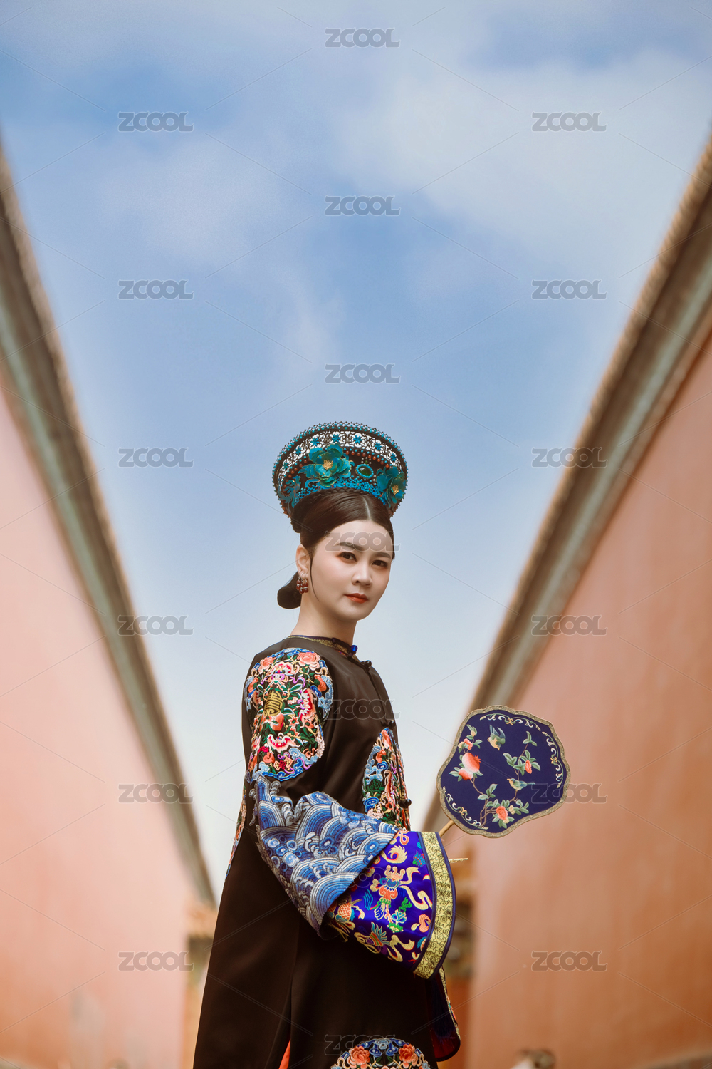 中國(guó)北京故宮紫禁城里的清朝女性古裝造型
