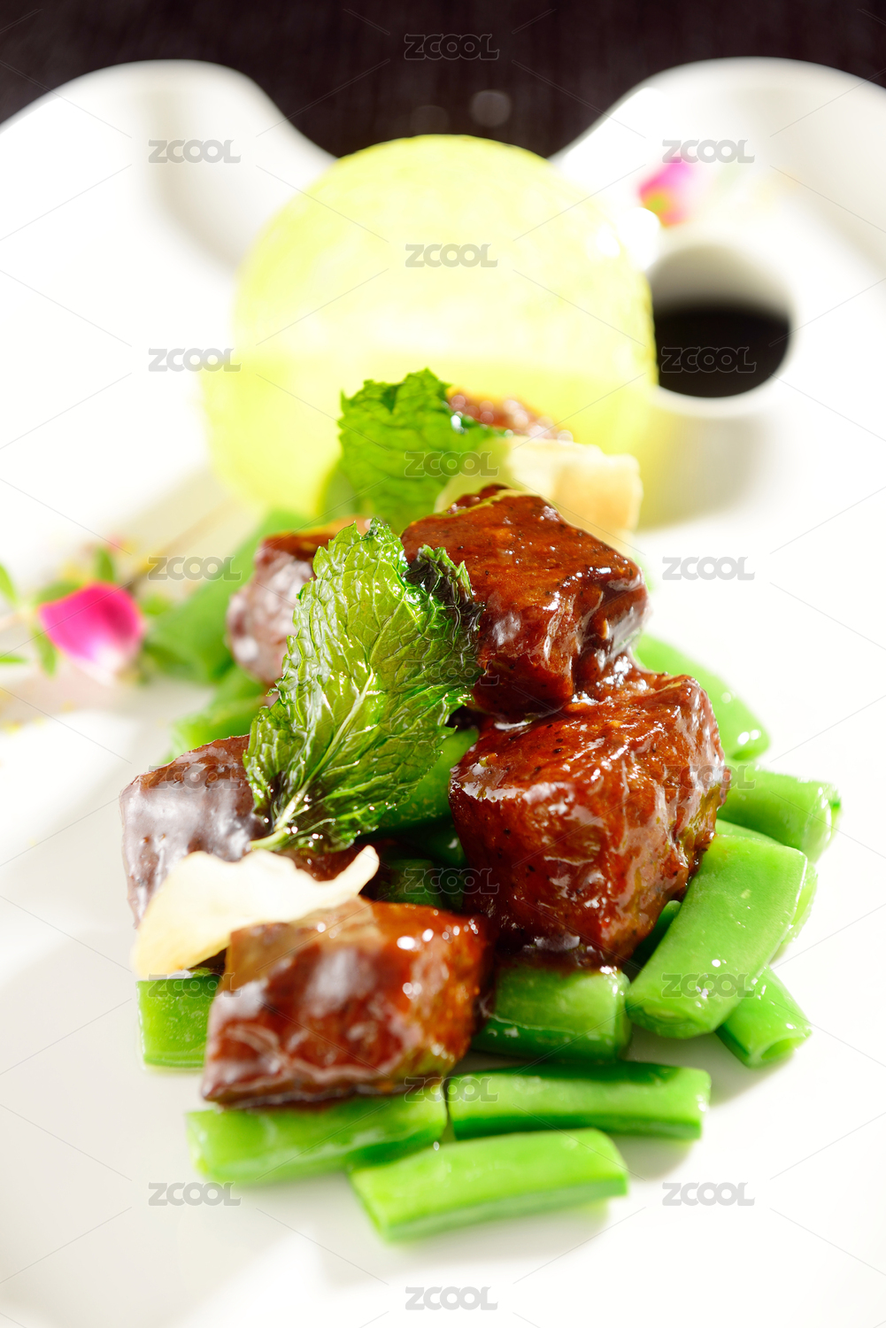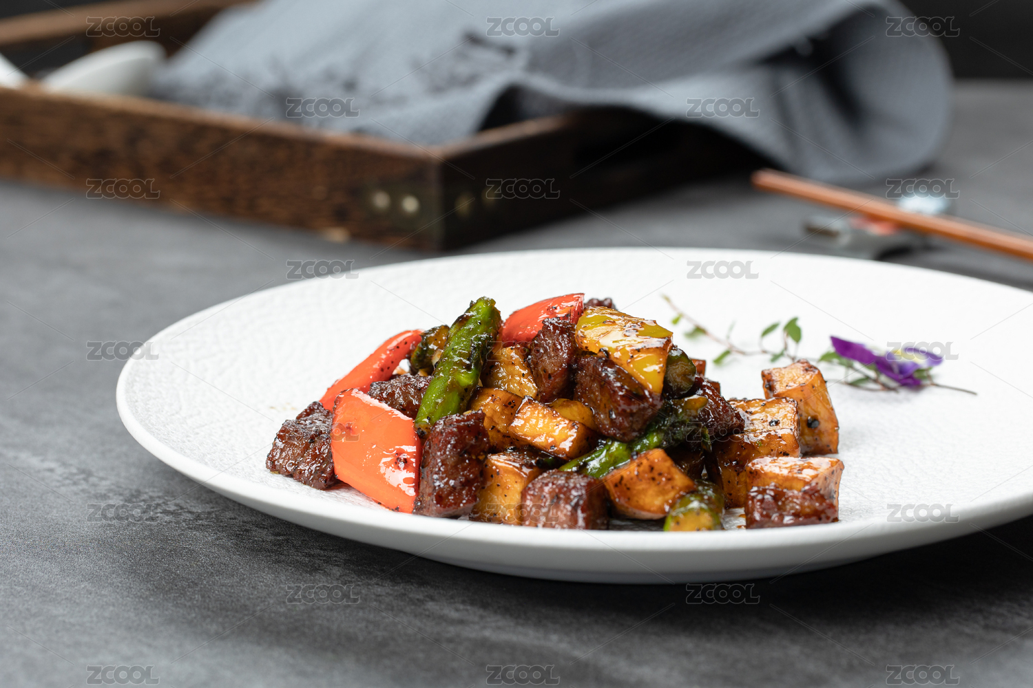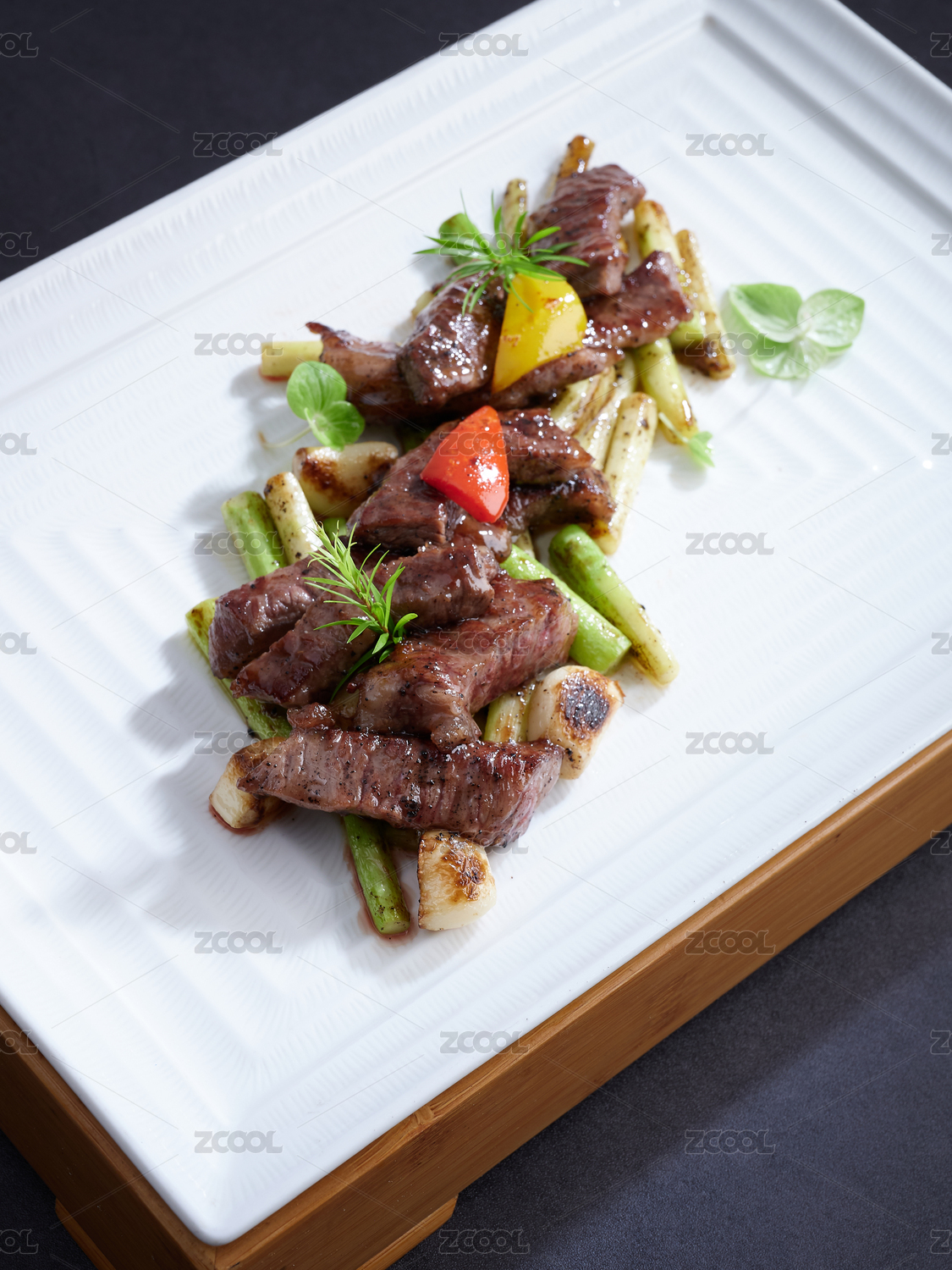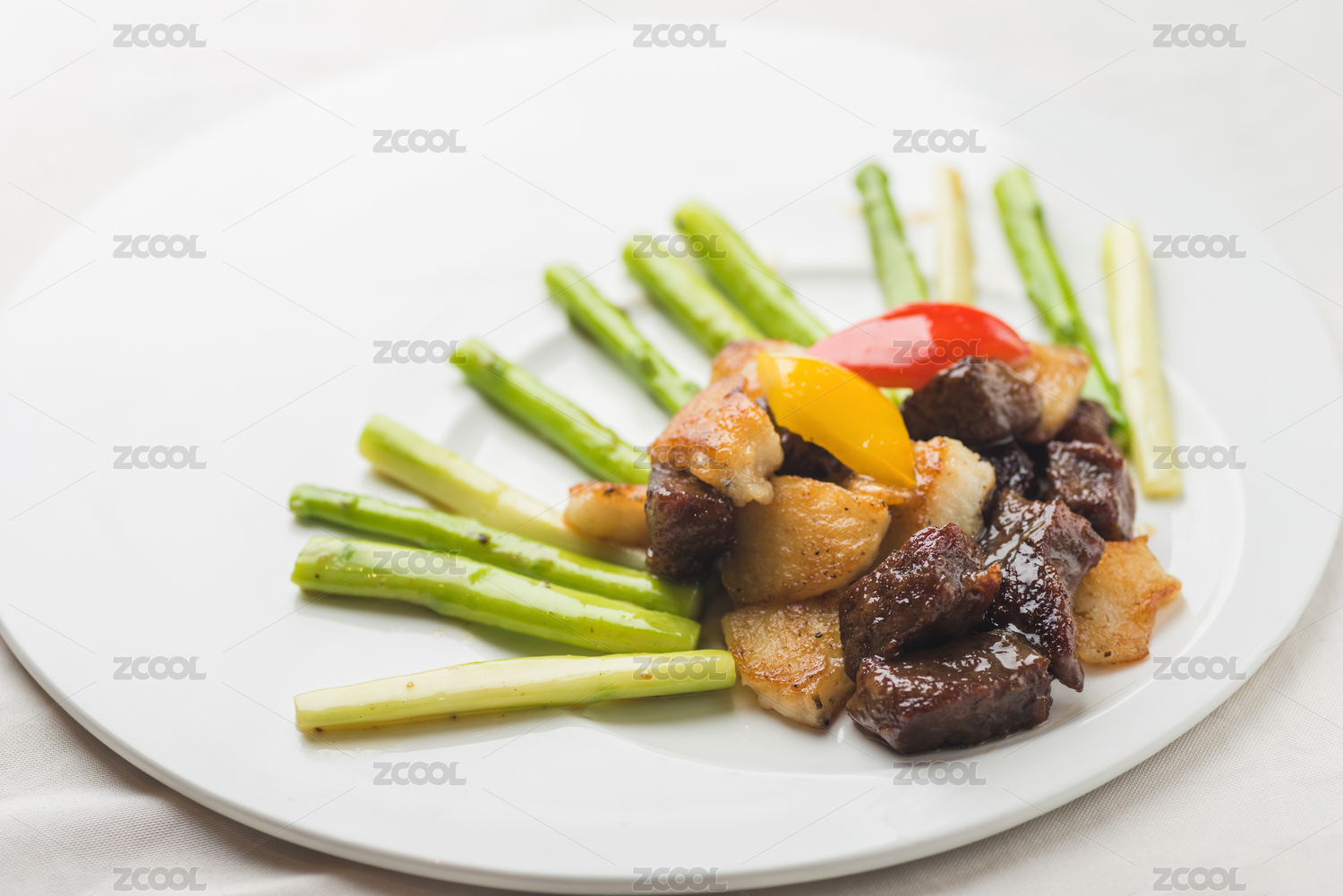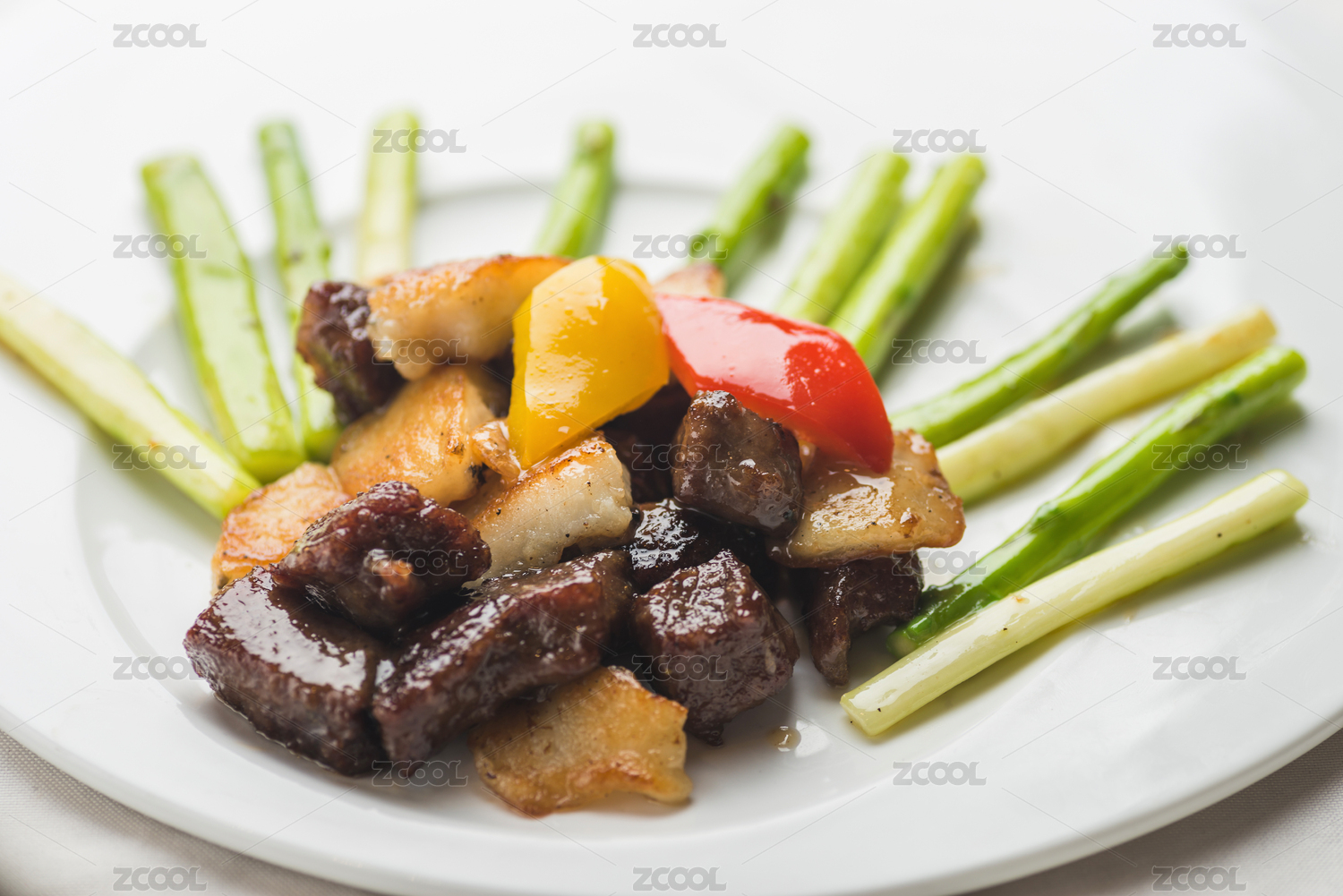 深海鱈魚(yú)爆黑椒牛肉粒配蘆筍