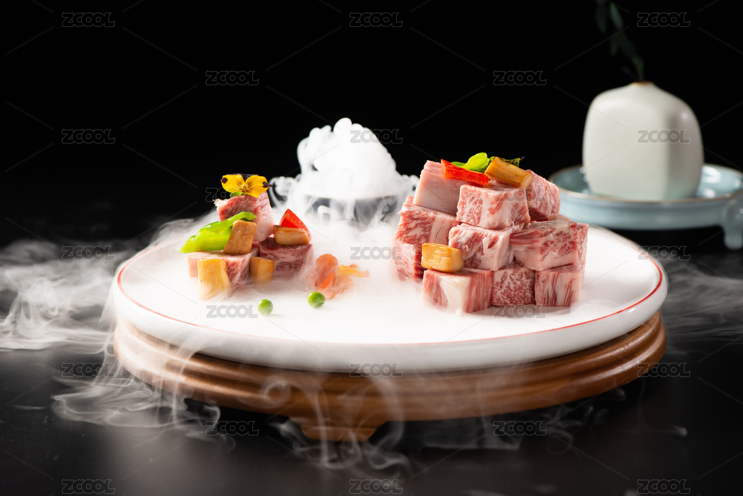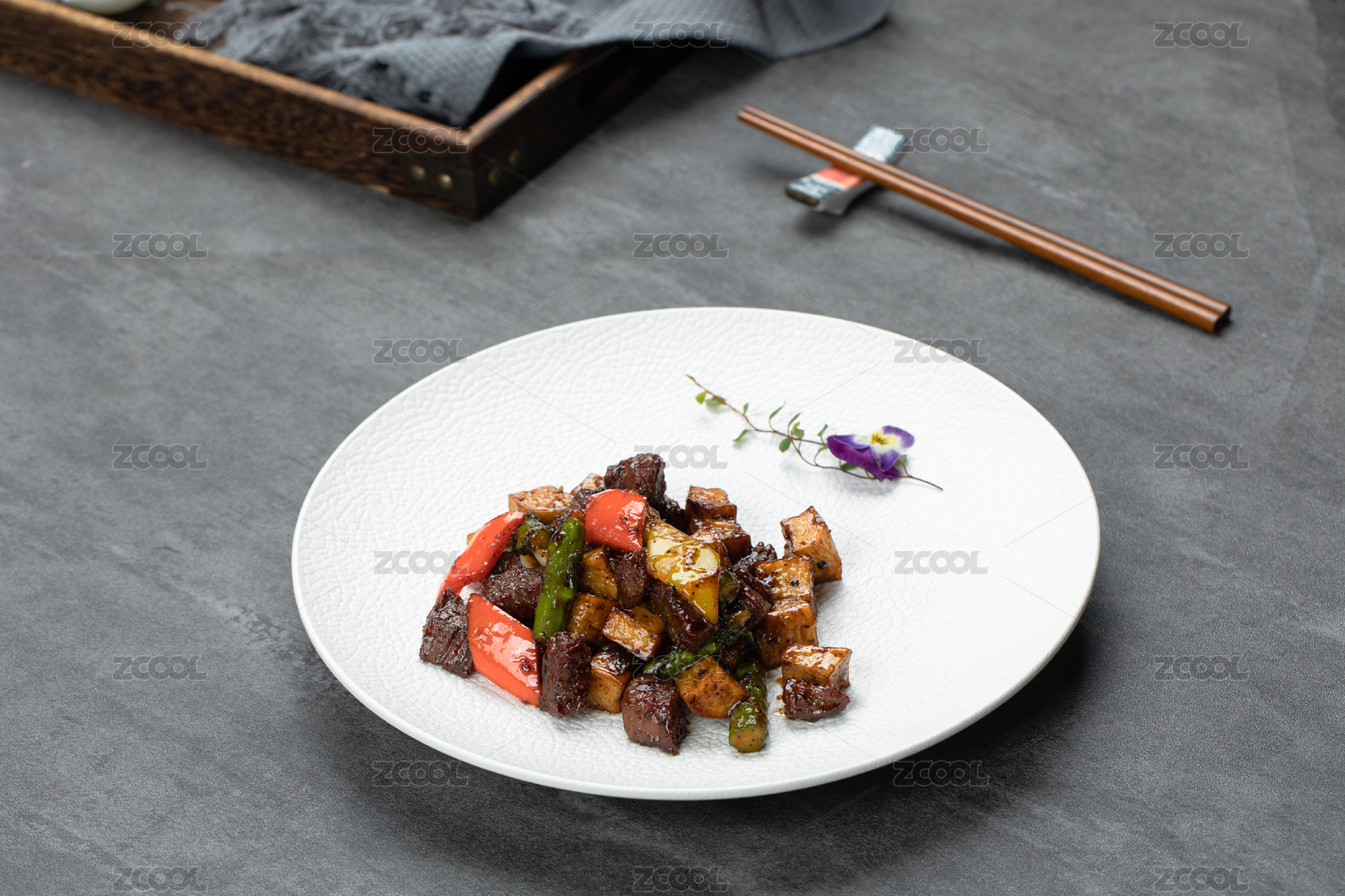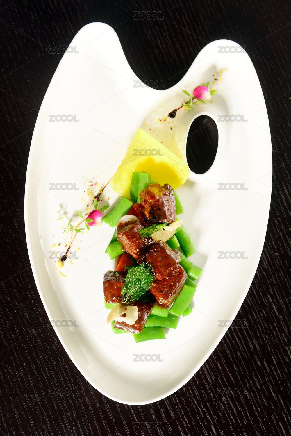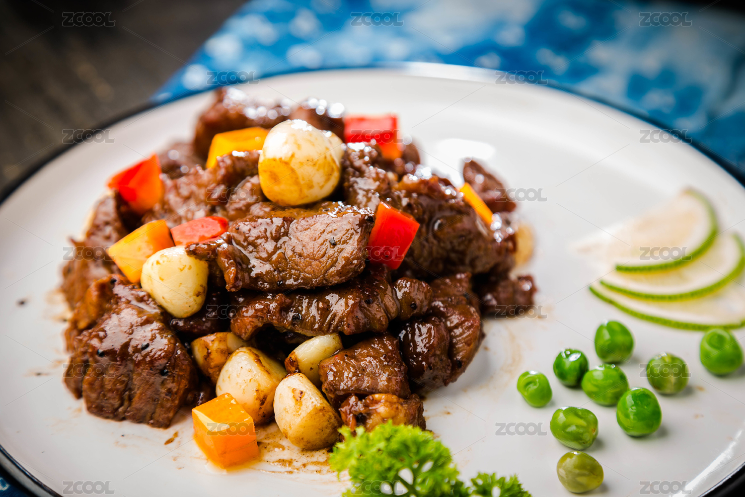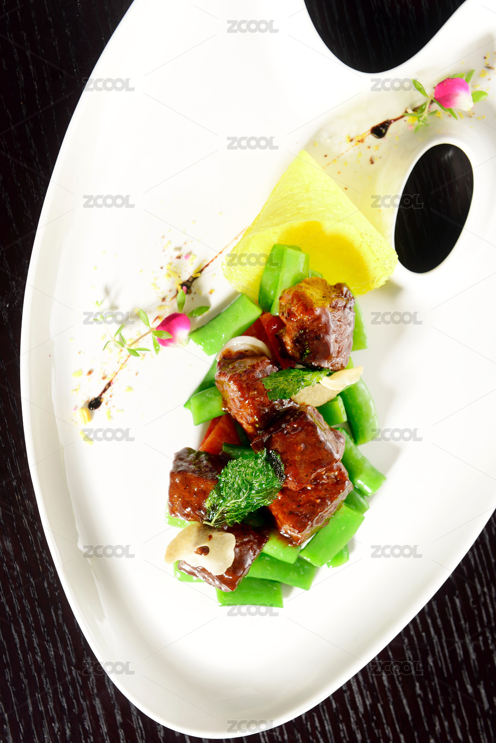 深海鱈魚(yú)爆黑椒牛肉粒配蘆筍
